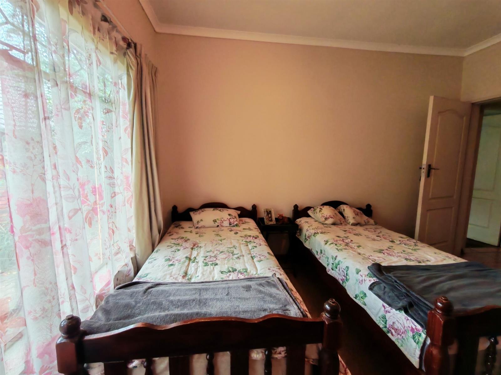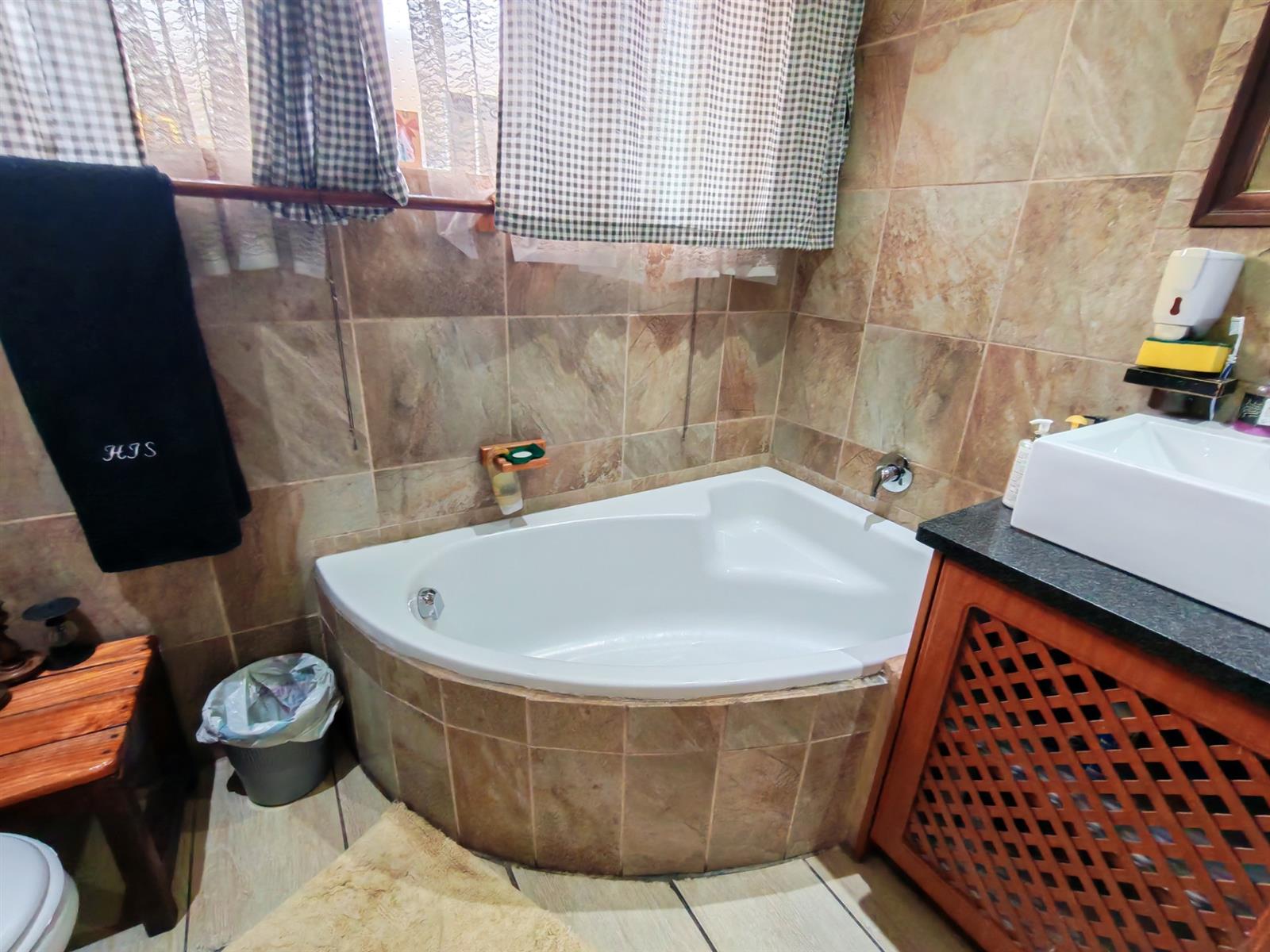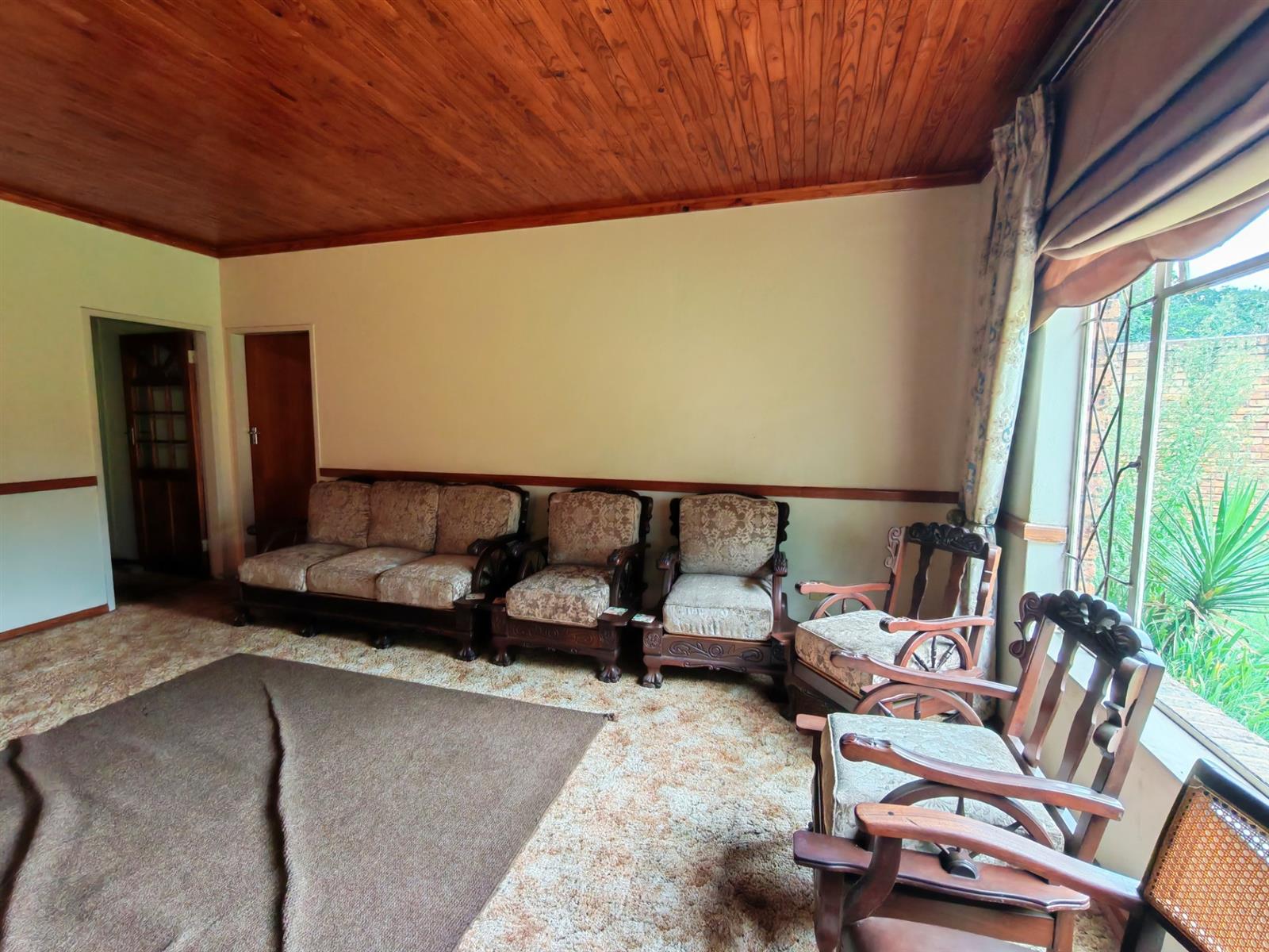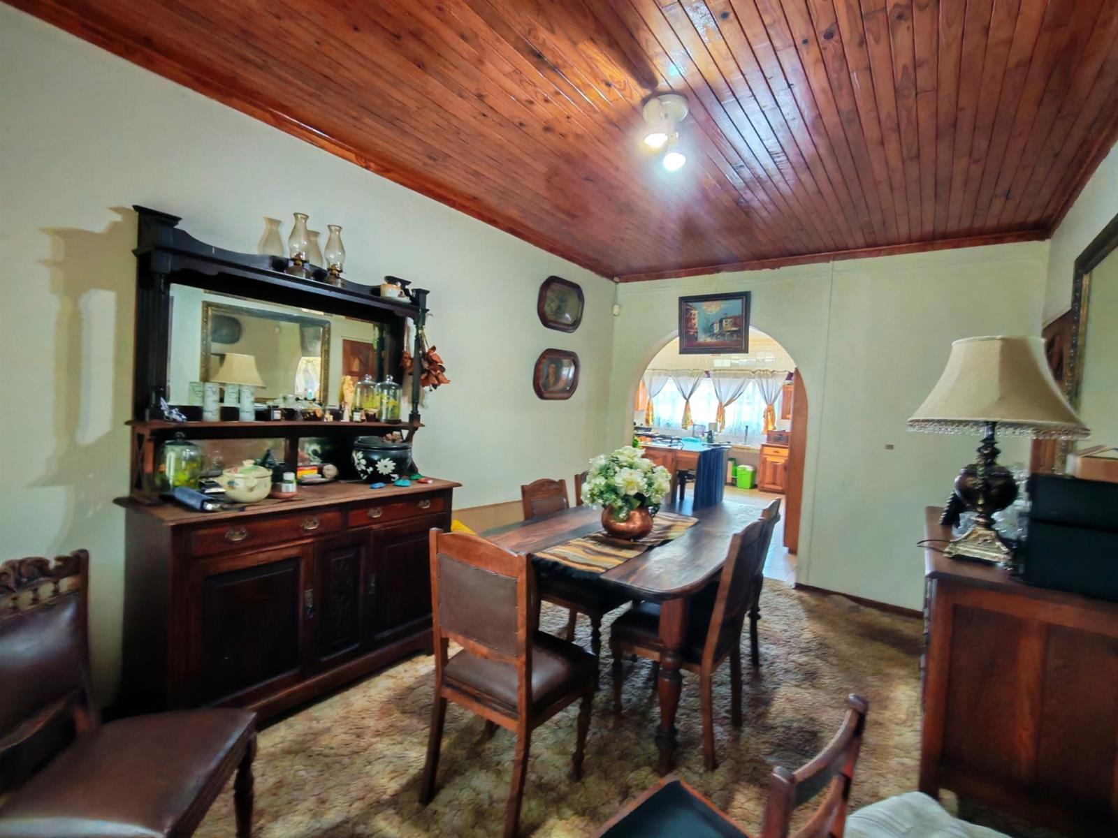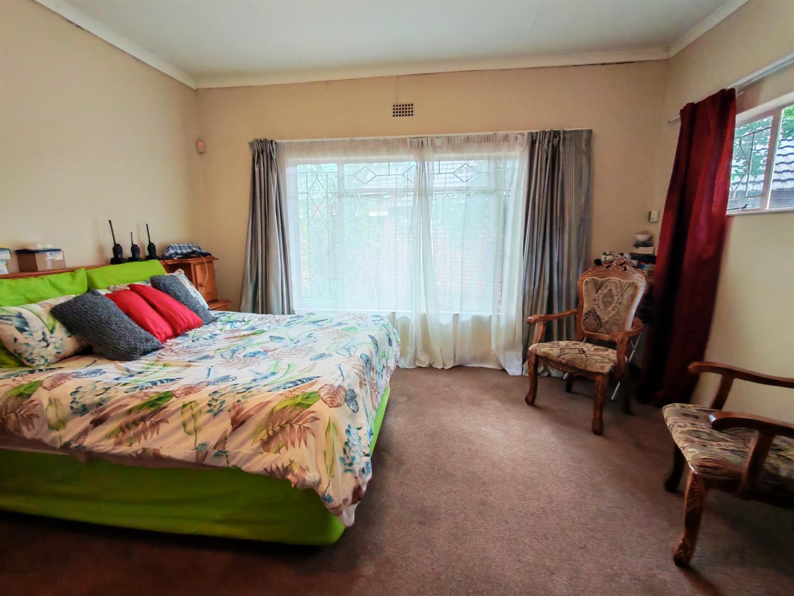 Upon entering through the majestic security gates, you will find the main house on your left and the flat on your right. There is also a sparkling pool, lapa, covered braai area and a garage with entertainment area as well as several parking spaces on the stand.