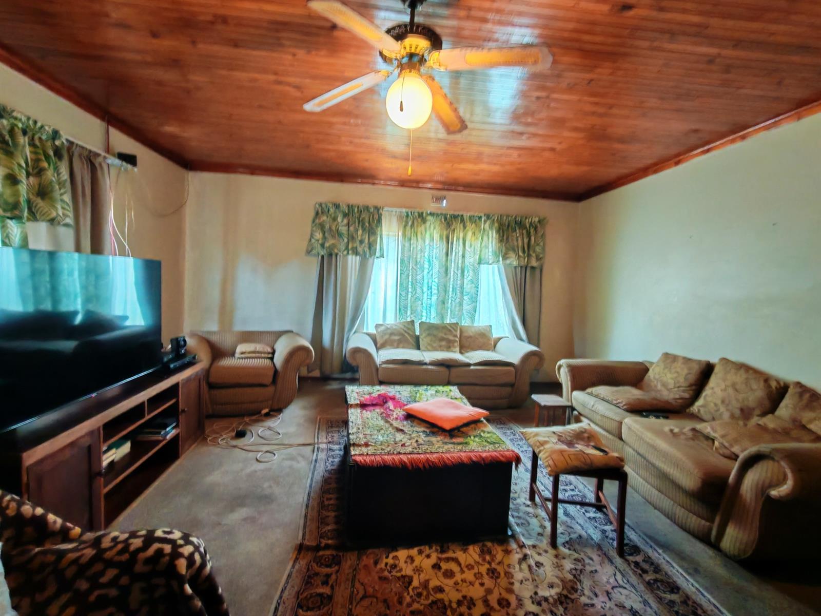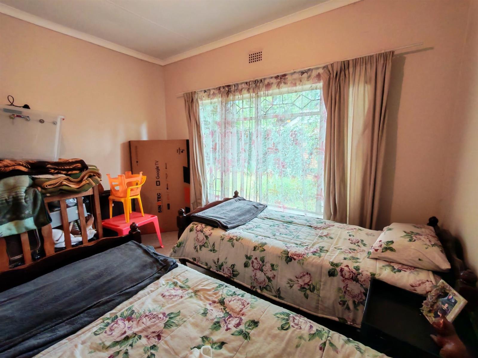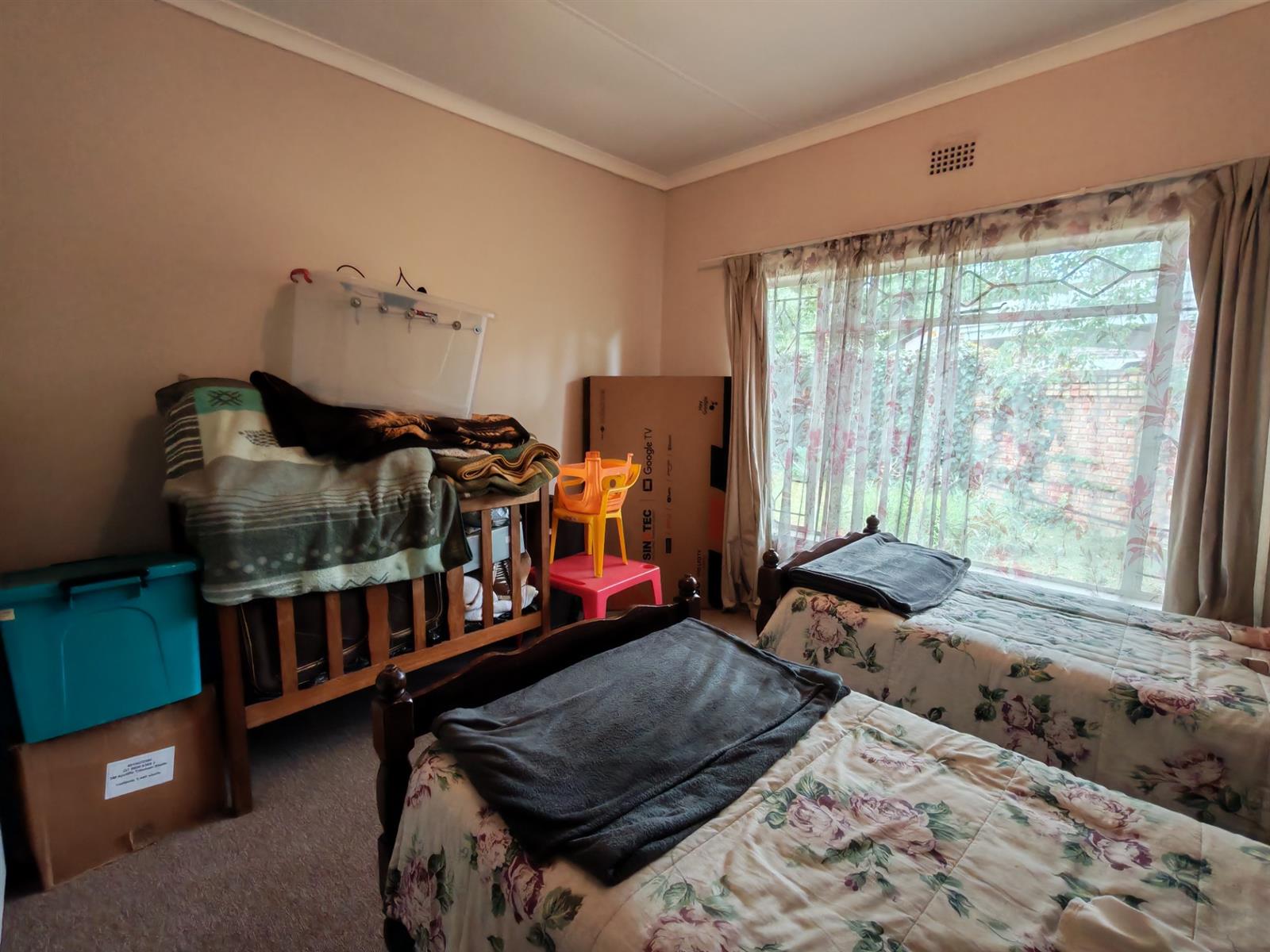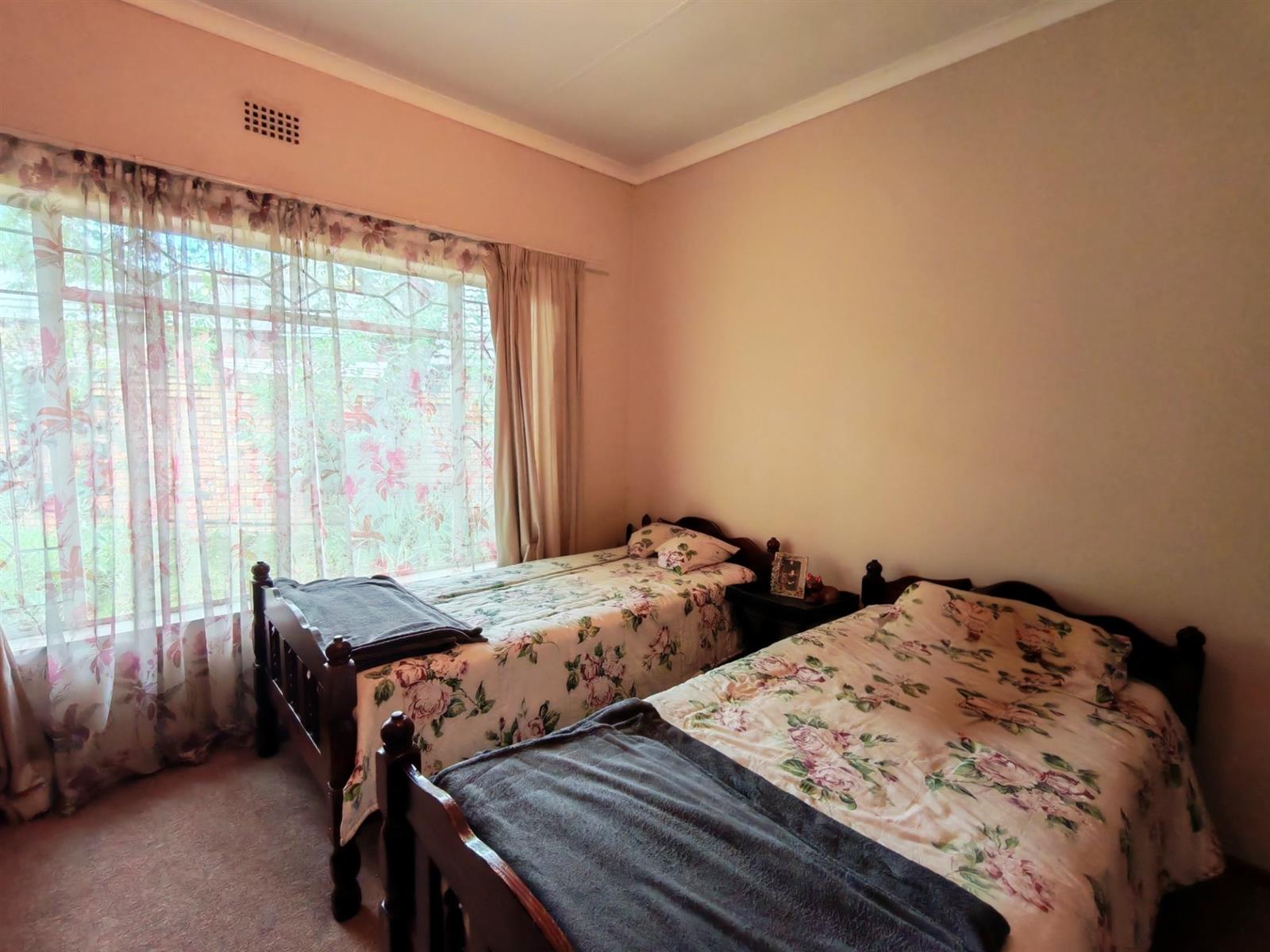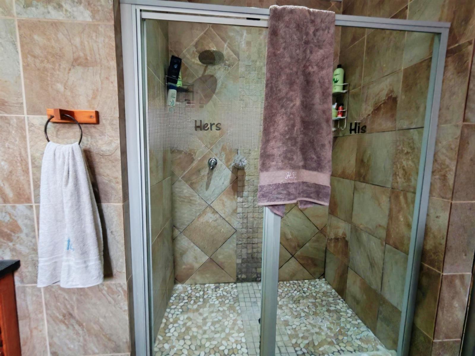 Upon entering through the majestic security gates, you will find the main house on your left and the flat on your right. There is also a sparkling pool, lapa, covered braai area and a garage with entertainment area as well as several parking spaces on the stand.
