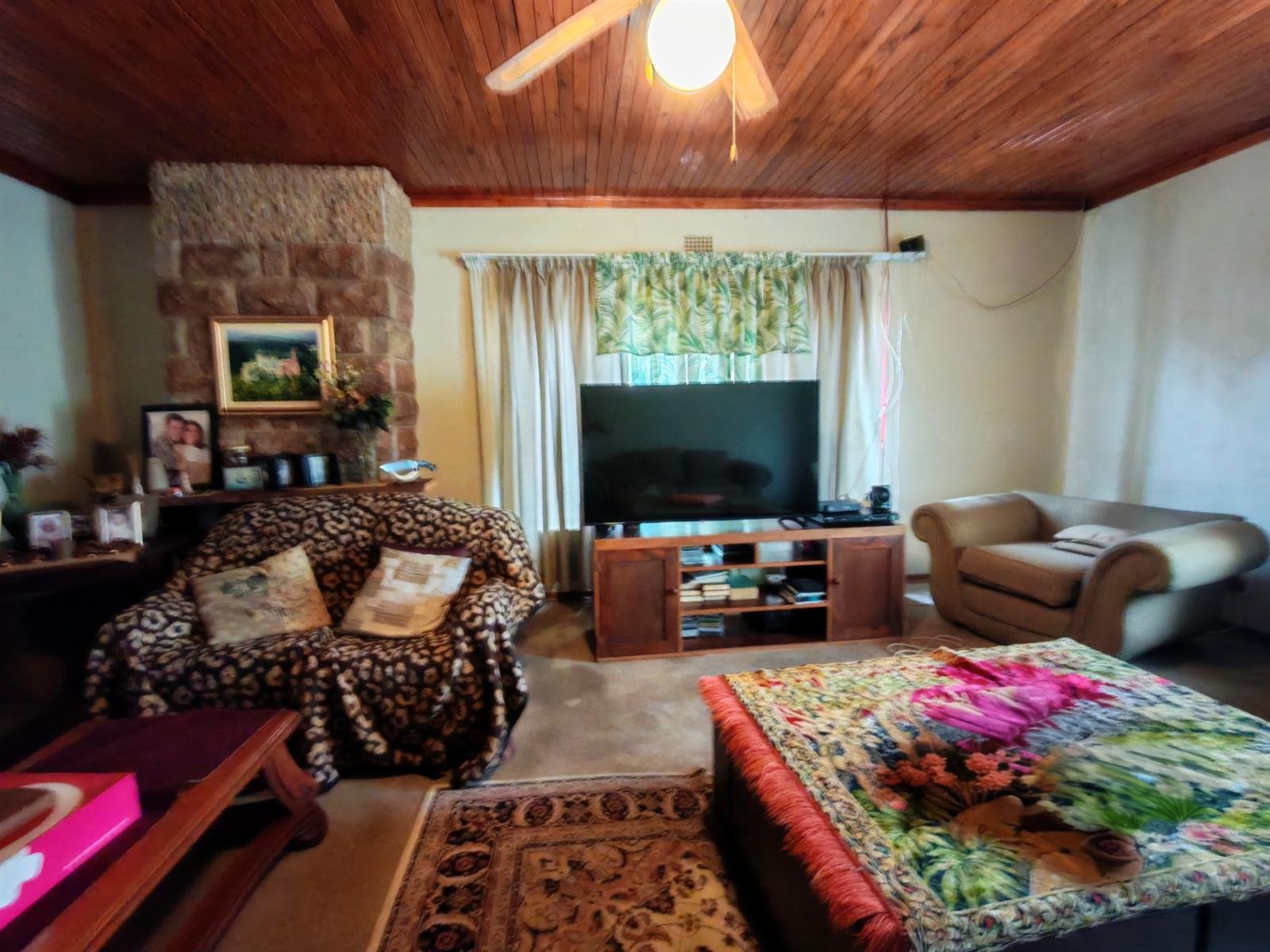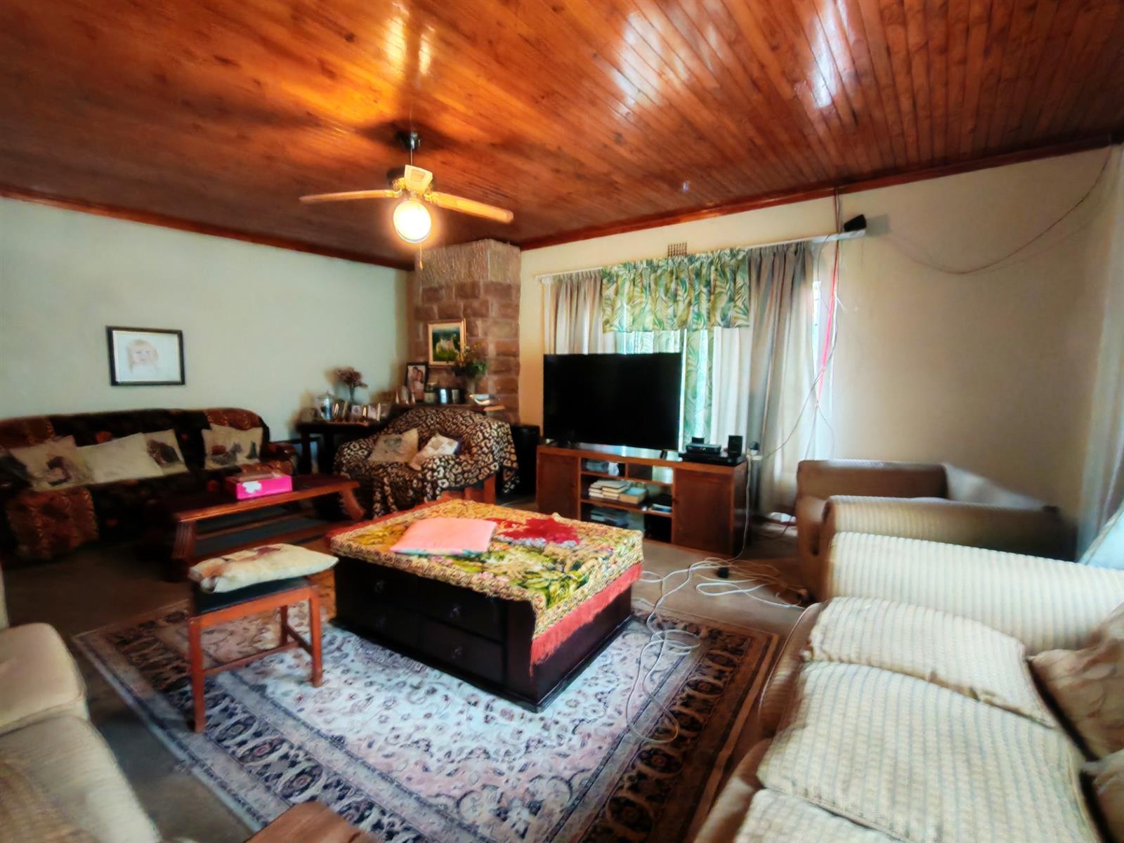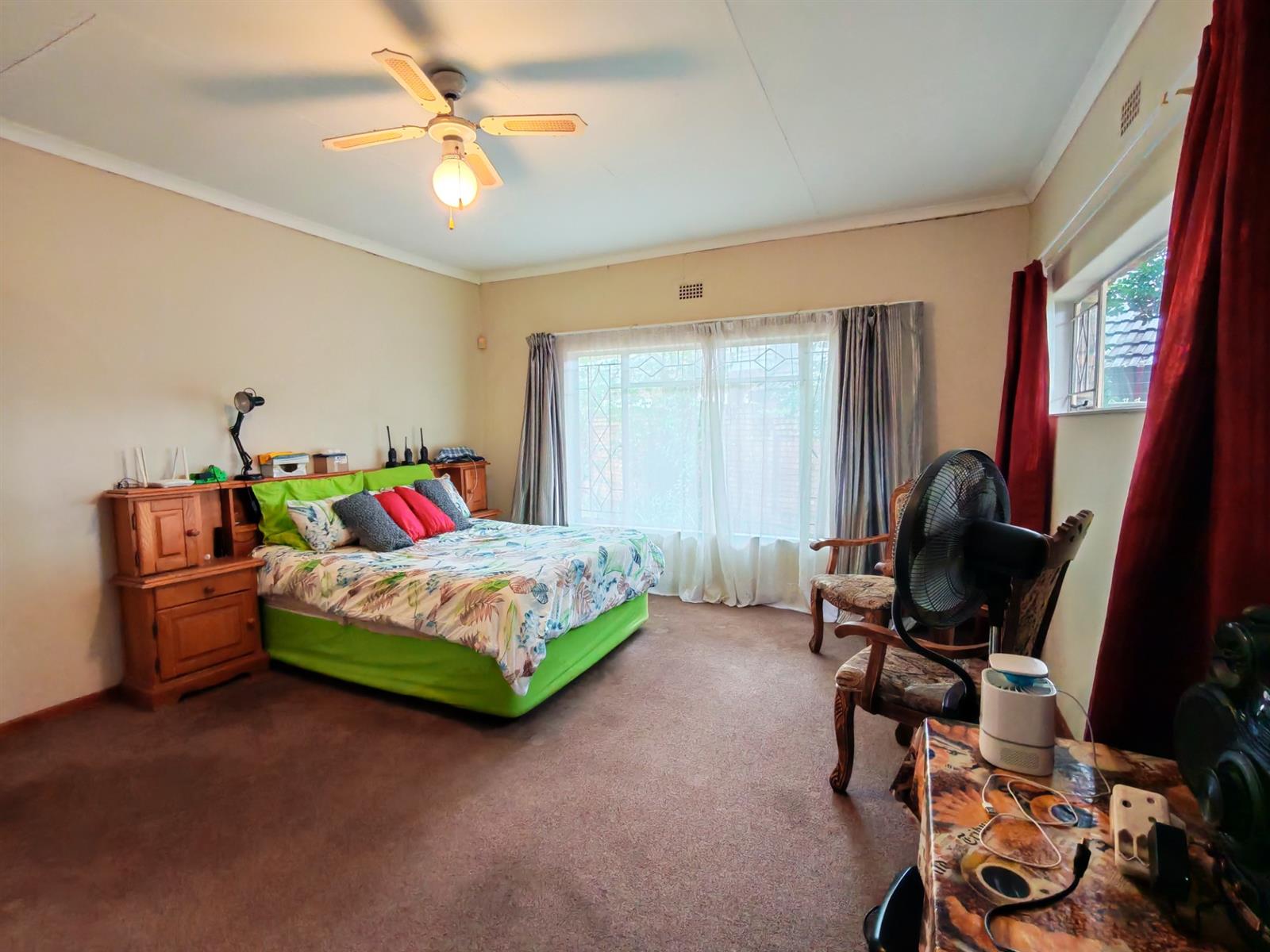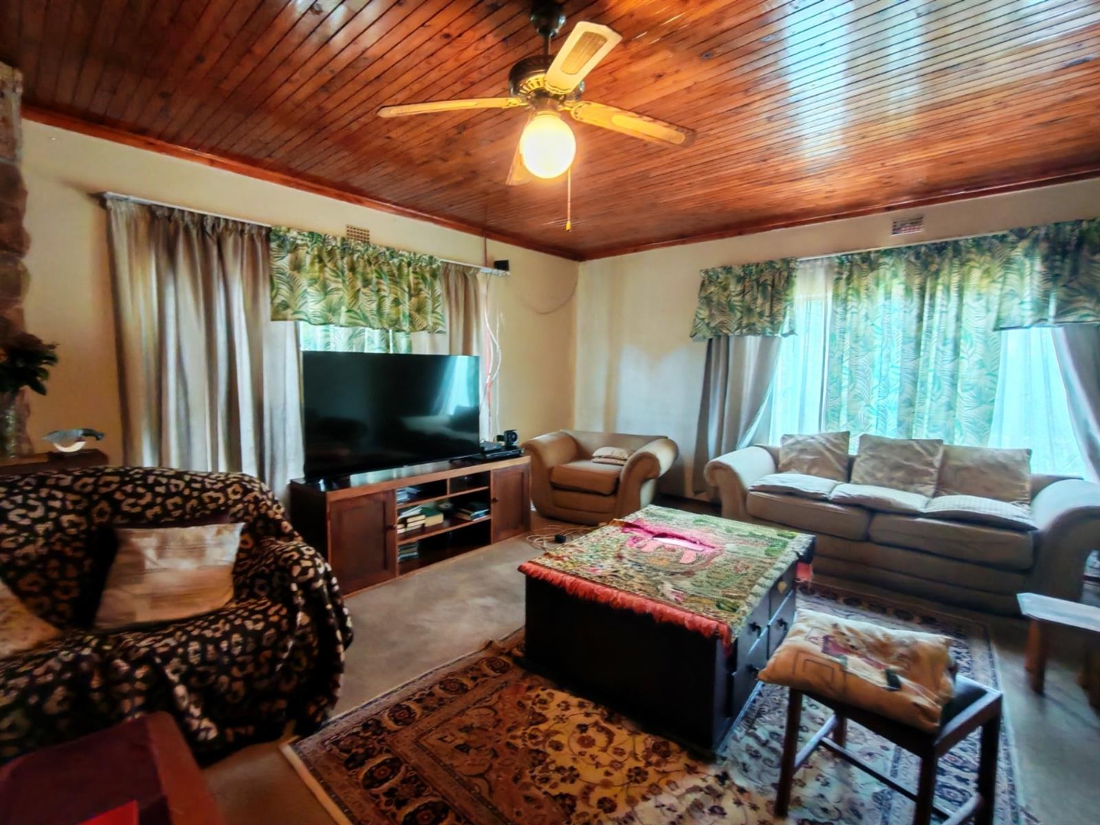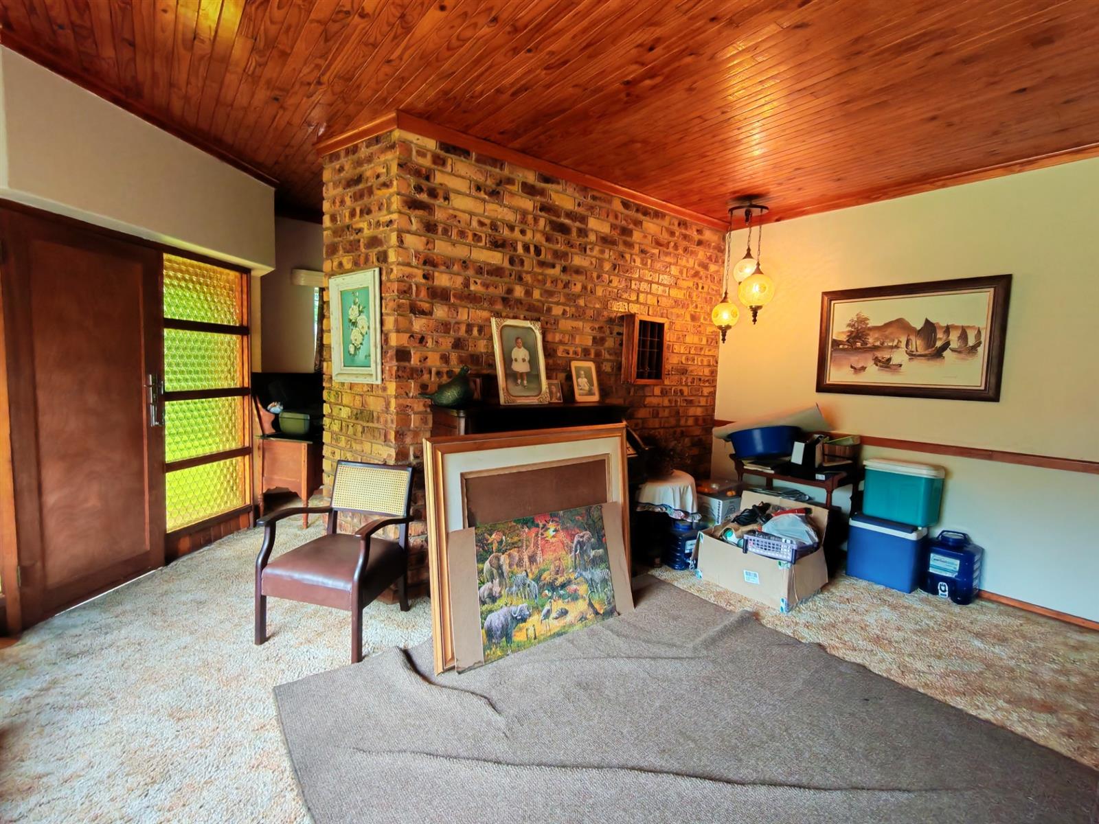 Upon entering through the majestic security gates, you will find the main house on your left and the flat on your right. There is also a sparkling pool, lapa, covered braai area and a garage with entertainment area as well as several parking spaces on the stand.