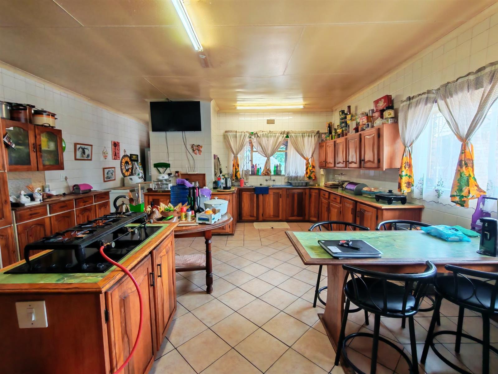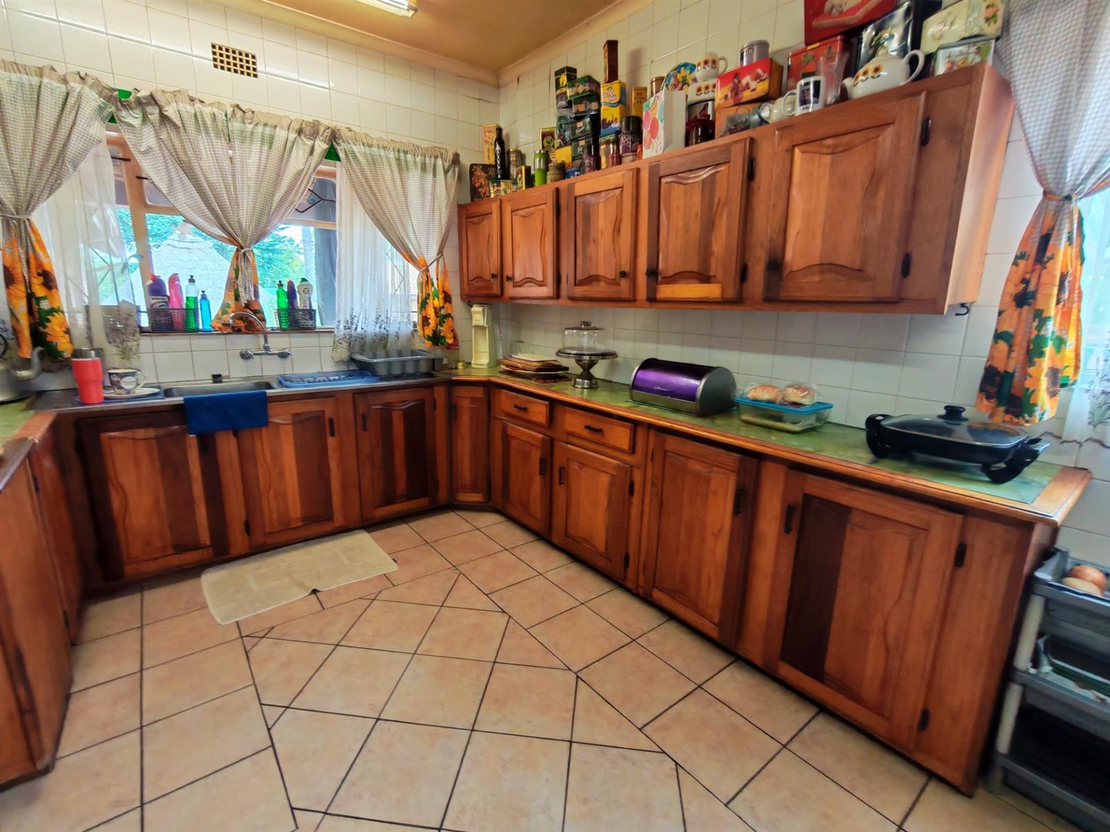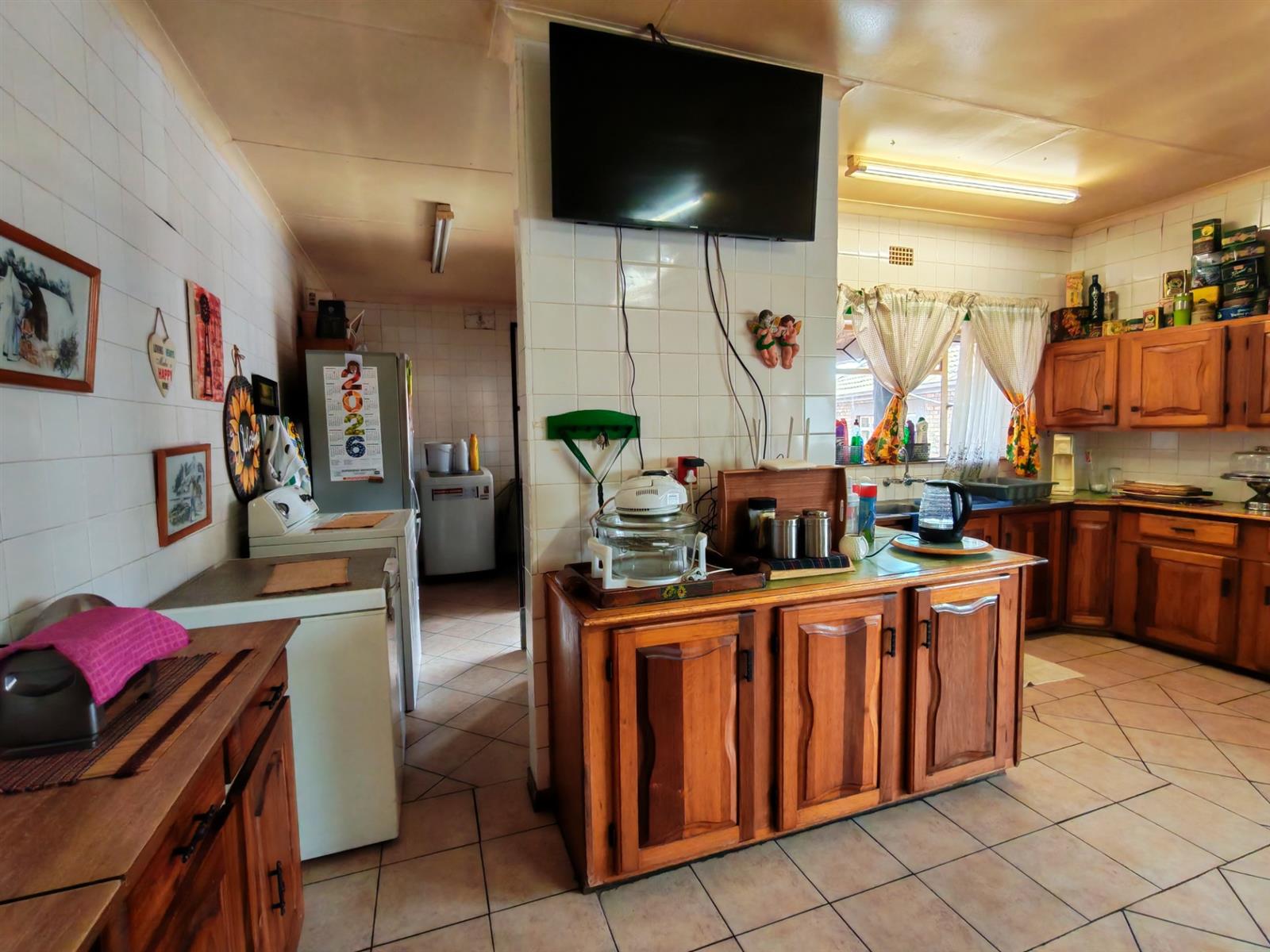 The kitchen is very spacious with lots of cupboards, a breakfast nook, electric oven and stove and a seperate scullery and laundry area.