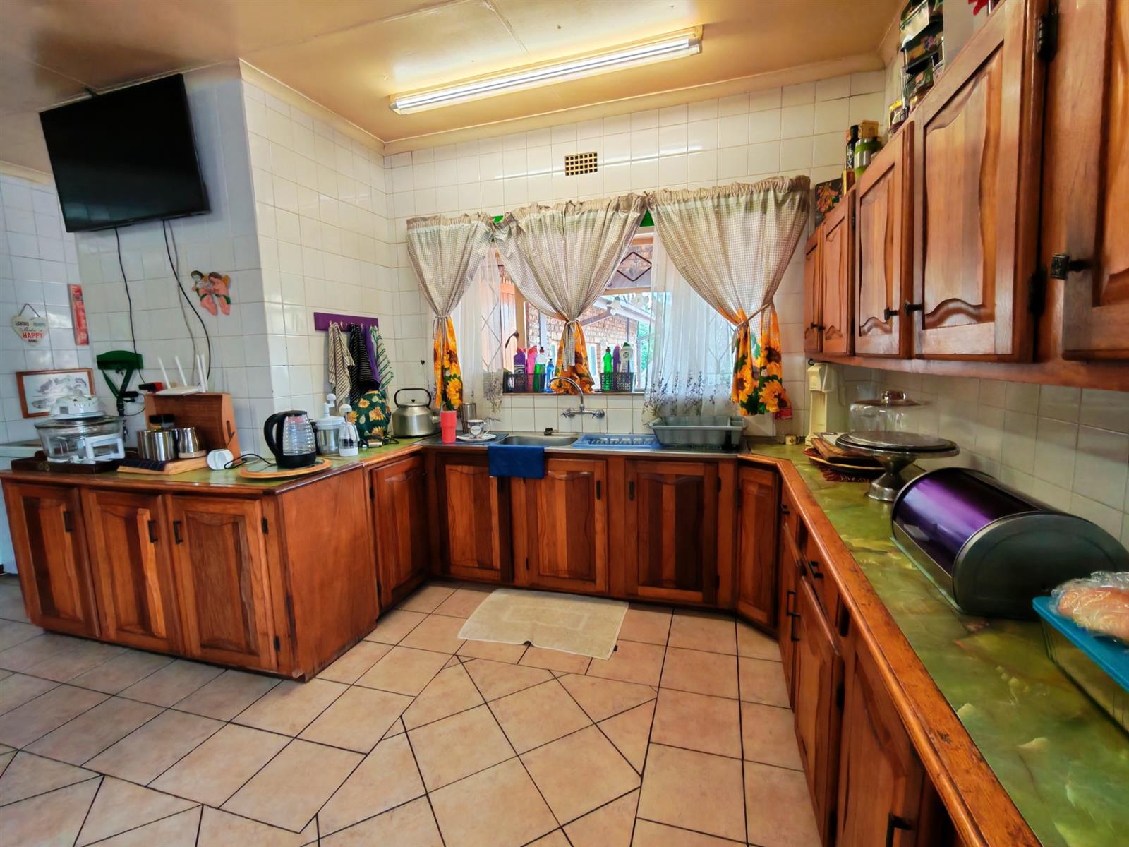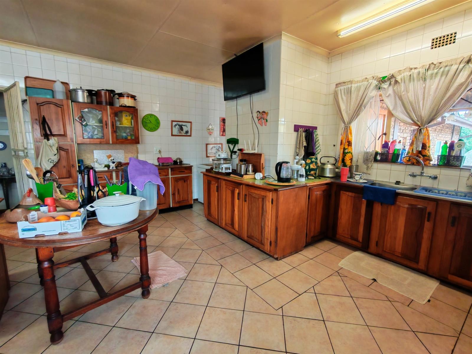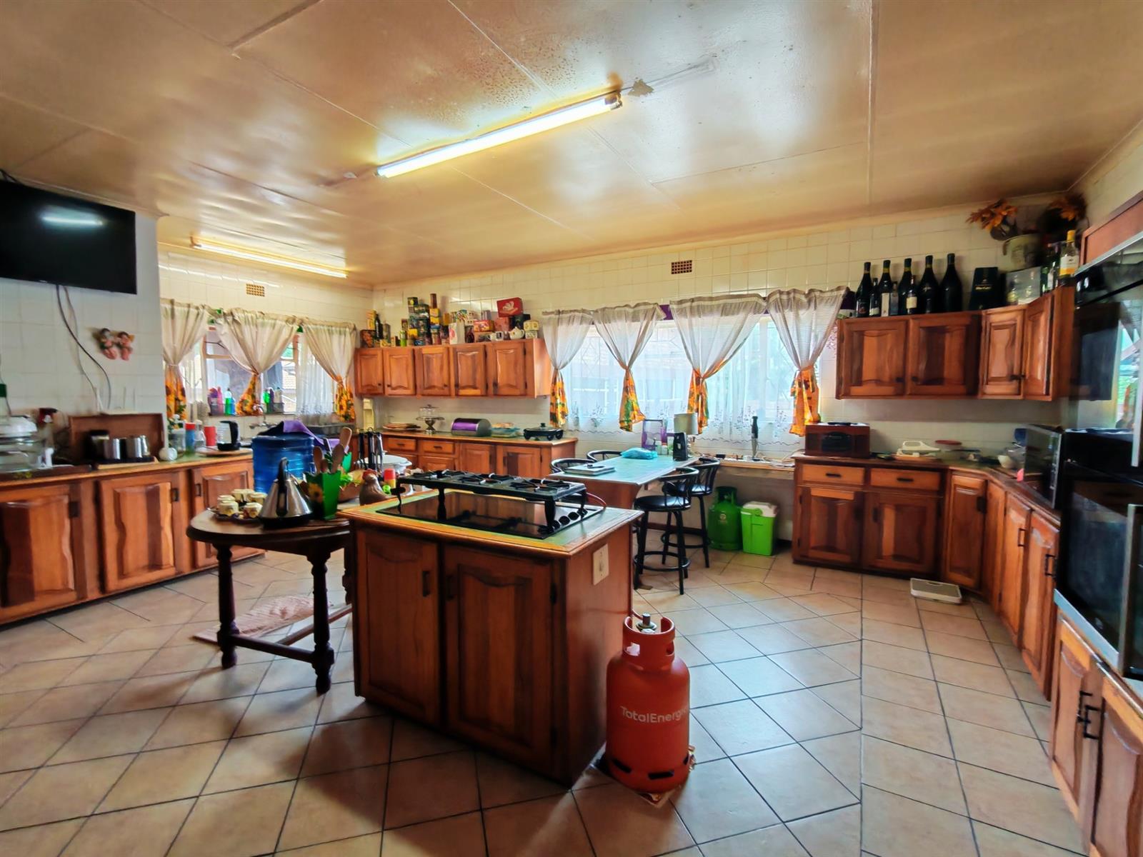 The kitchen is very spacious with lots of cupboards, a breakfast nook, electric oven and stove and a seperate scullery and laundry area.