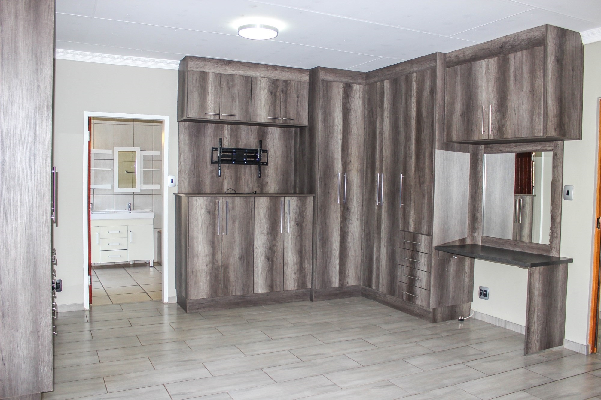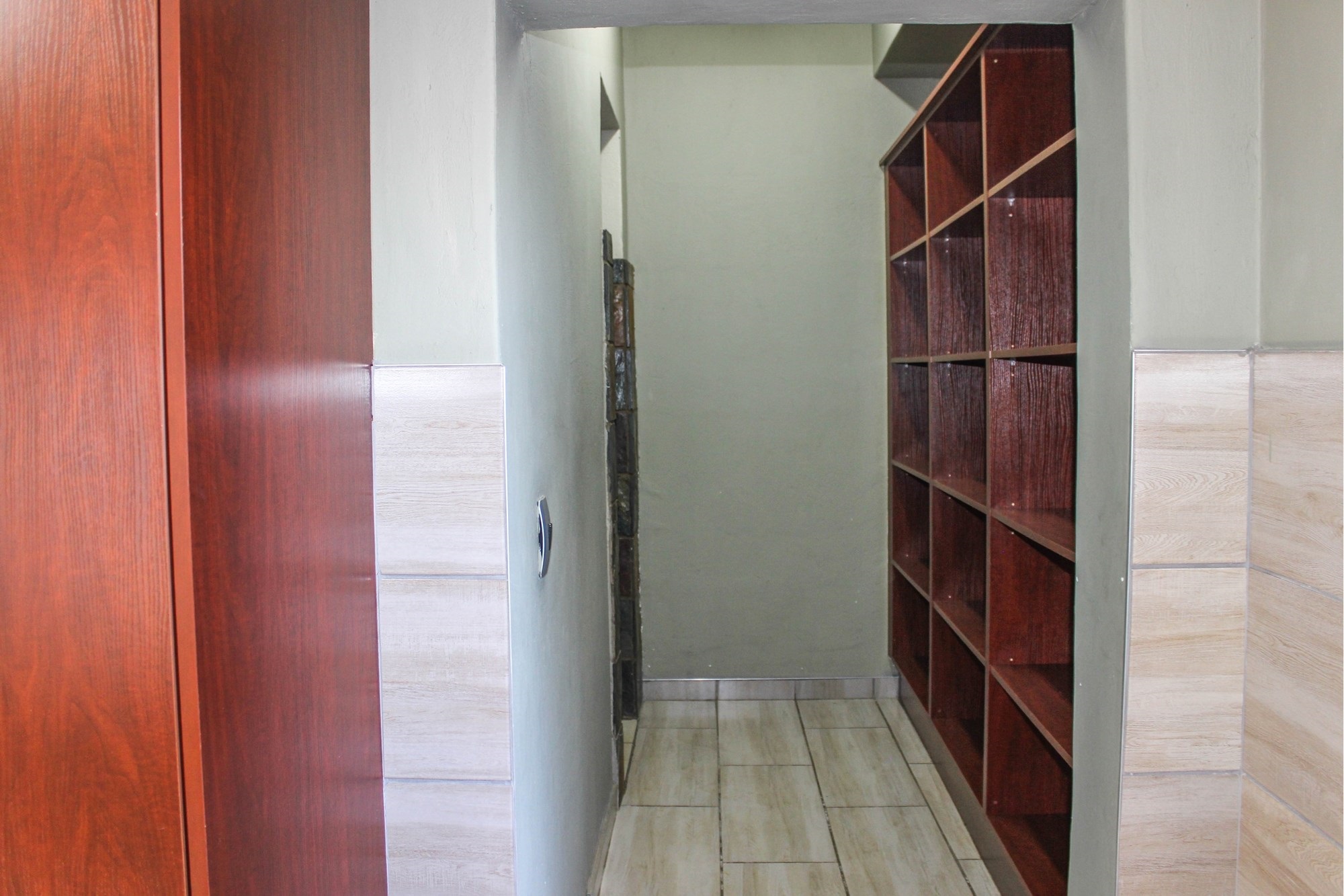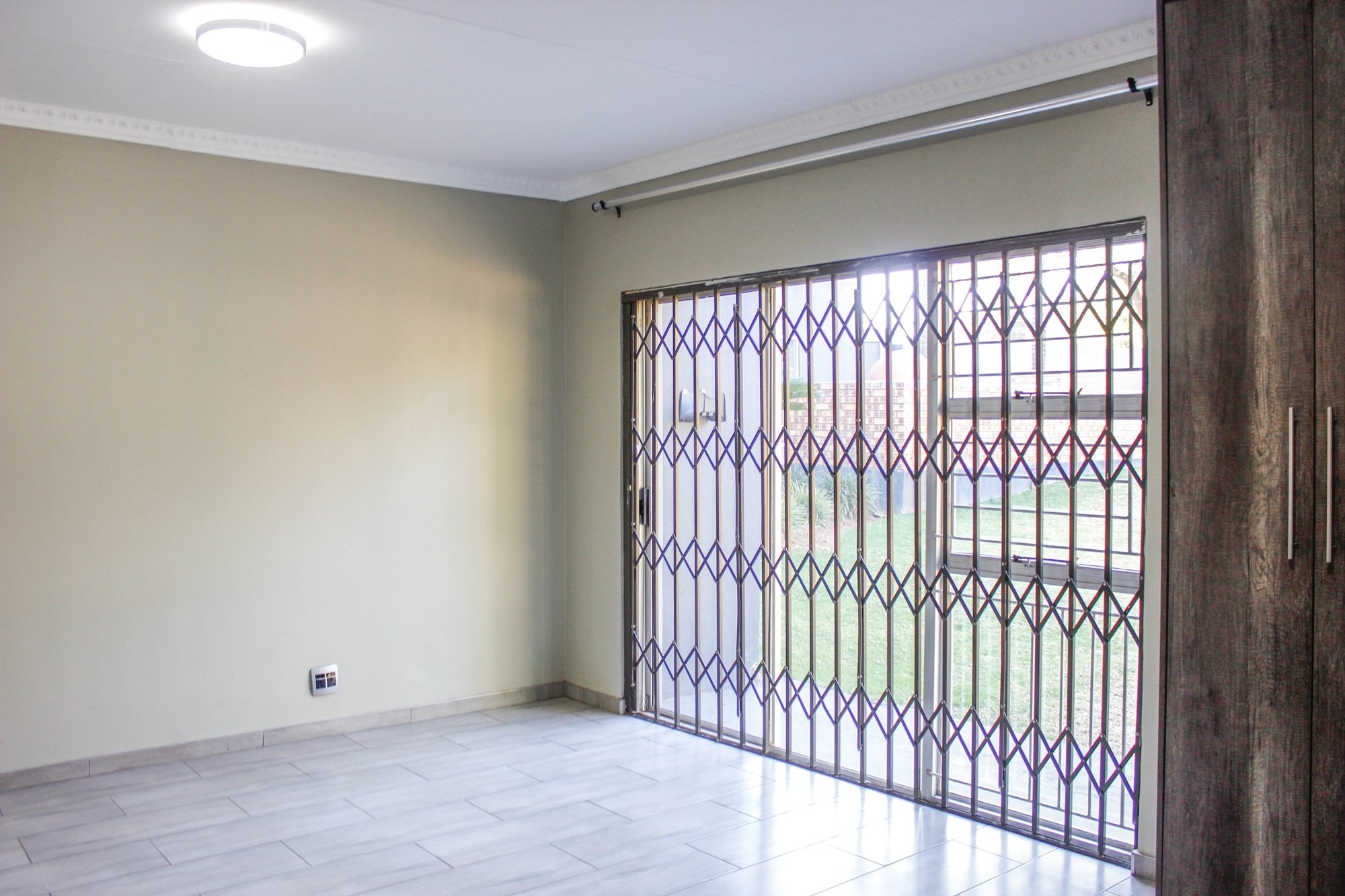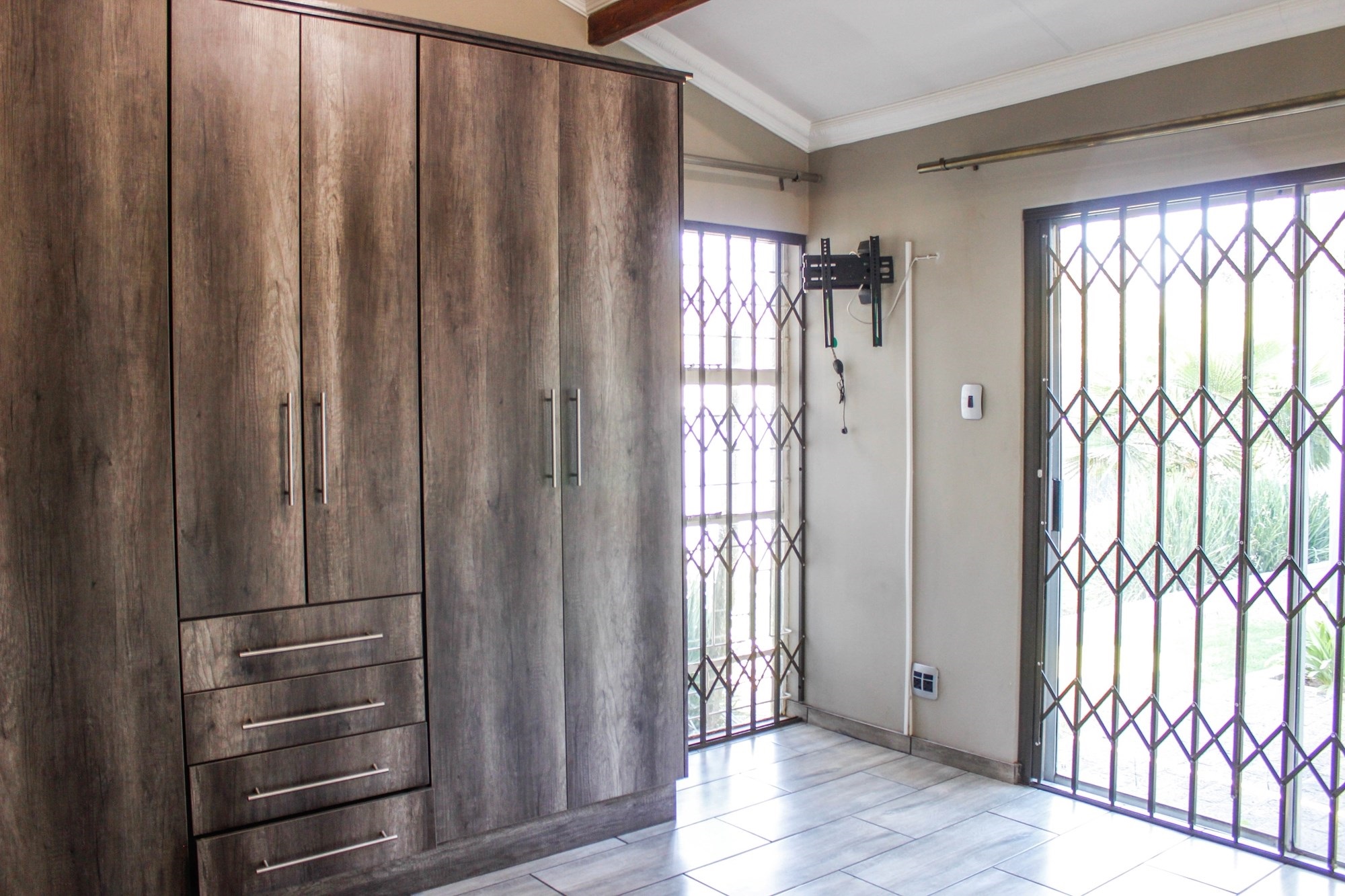 The dining room, with its built-in braai and seamless garden access, makes entertaining a breeze — ideal for both cozy dinners and large celebrations. The kitchen, truly the heart of the home, impresses with oak-finished cupboards, sleek stone countertops, and a premium Smeg oven featuring a 6-plate gas stove. A walk-in pantry, extra-length electric oven, and combined scullery/laundry add practicality and charm.