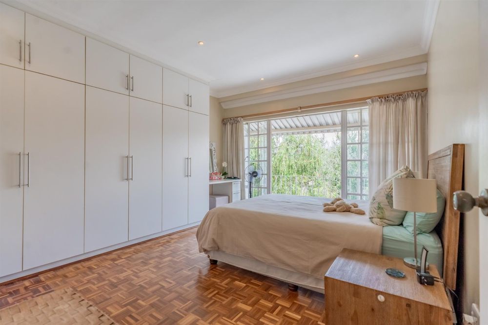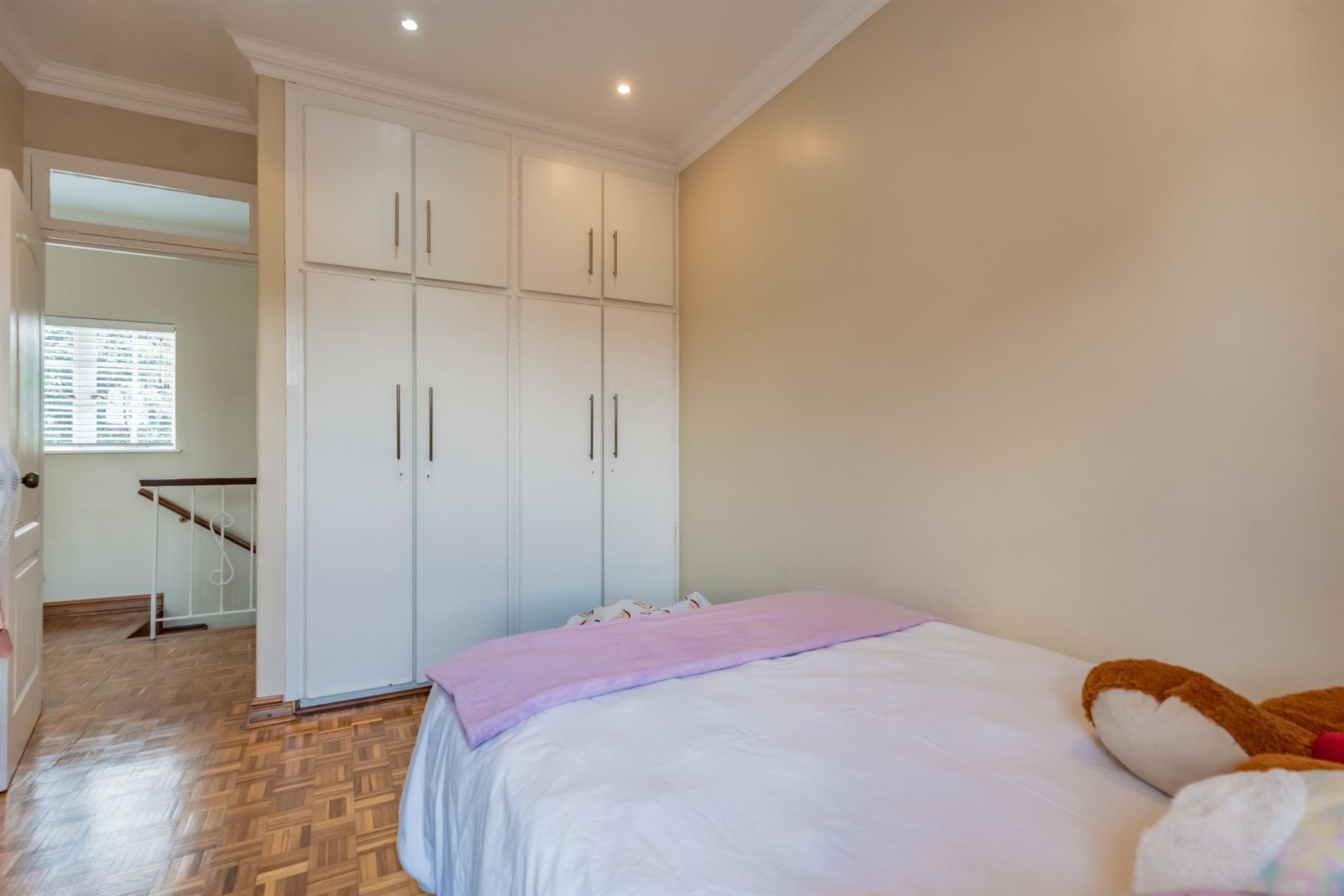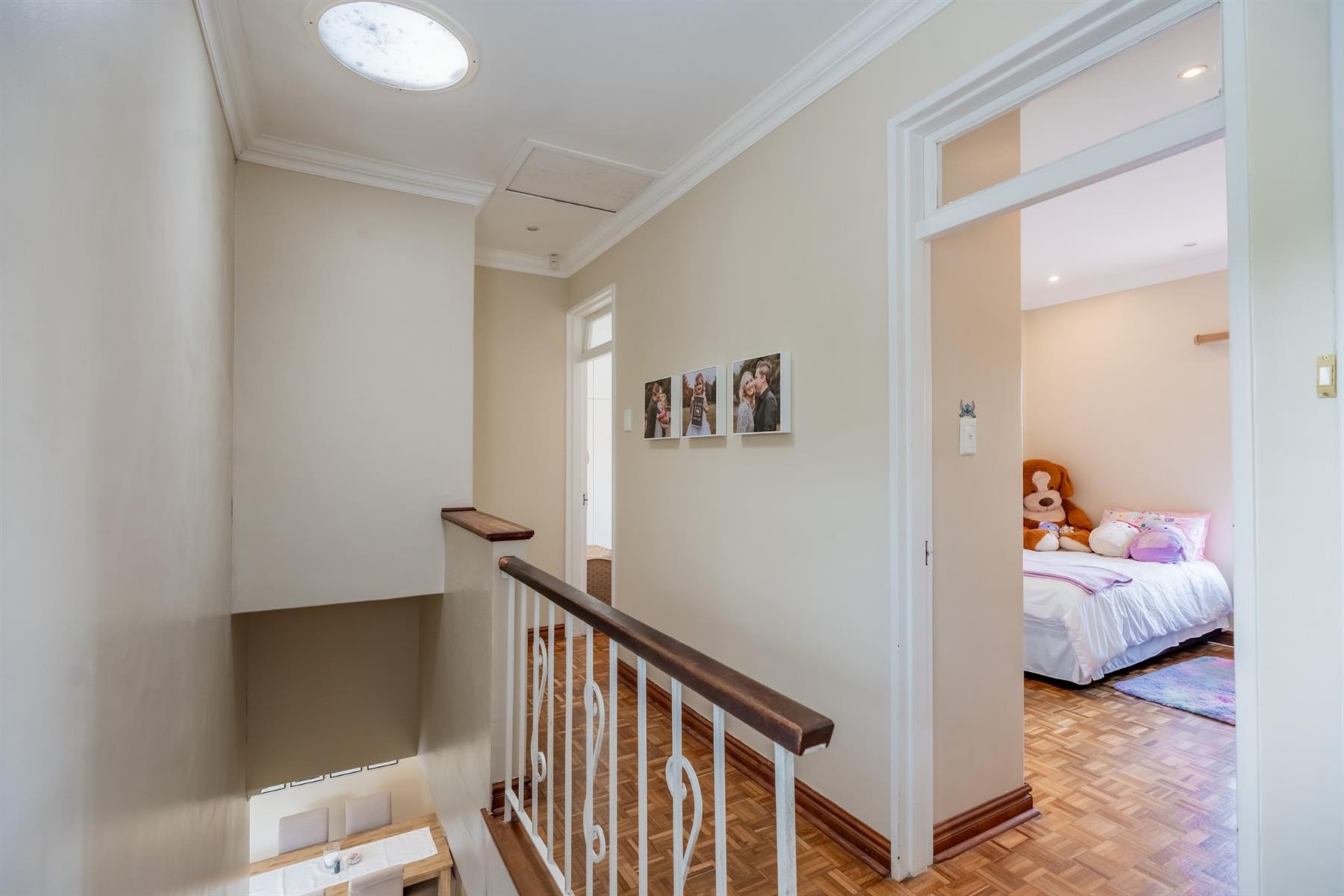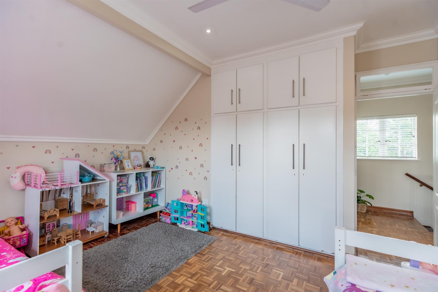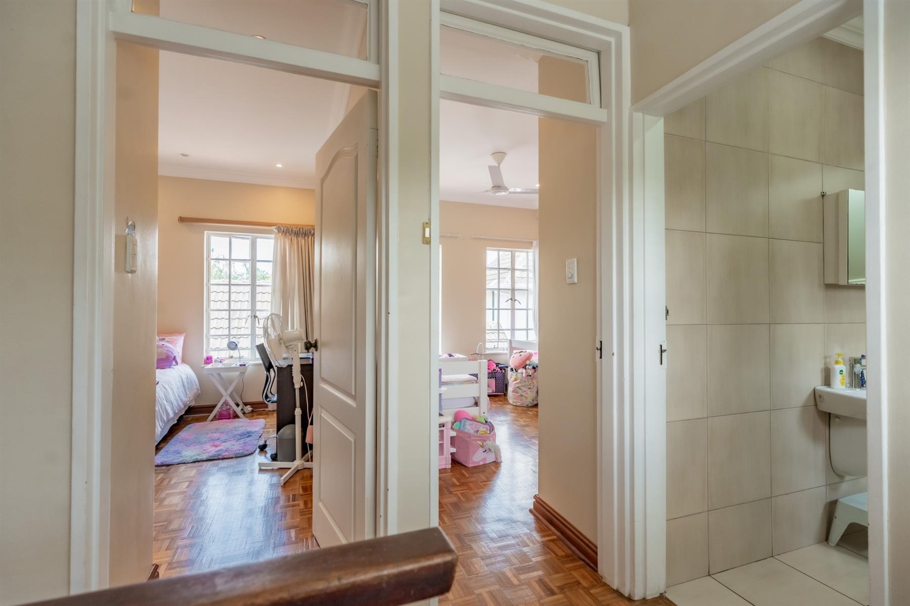 Upstairs offers three well-sized bedrooms, all with built-in cupboards. The family bathroom includes both a bath and shower. The generous main bedroom opens through double doors onto a private balcony and is complemented by a main en-suite bathroom with shower, toilet and basin.