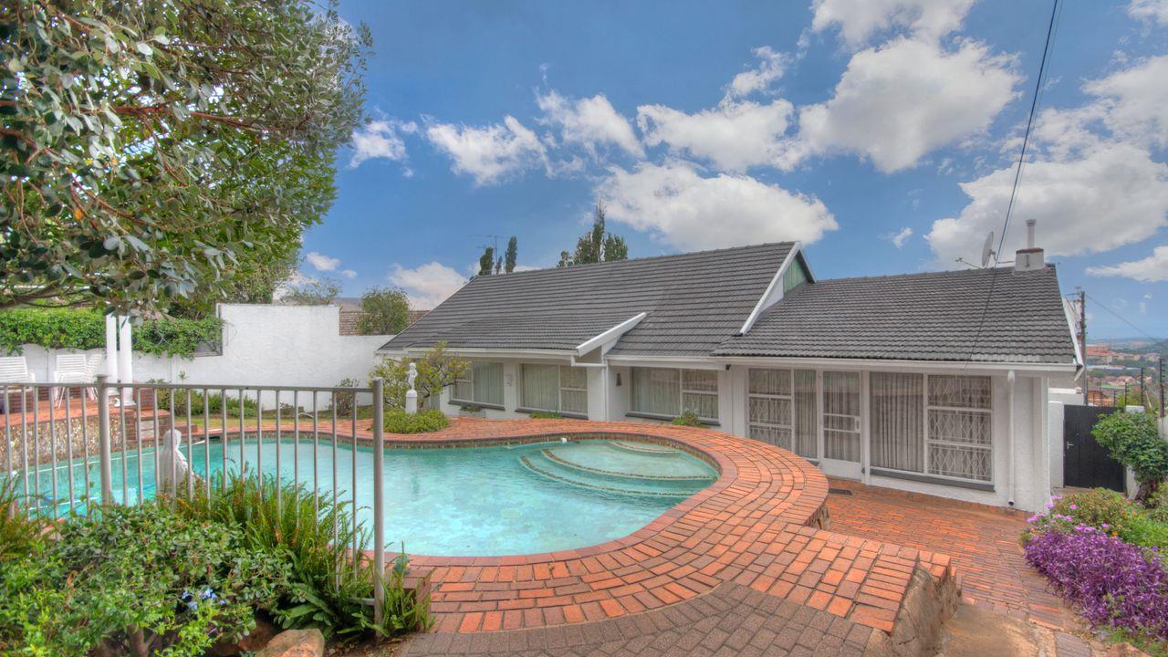 This lovely neat property consist of Welcoming Entrance Hall. Balcony with most exquisite views. Formal South facing Lounge. Large Dining room. 3 Well sized, North facing bedrooms with BIC. Two good size bathrooms one full and one en suite. Enclosed sunroom or 2nd Lounge with siding doors leading to well maintained garden. Sparkling swimming pool with BIB Well maintained garden. 3 Garages. Ample parking