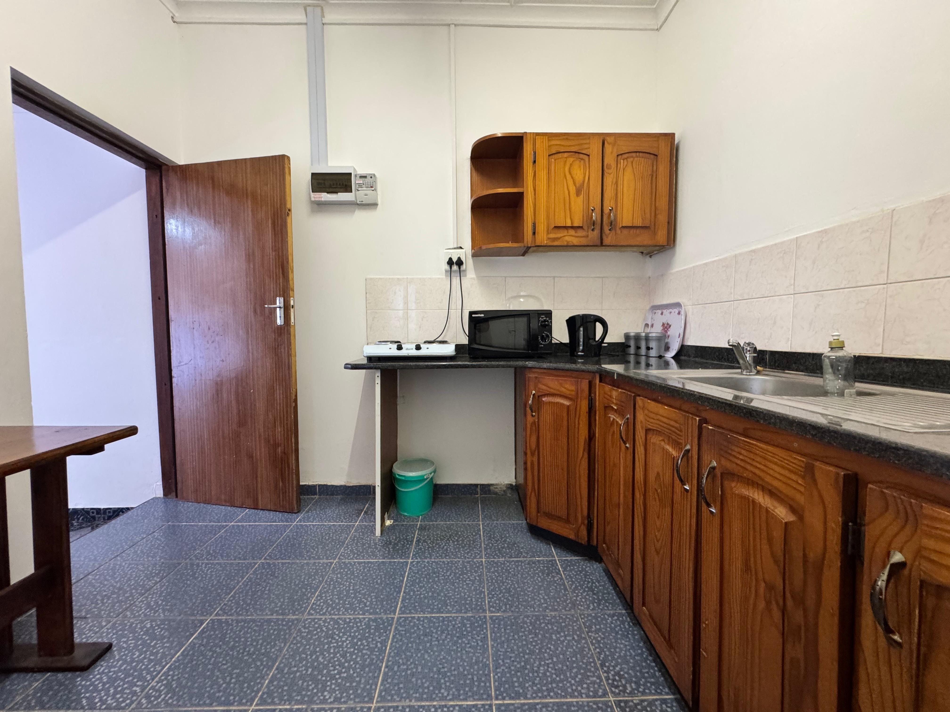 The cottage features a well-sized bedroom with built-in cupboards, a bathroom, and a functional kitchen with ample storage and workspace. The open and airy layout creates a warm, welcoming atmosphere – ideal for a single professional, as the landlord prefers a single professional tenant and no pets are allowed..