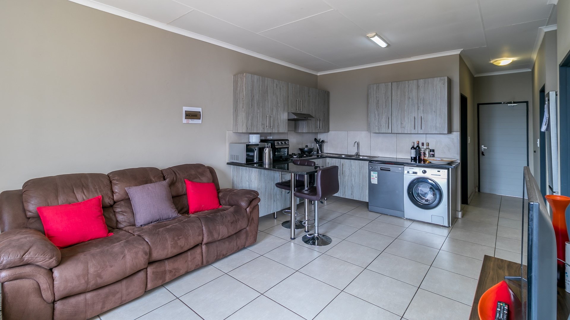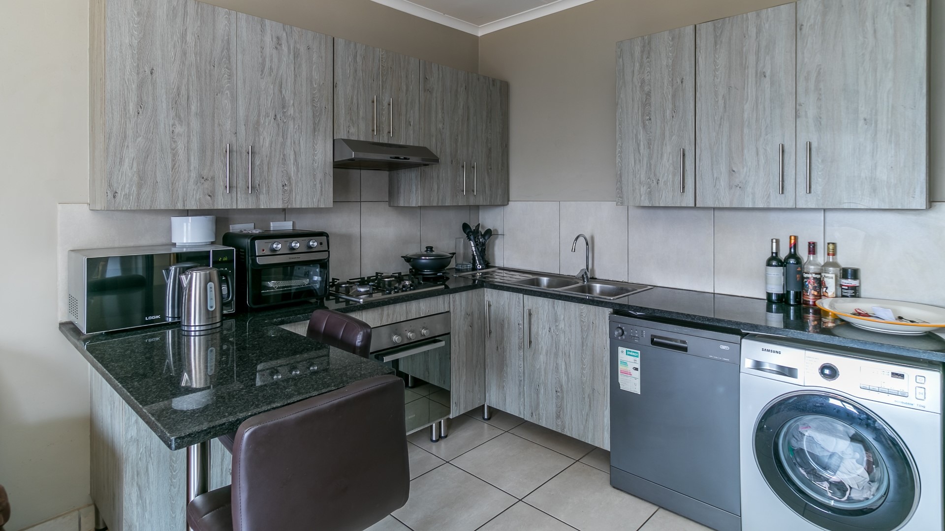 The modern kitchen boasts sleek appliances, ample cabinetry, and a cozy dining nook. Both bedrooms are generously sized, providing a peaceful retreat, while the updated bathroom includes contemporary fixtures and finishes.
