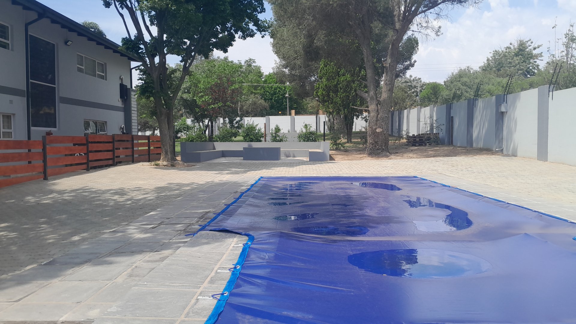 A fenced in Pool Area (pool cover fitted) offers lots of space and a dedicated seating area.