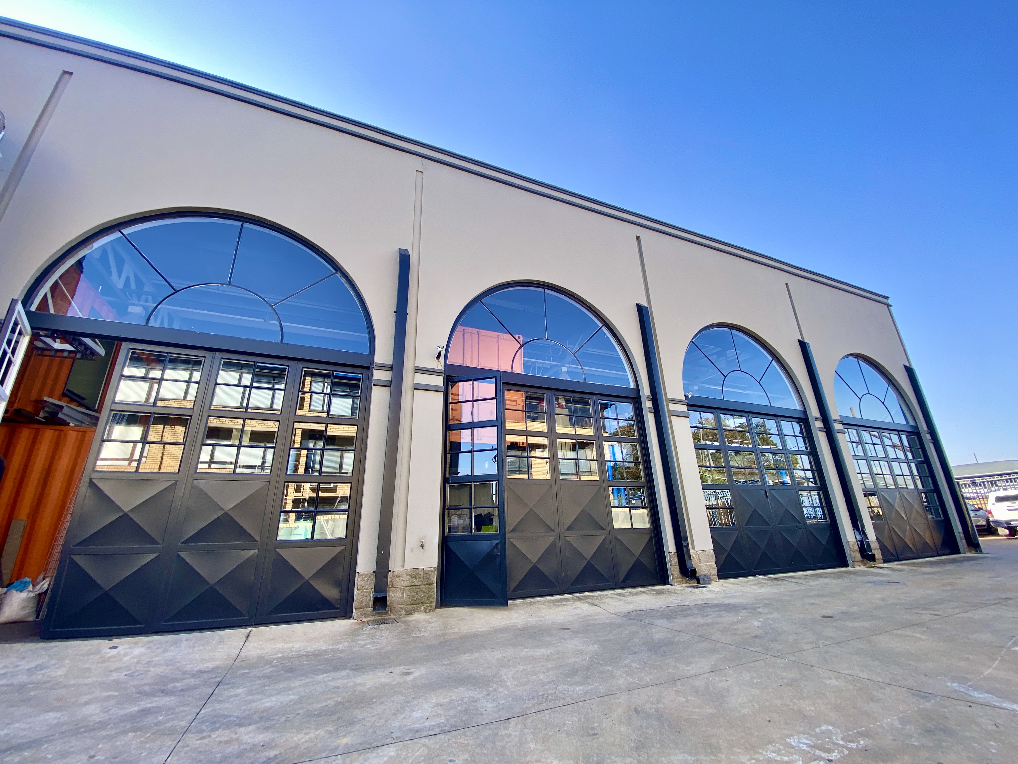 Eye-catching façade with arched windows and modern steel detailing