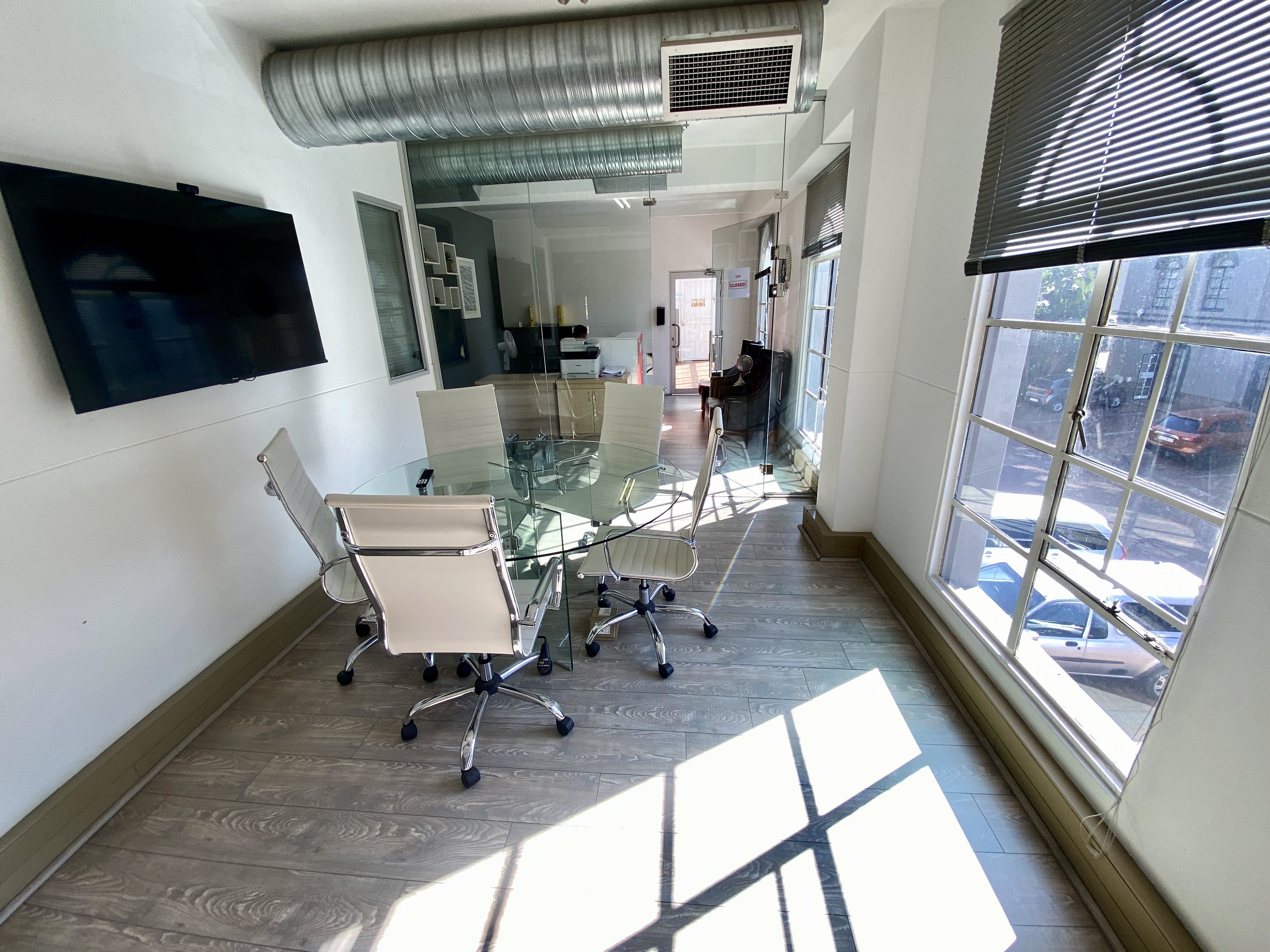A glass-enclosed boardroom offering natural light and a premium finish