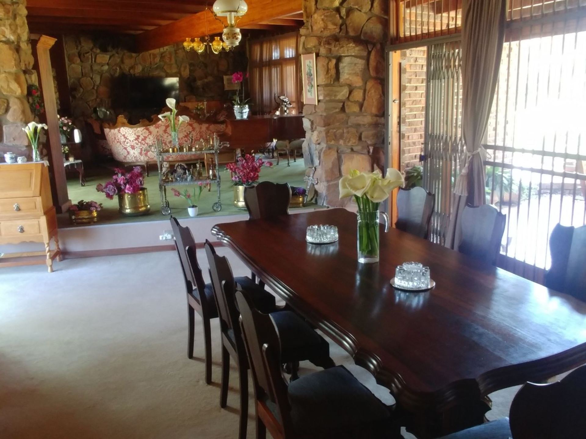 Large beautiful country style house ideal for a big family/ small exclusive bed & breakfast (5 beds all en-suite - Approved consent use) set in tranquil rural setting in the heart of boomed, secure Glen Austin. Spacious carpeted open lounge and diningroom with high meranti ceilings(two diesel fireplaces), well fitted kitchen with huge laundromat & storage. Sunny main bedroom with en-suite dressing room and full bathroom. Office/study with separate entrance for quests leading to five en-suite carpeted guestrooms. Walk-in linen cupboard. Sunny patio overlooking beautiful treed landscaped garden & sparkling pool (100 000litre). DStv dish, wi-fi, firepit, borehole, storeroom, auto gate ( 2nd gate within boom), 3phase Eskom power, alarm system, burglar bars, beams, flood lights. Plans for future expansion -double storey.Close to all amenities, New & Olifantsfontein on/off ramps, private schools, Grand Central Airport, Gautrain station, Corporate shopping Centre and the well known Mall of Africa.