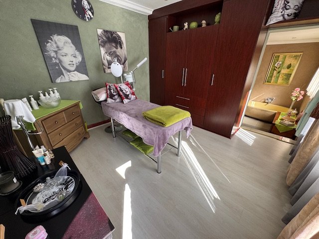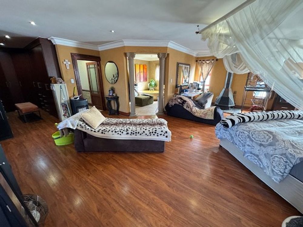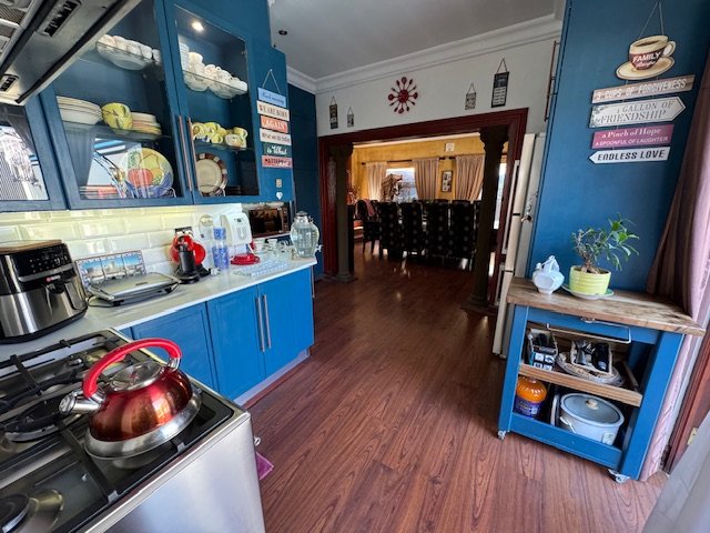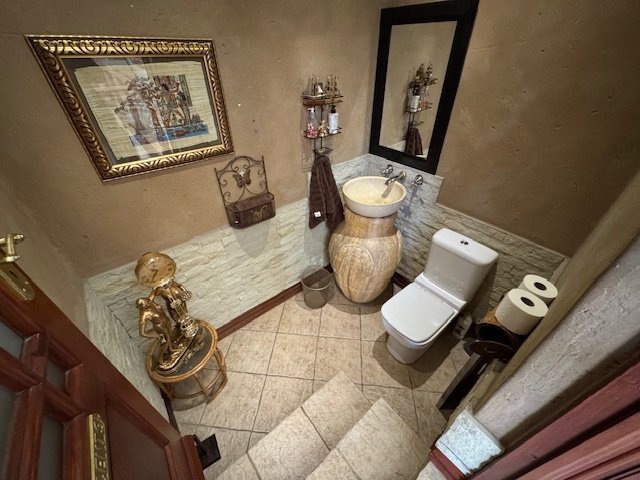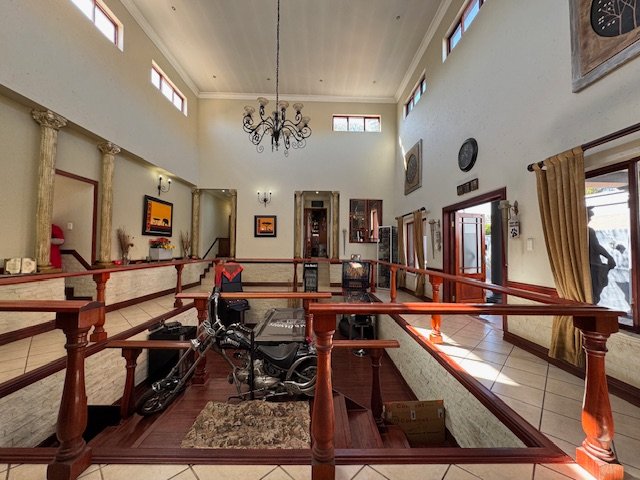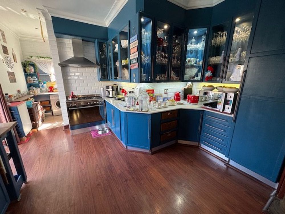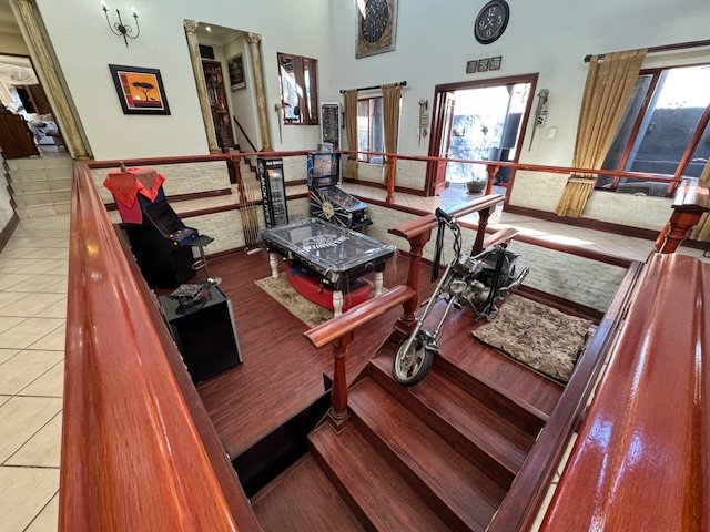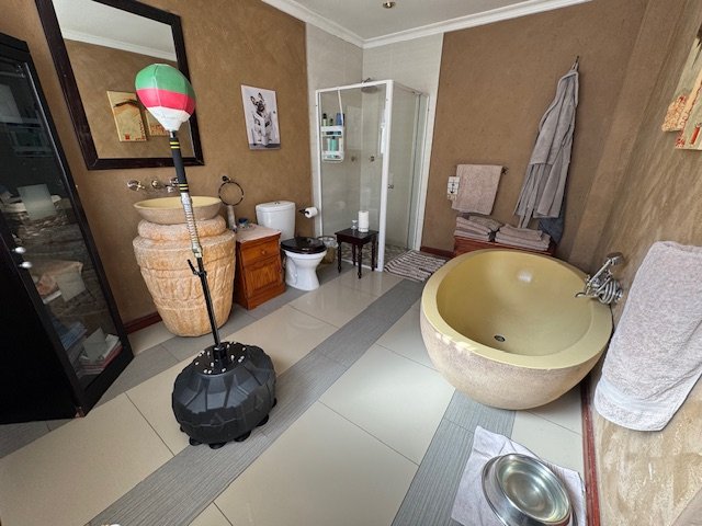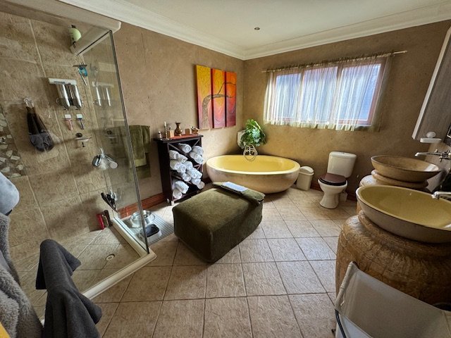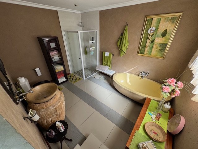 The kitchen is well-equipped with a pantry and is supported by a separate scullery. Additional features include a guest loo and 3 built-in cupboards (BIC) for ample storage. The home is complete with a sparkling pool and a double garage, ideal for family living.