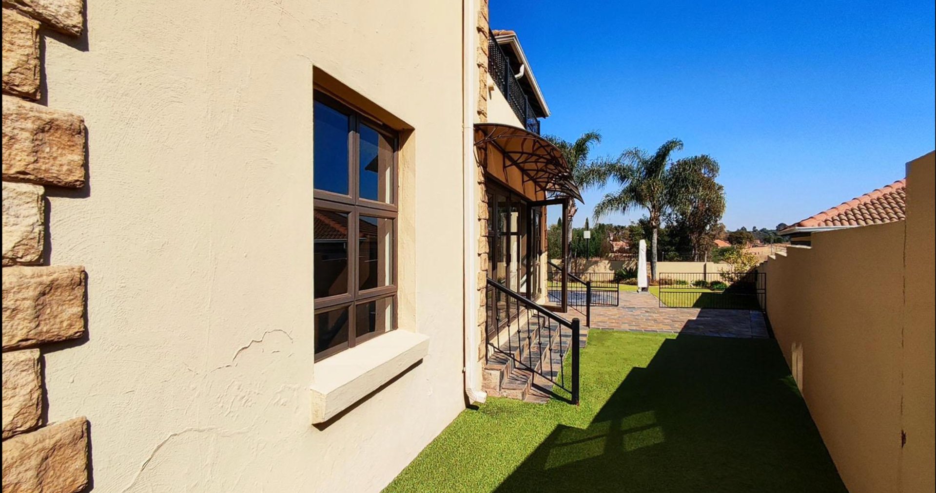 Outside, the property provides a private and low-maintenance outdoor retreat with a well-kept lawn, paved patio, and a covered swimming pool. Artificial grass and high perimeter walls enhance both privacy and ease of maintenance.