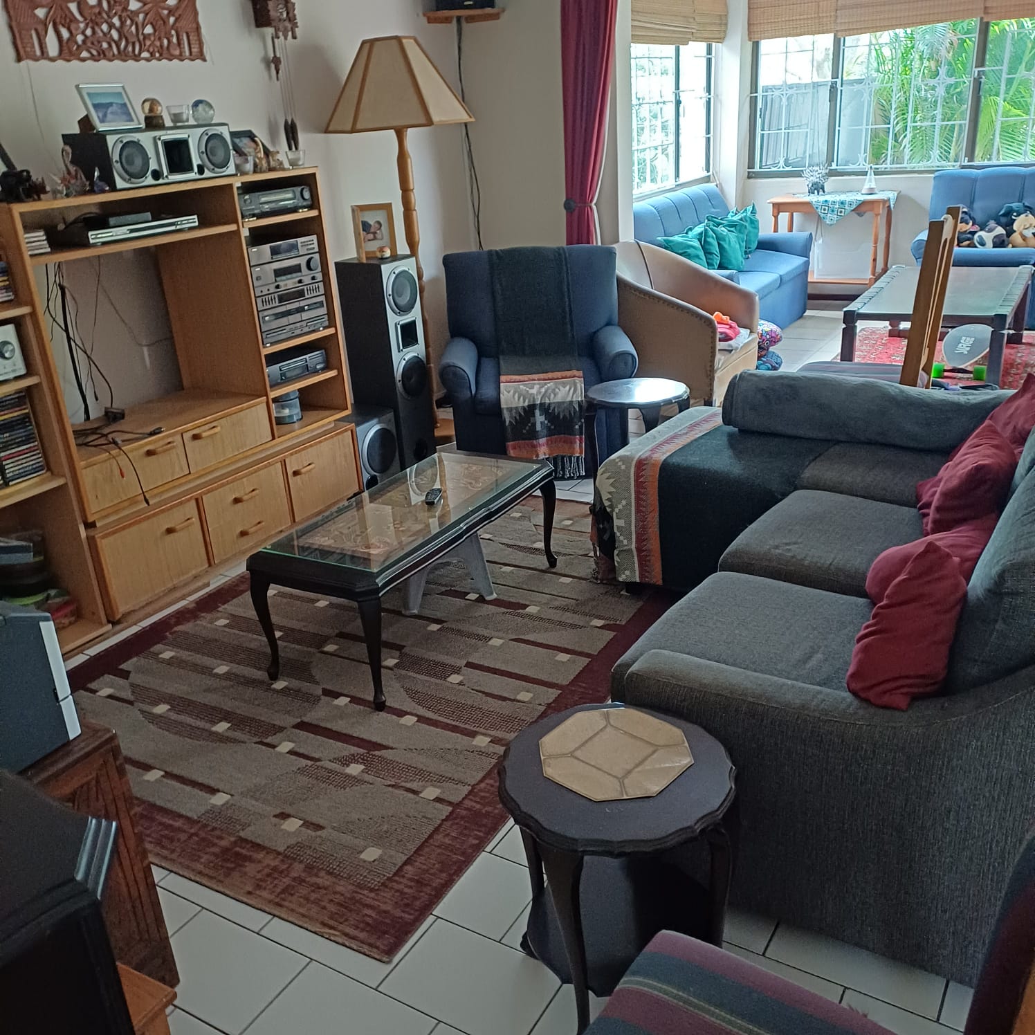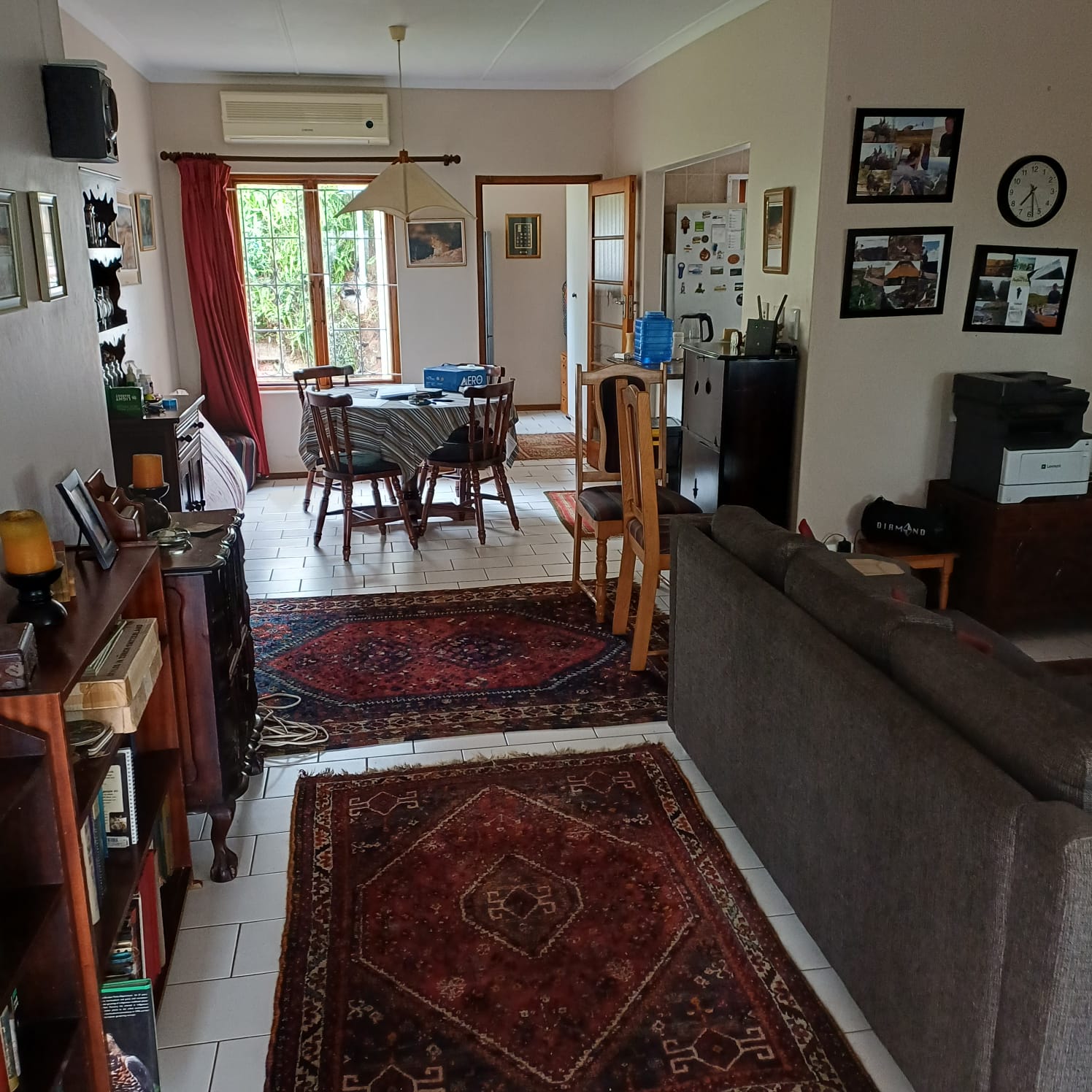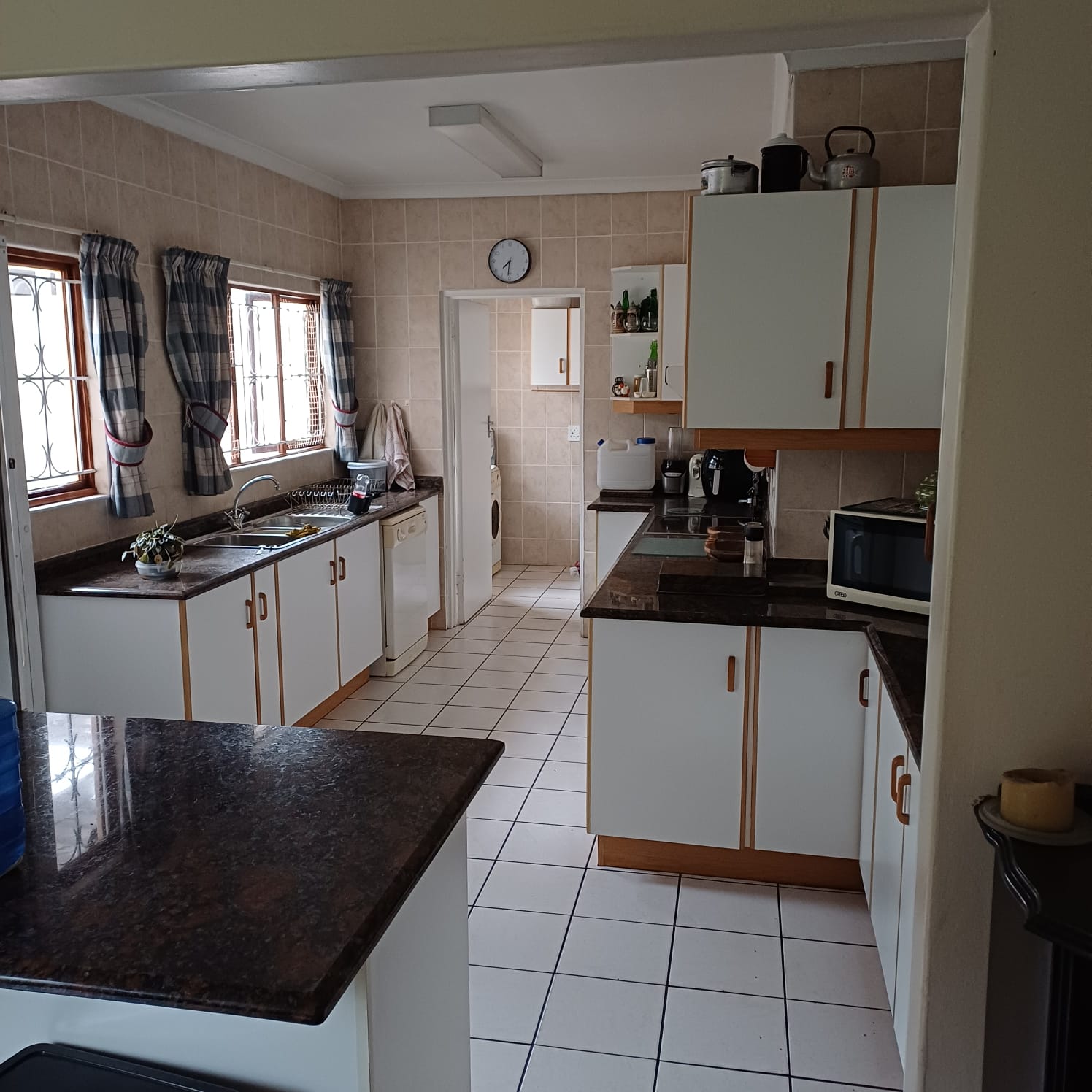 The home features a bright and airy open-plan layout that seamlessly connects the lounge, dining area and kitchen — perfect for everyday living and entertaining. Tiled flooring throughout and large windows allow plenty of natural light to flow in, creating a warm and inviting atmosphere. Air conditioning adds extra comfort during Durban’s warmer days.