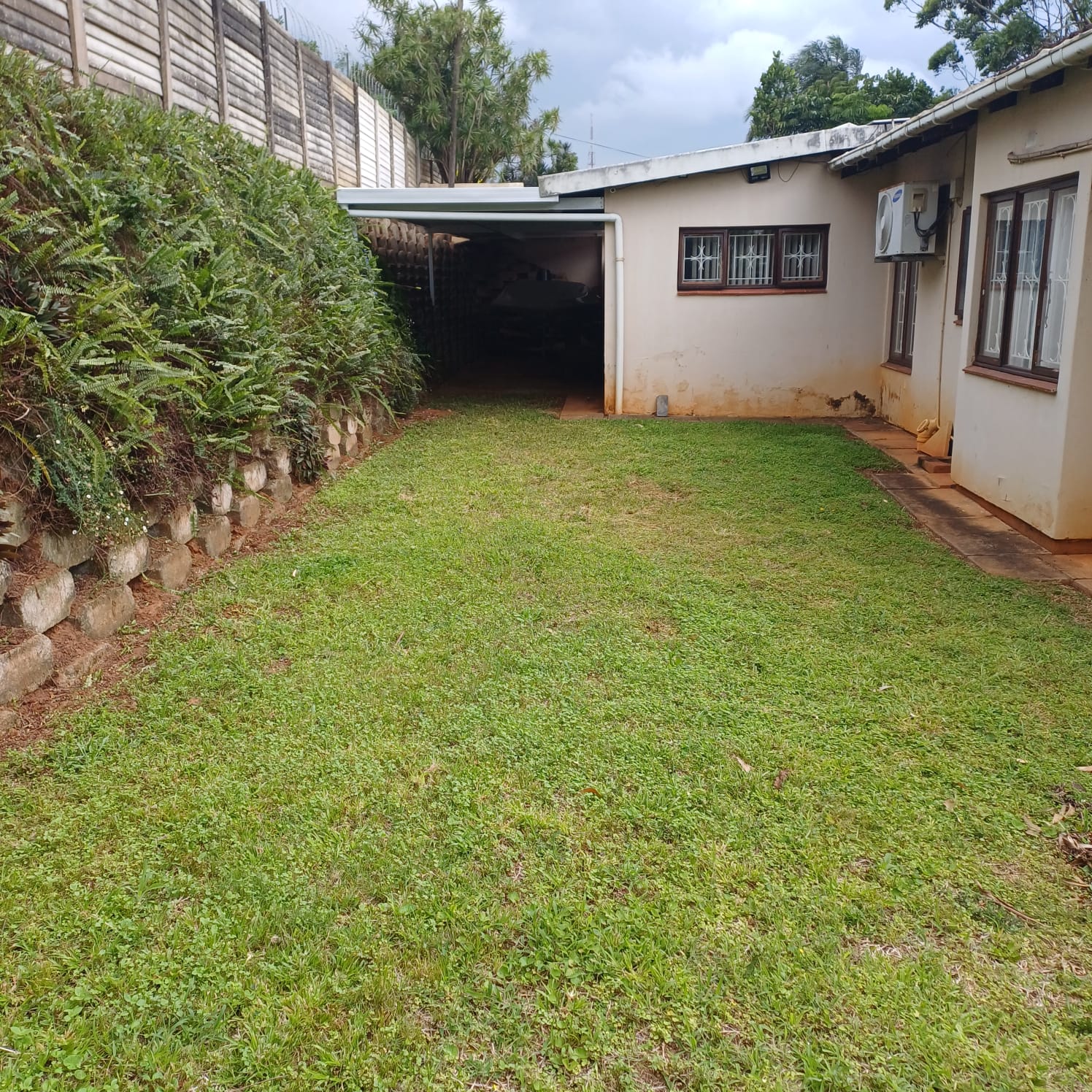 Fully walled property with access gate and burglar bars