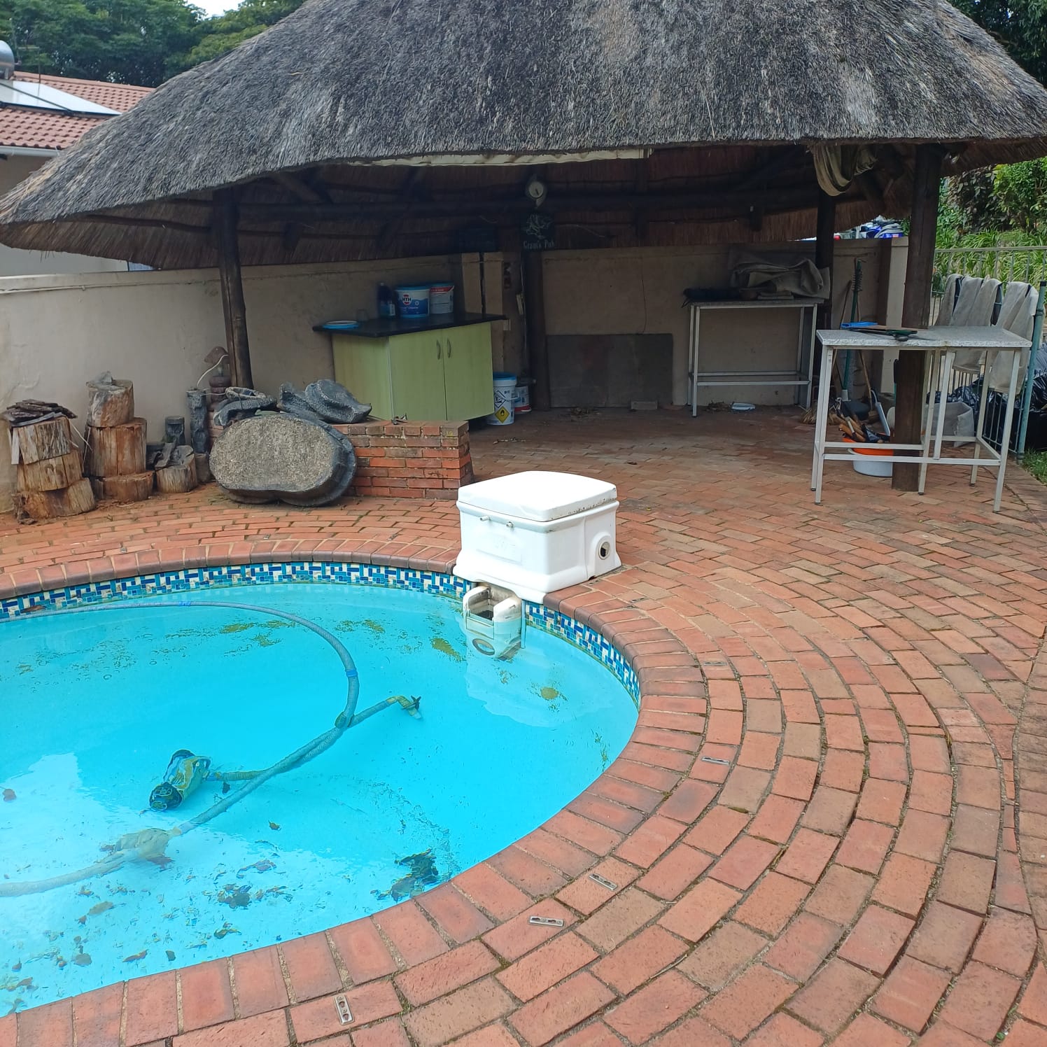 Private swimming pool and thatched lapa