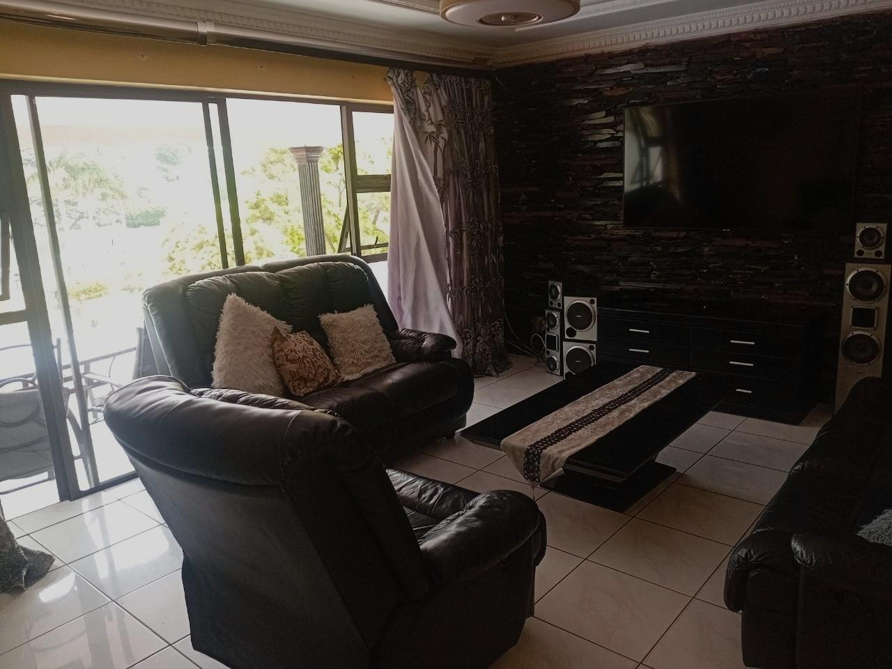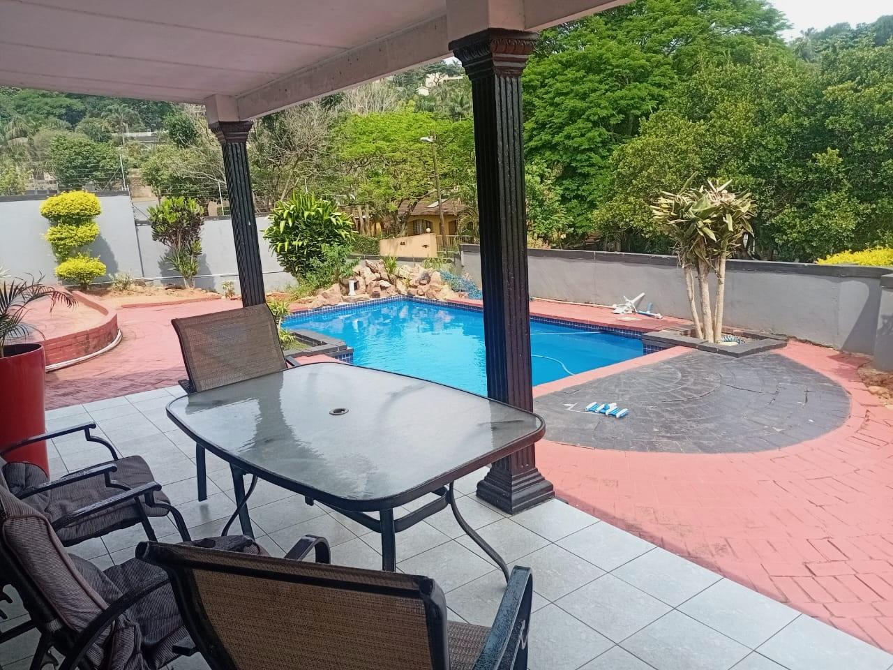 Relax in the inviting lounge, which opens onto a covered patio. This outdoor space overlooks a sparkling pool, creating a serene setting for both relaxation and entertainment.