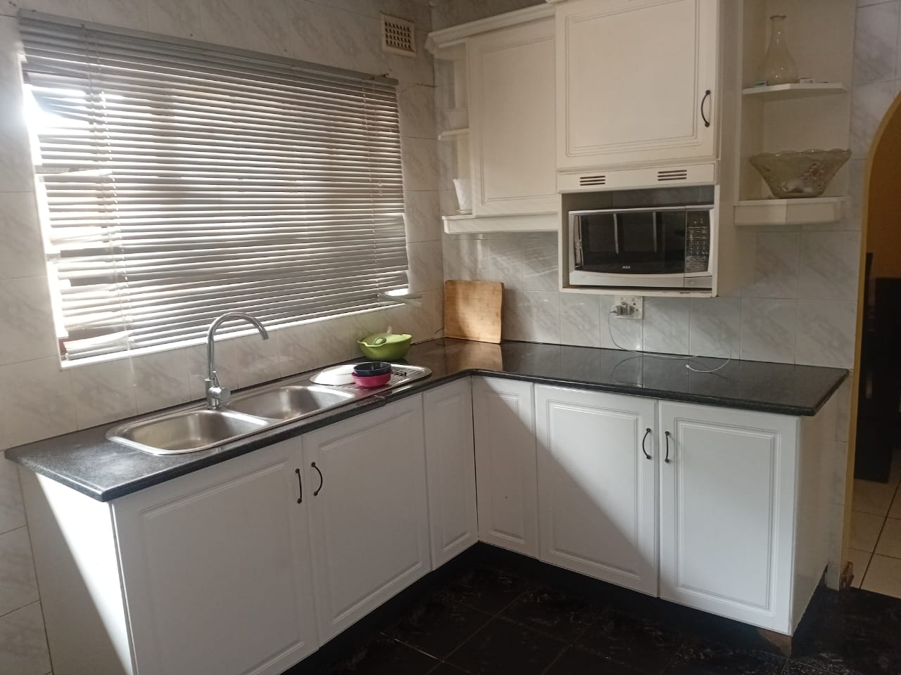 The fully fitted kitchen is functional and equipped with plumbing for both a washing machine and dishwasher. Adjacent to the kitchen, the dining room provides a seamless flow for entertaining and family meals.