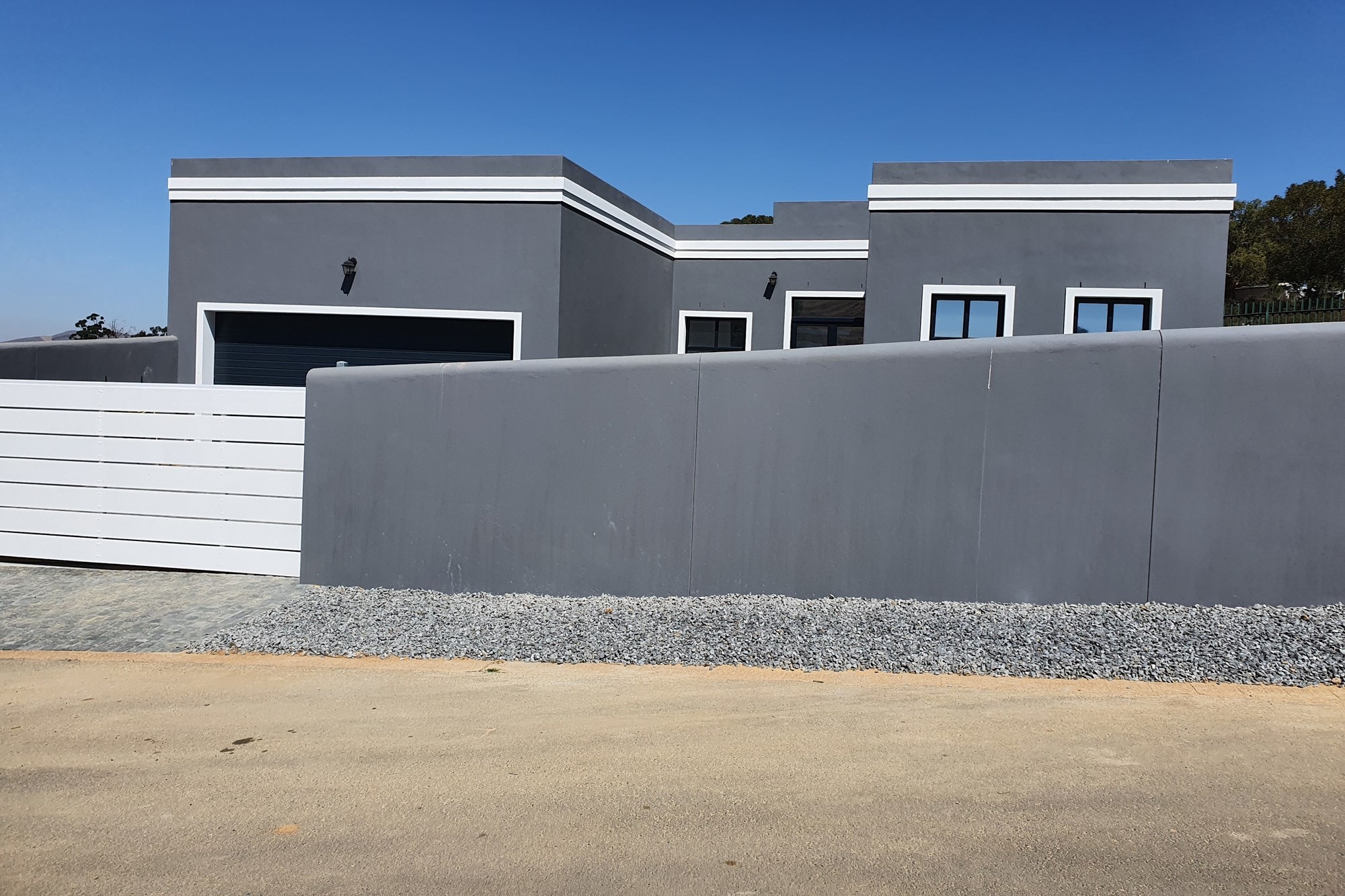 This house will be built on a plot of 370 sqm , plot is situated in a close and the houses are all in a new Mexican style with aliminium windows and the houses are dark grey with white linings