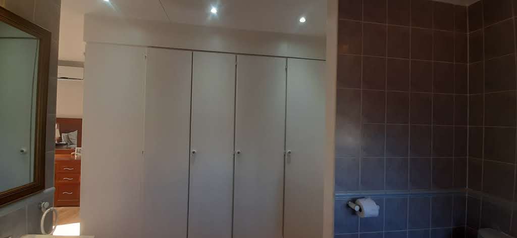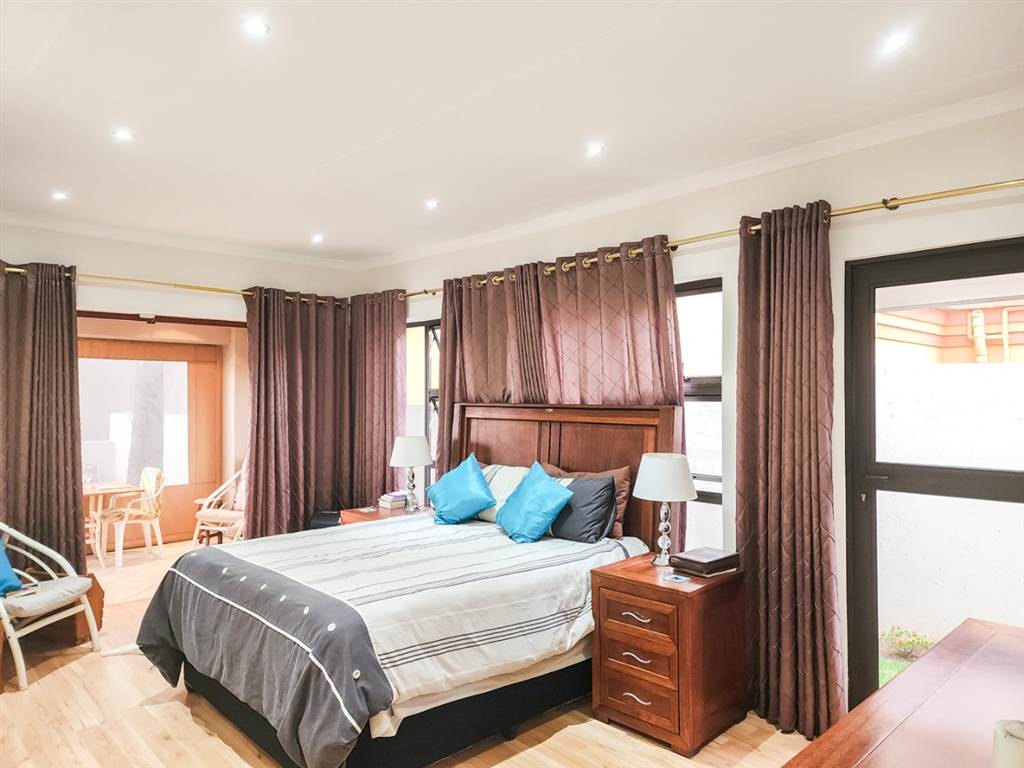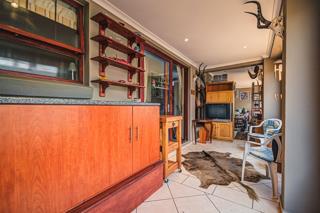 The designer kitchen is both functional and stylish, with ample cupboard space, high-end finishes, and a separate laundry and scullery for added convenience. Open-plan living areas flow seamlessly to an all-season entertainment space with a built-in braai, ideal for hosting guests or enjoying family time all year round.