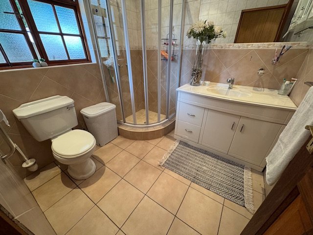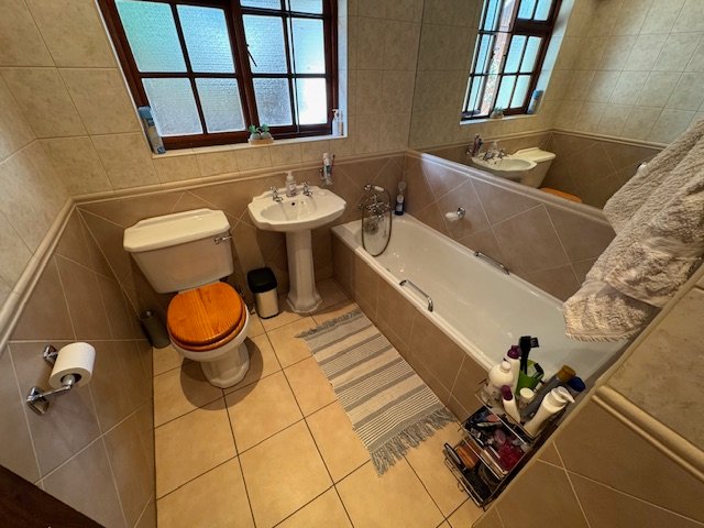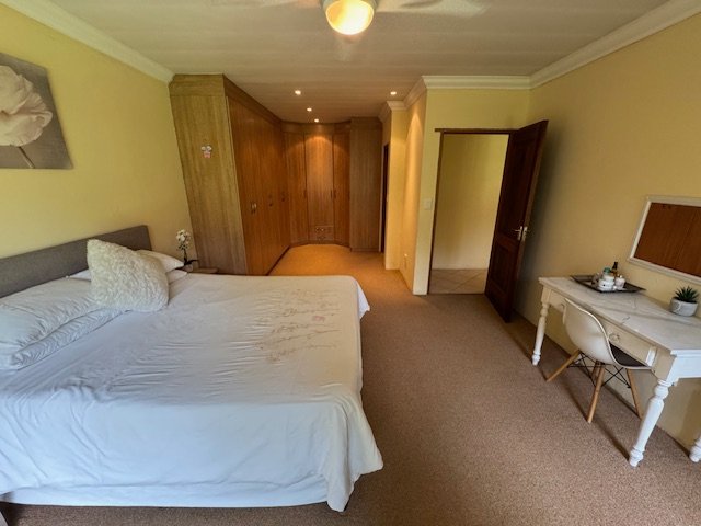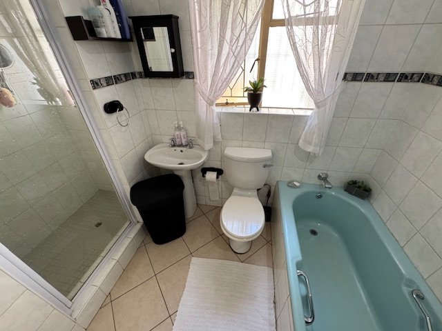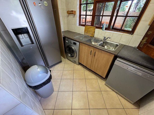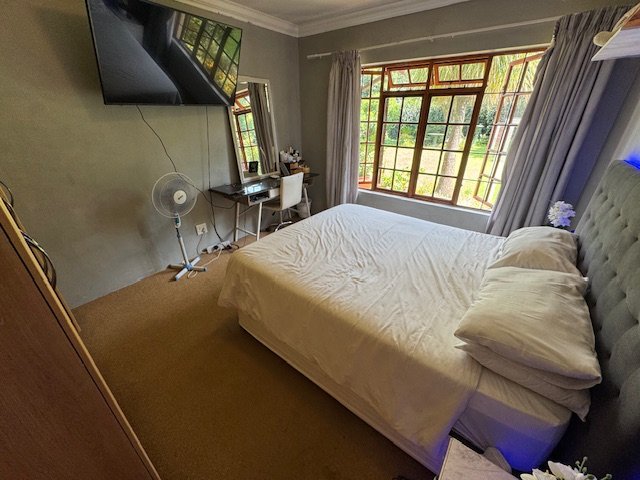 The kitchen is equipped with a scullery for added convenience. The home features five bedrooms, all with built-in cupboards (BIC), and three bathrooms to accommodate family needs. A self-contained granny flat provides extra space for guests or rental income.