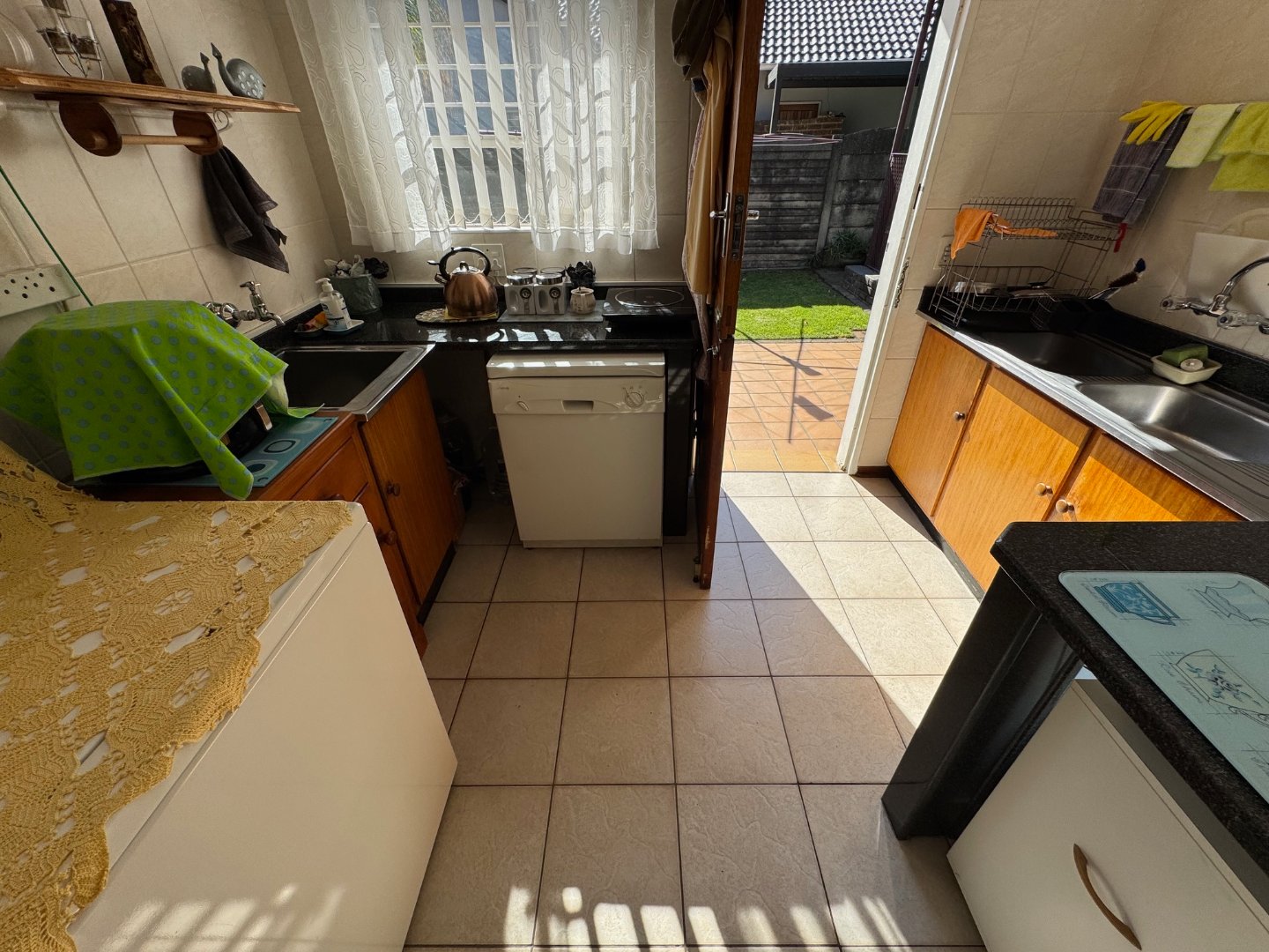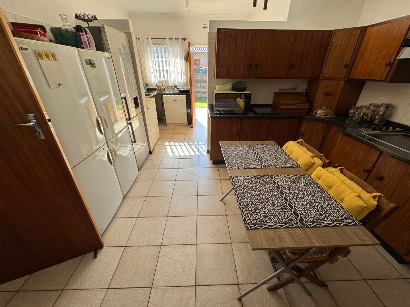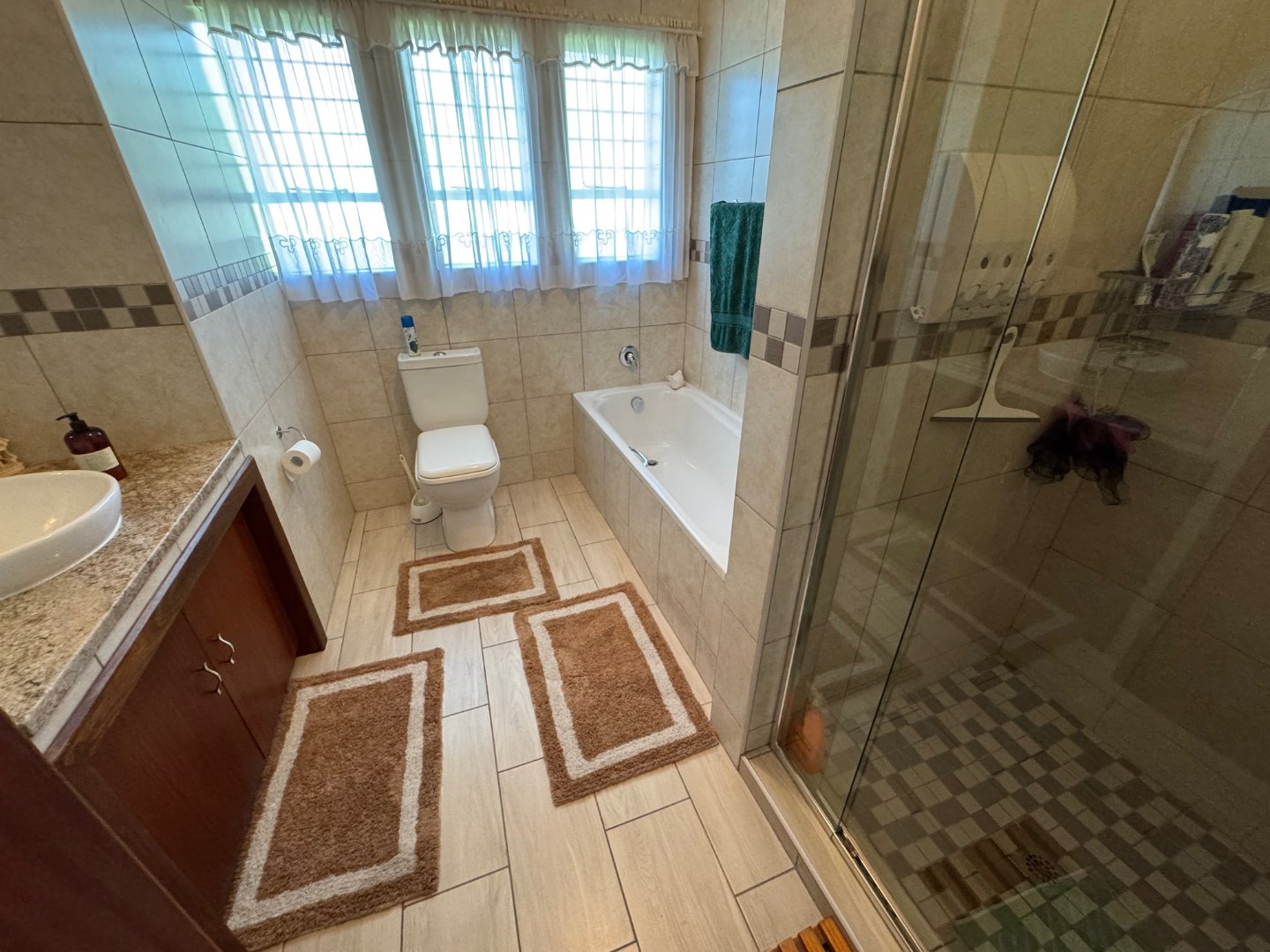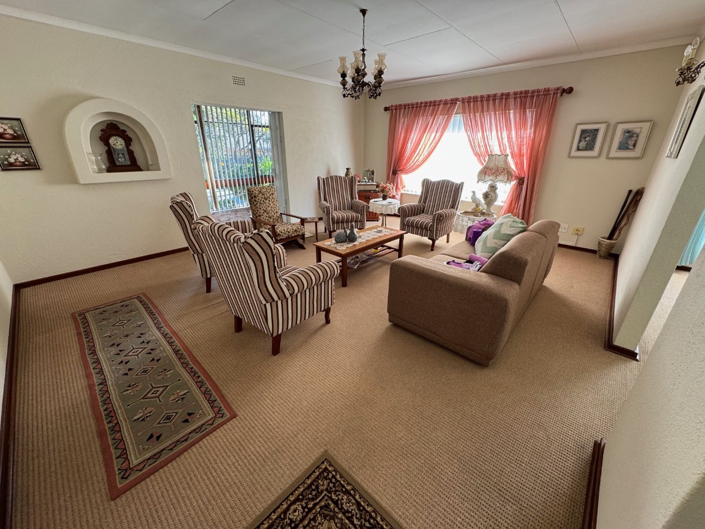 The main bedroom boasts a private en-suite, while a second full bathroom serves the rest of the home. A welcoming entrance hall leads into a bright lounge, with a separate dining room perfect for family meals. The modern kitchen is complemented by a pantry and a scullery, ensuring a neat and efficient cooking space. Additional conveniences include a separate laundry and dedicated staff quarters.