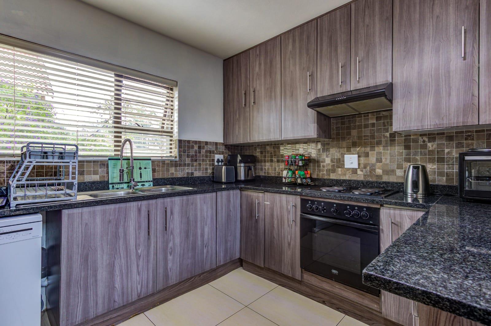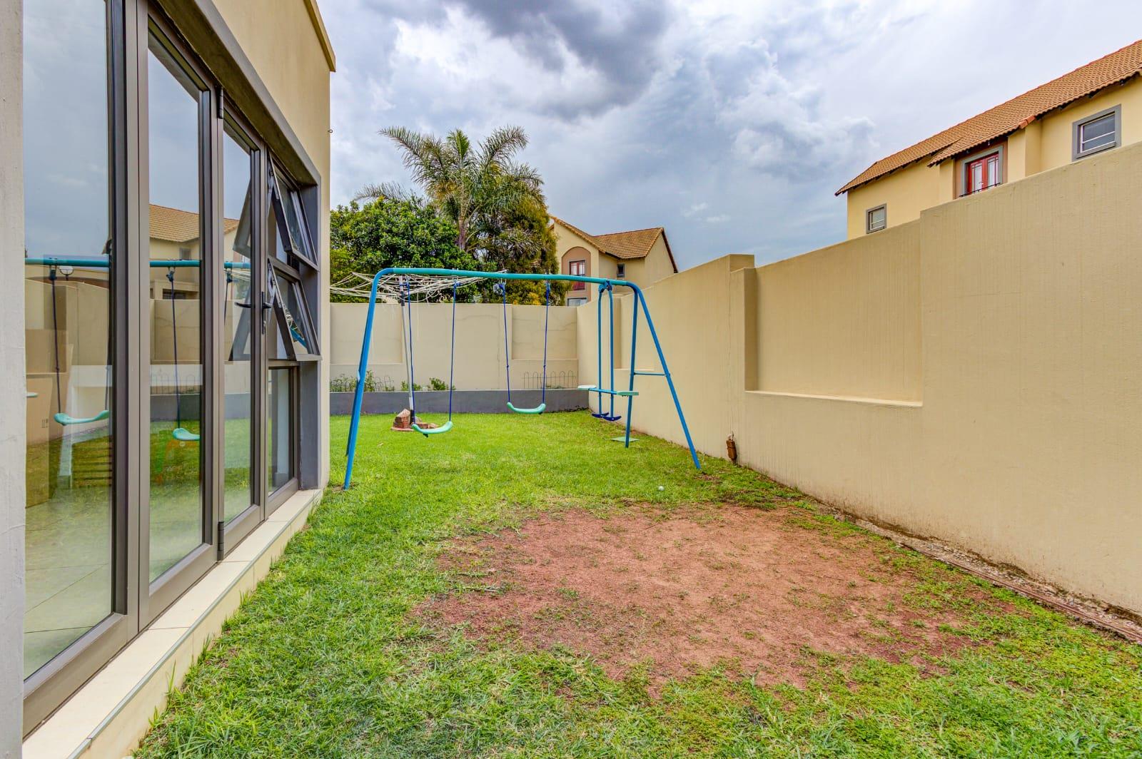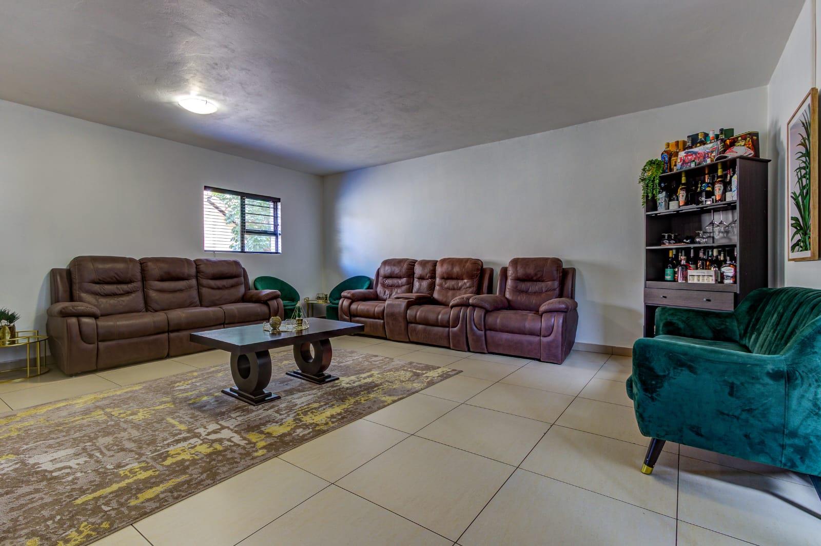 The property includes a private garden and paved areas, offering low-maintenance outdoor enjoyment, and is pet-friendly. Parking is well-catered for with two garages. Security is paramount, featuring 24-hour security within the complex, an access gate, and a security gate. Furthermore, this home embraces modern sustainability with solar panels and a battery inverter(On Rental basis and can be carried over), there is also a buy out option available which can be discussed and complemented by fibre connectivity for contemporary living.