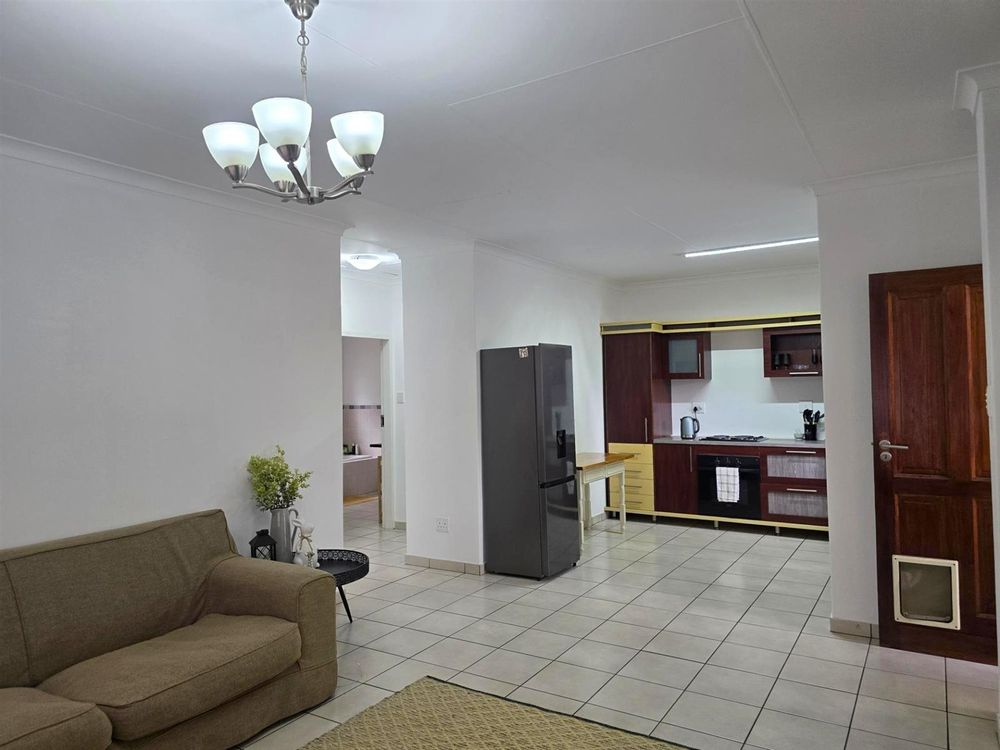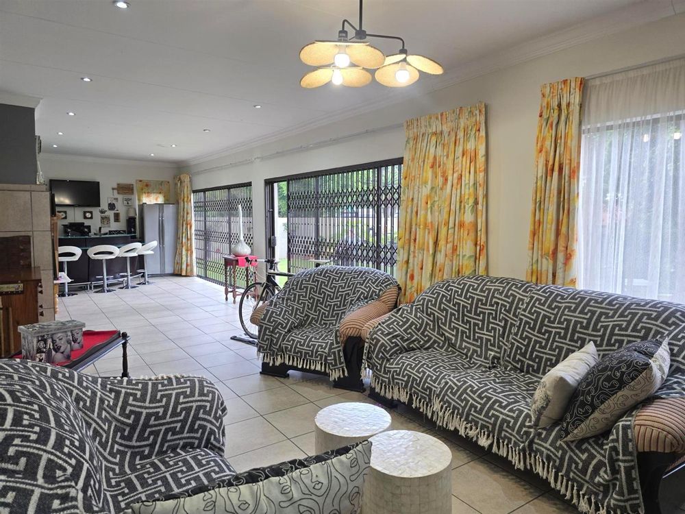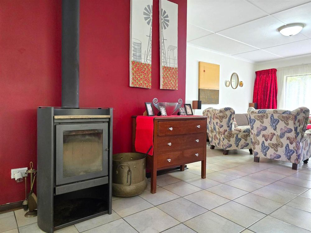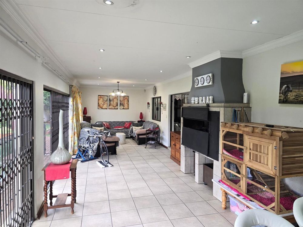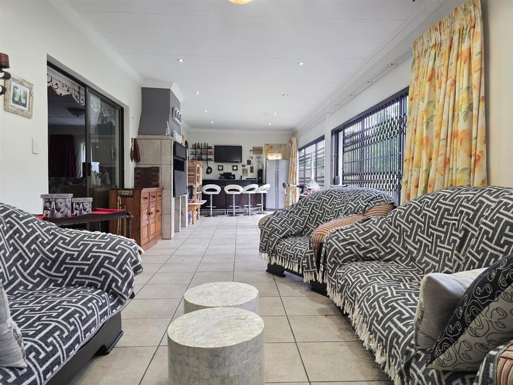 Indoor entertainment area with built-in braai and space for lounge and bar.