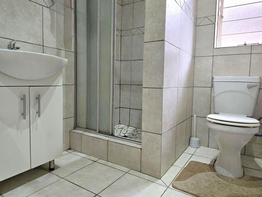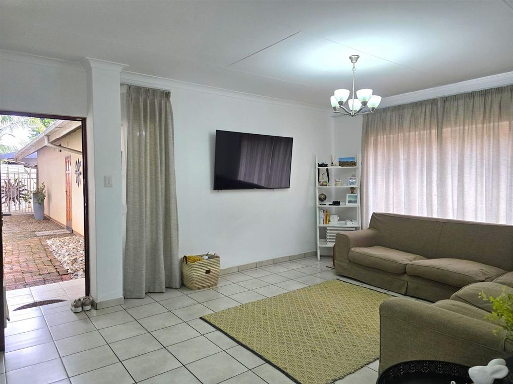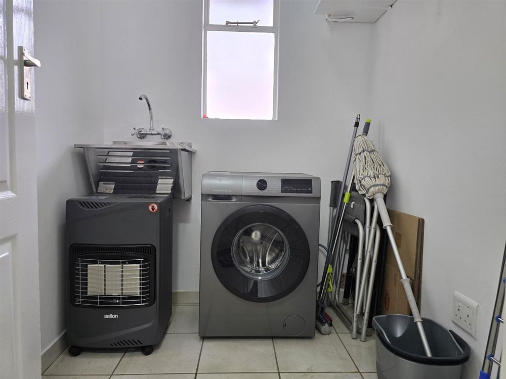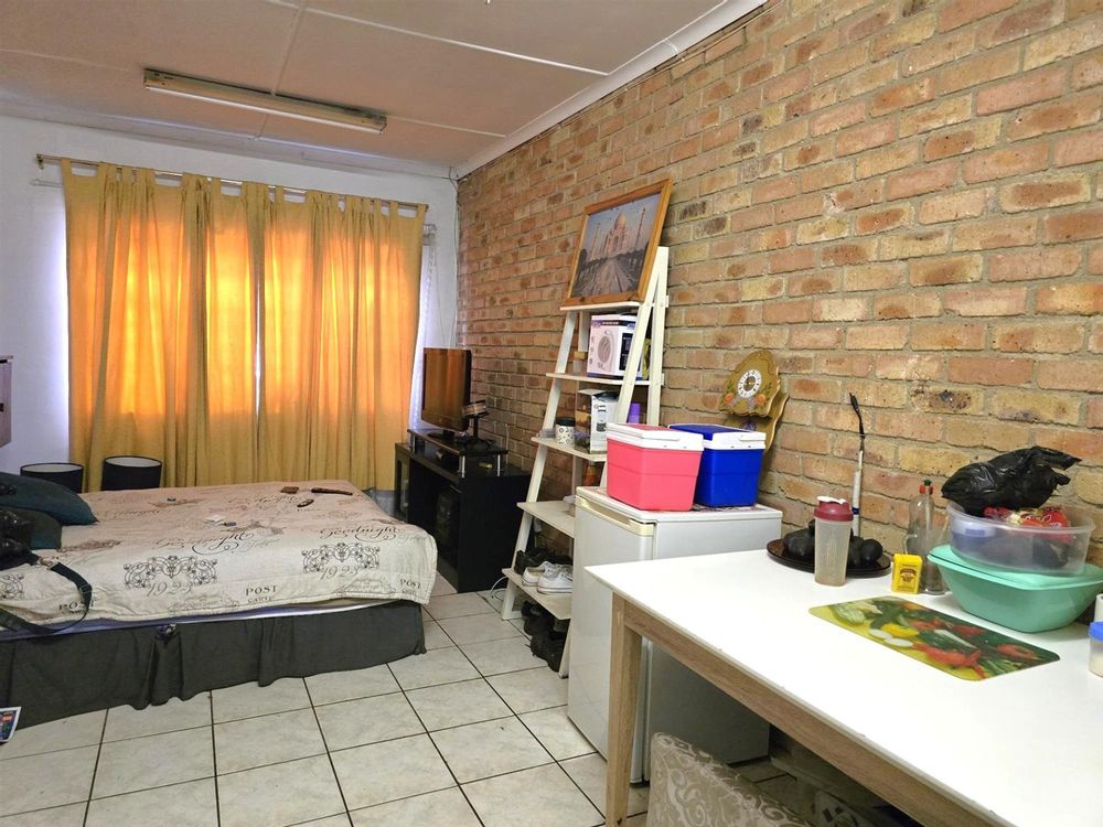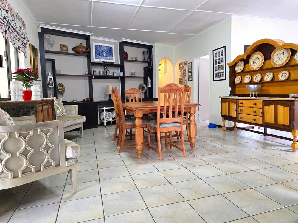 Indoor entertainment area with built-in braai and space for lounge and bar.