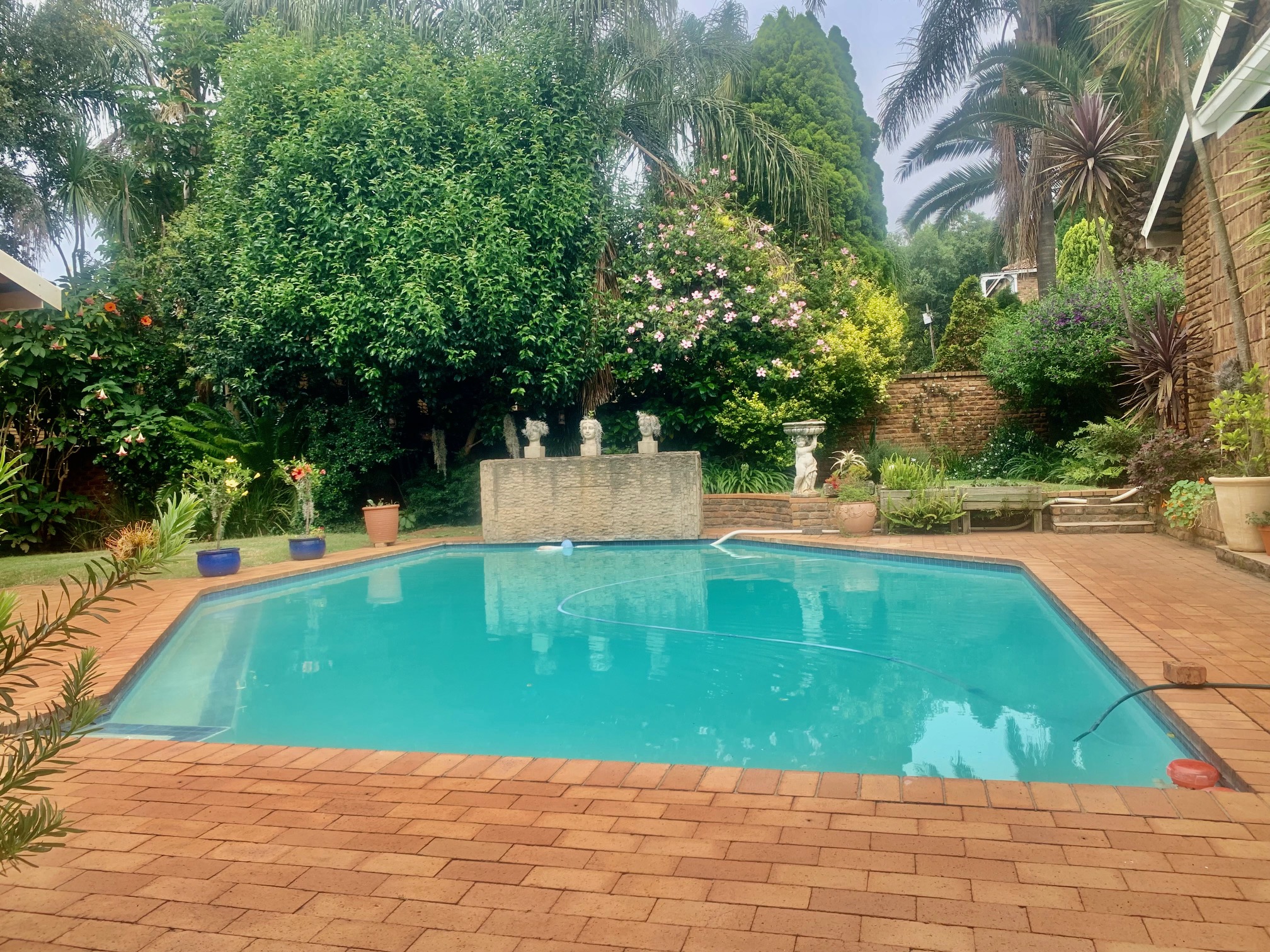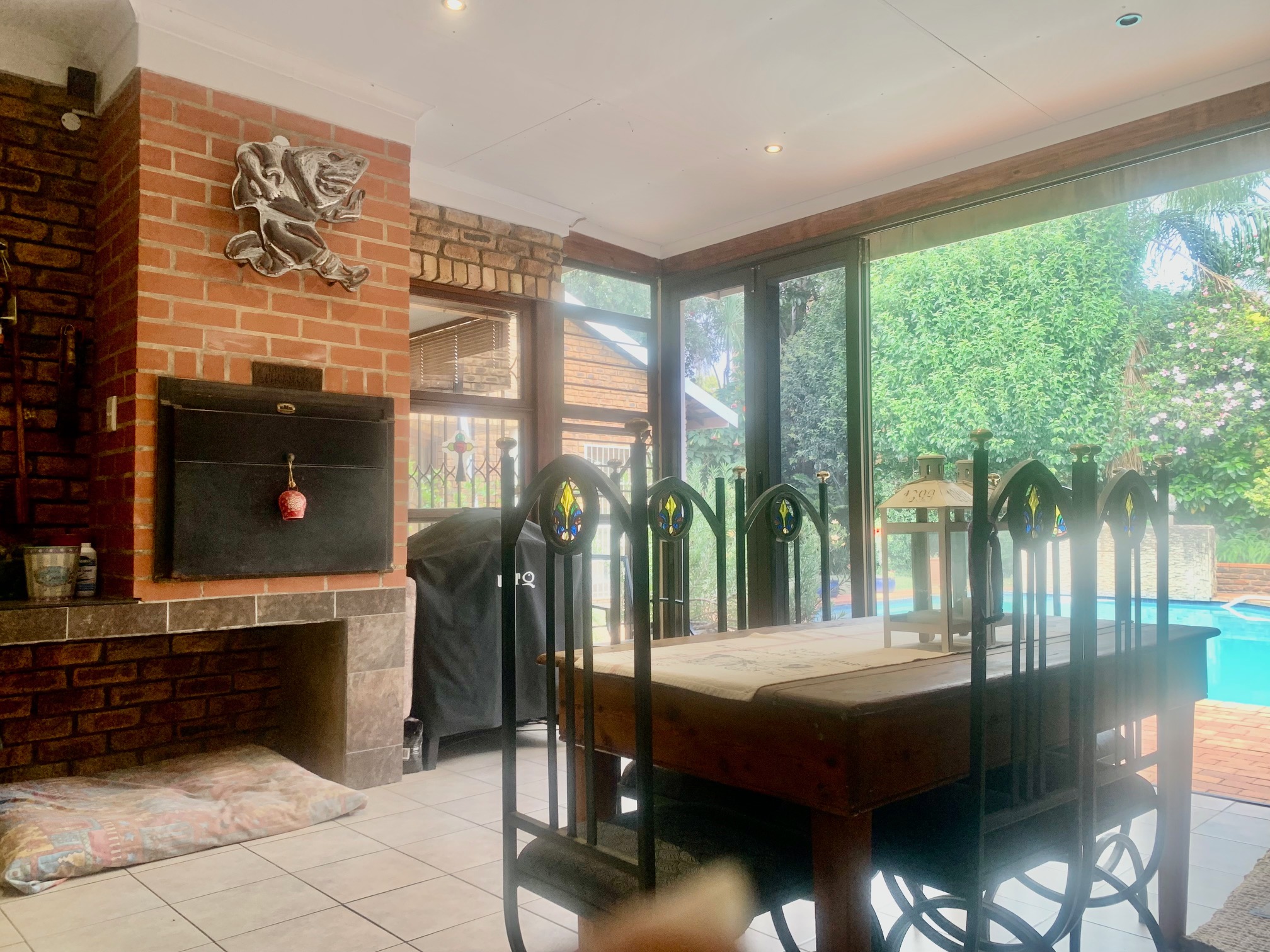 Step outside to a covered patio entertainment area with a built-in braai, overlooking a sparkling swimming pool, perfect for hosting friends and family.