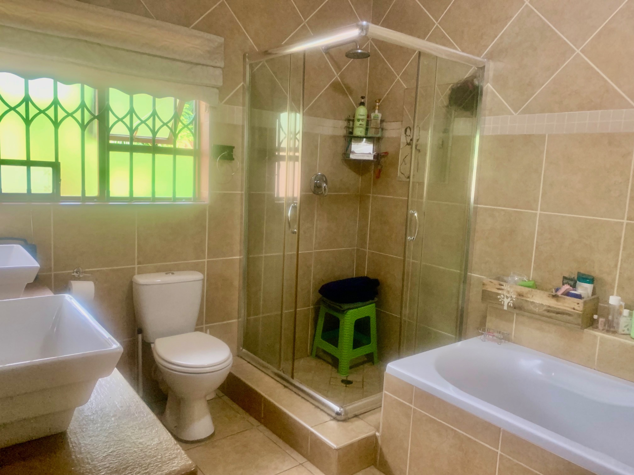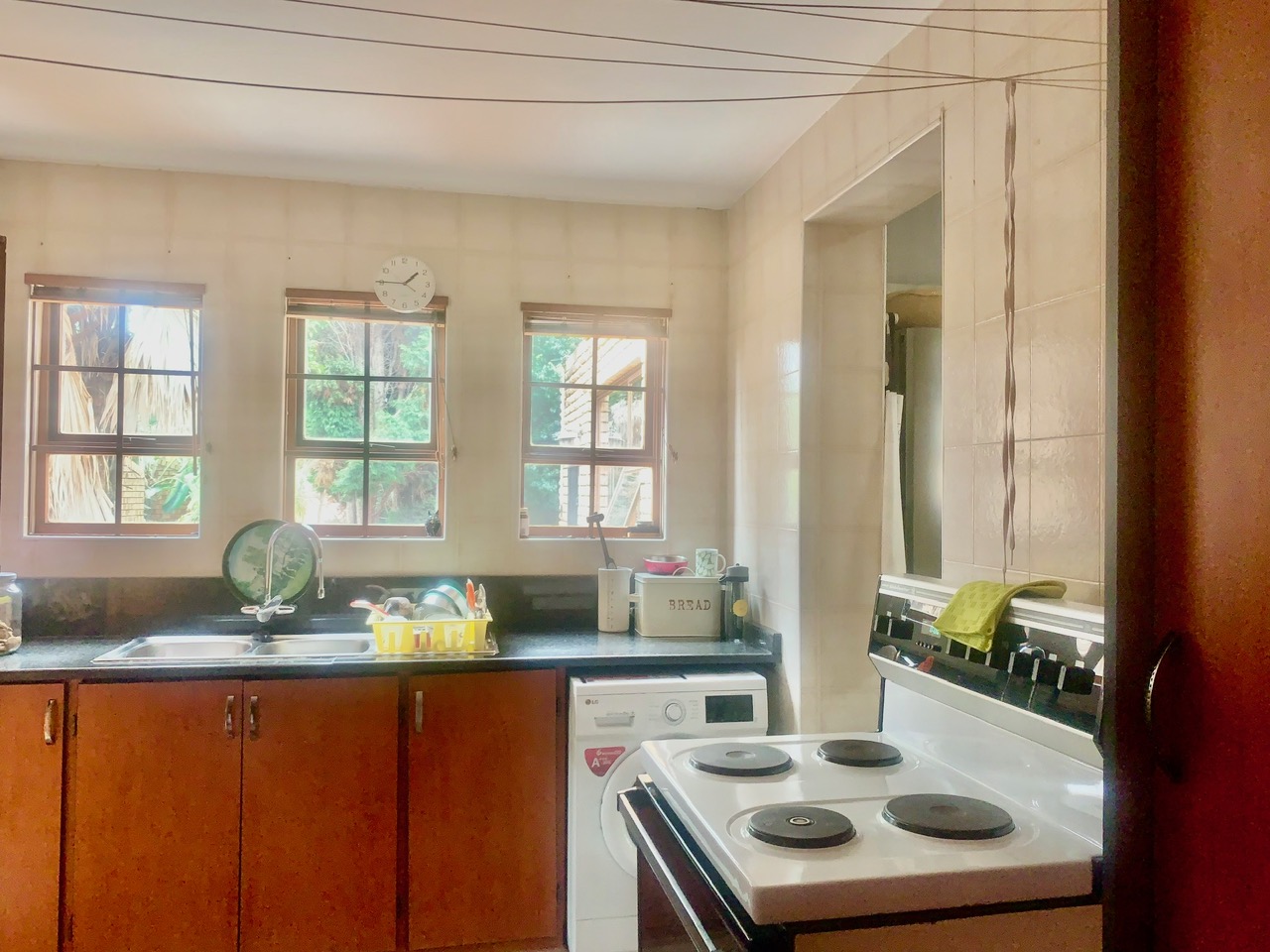 The home boasts a separate kitchen and dining area with a breakfast nook, ideal for family meals. The kitchen includes a fully fitted scullery, which can also be used as a second kitchen, offering ample cupboards, a stove, and space for appliances.