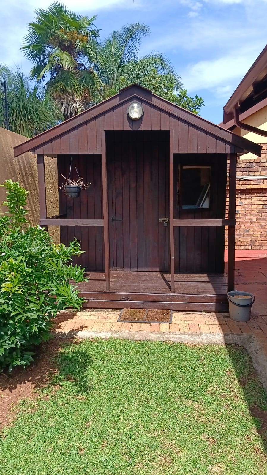 For those who value practicality, this property includes a thoughtfully equipped Wendy house comfortably serving as a laundry room, complete with electricity. Safety is also paramount, with a guard at the gate, CCTV footage, and a passcode required to exit the gate.