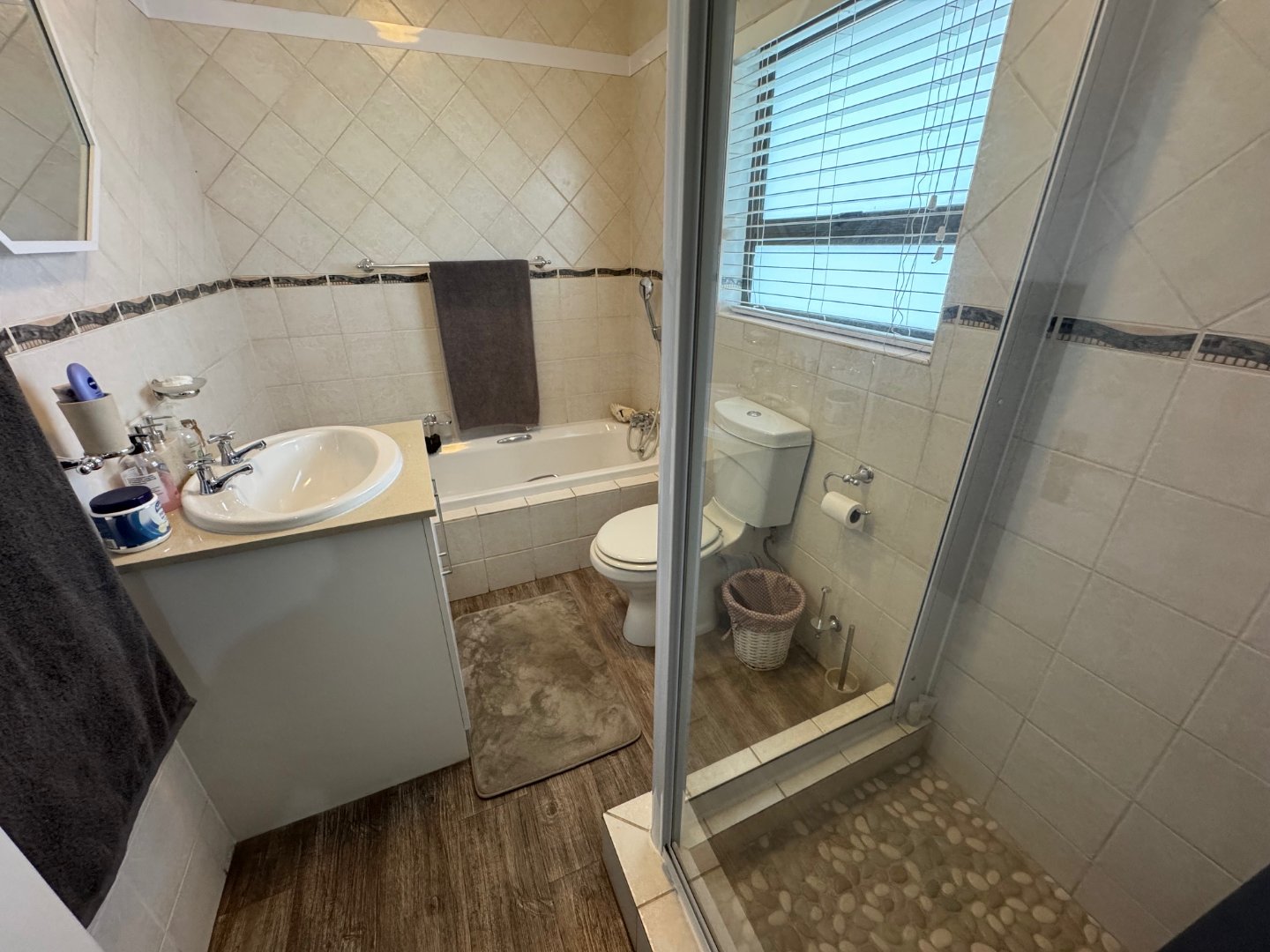 A spacious dining room provides the ideal setting for family meals and entertaining. The home features 3 comfortable bedrooms fitted with 4 built-in cupboards (BIC), offering excellent storage. The main bedroom includes a private en-suite, while 2 additional bathrooms and a guest loo ensure convenience for family and guests. Completing the property is a 2-car garage, providing secure parking and extra storage.