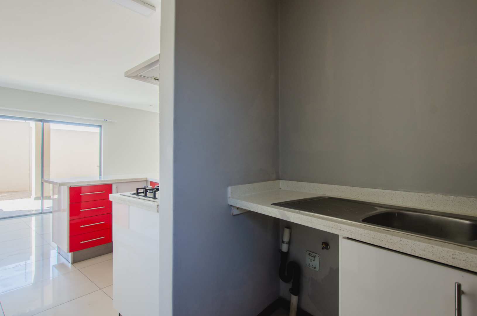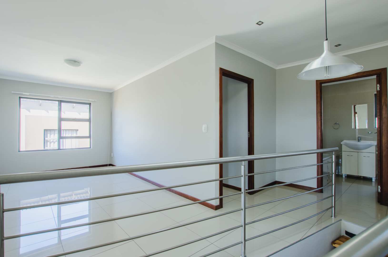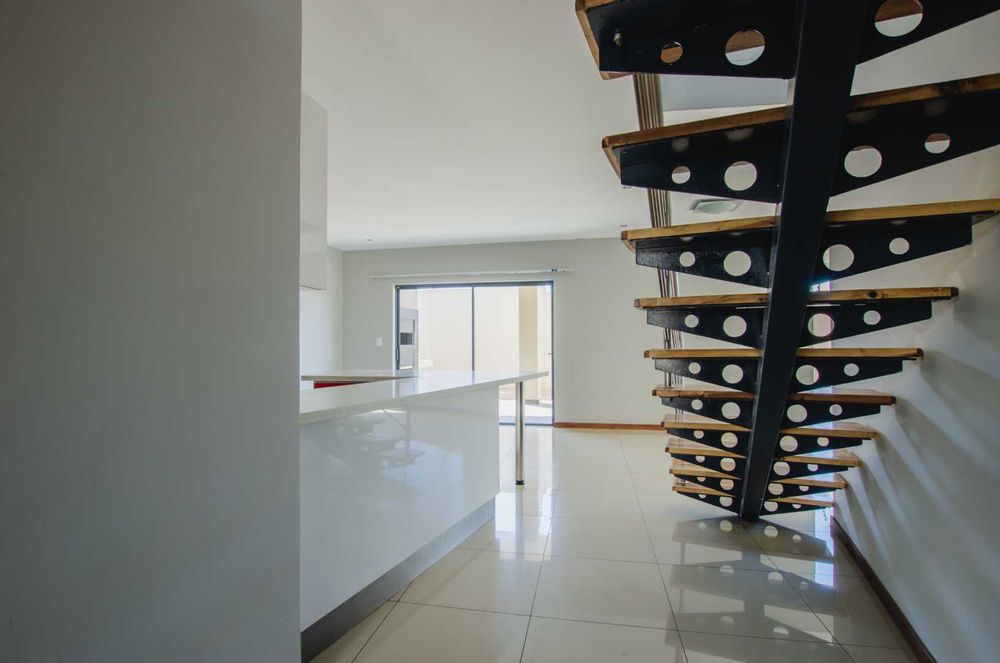 The open floor plan opens up to a spacious lounge coupled with a lovely patio area nestled inside a lush green garden with its own built-in braai area which is perfect for intimate moments with family and friends. The guest bathroom downstairs also provides easy access while entertaining guests.