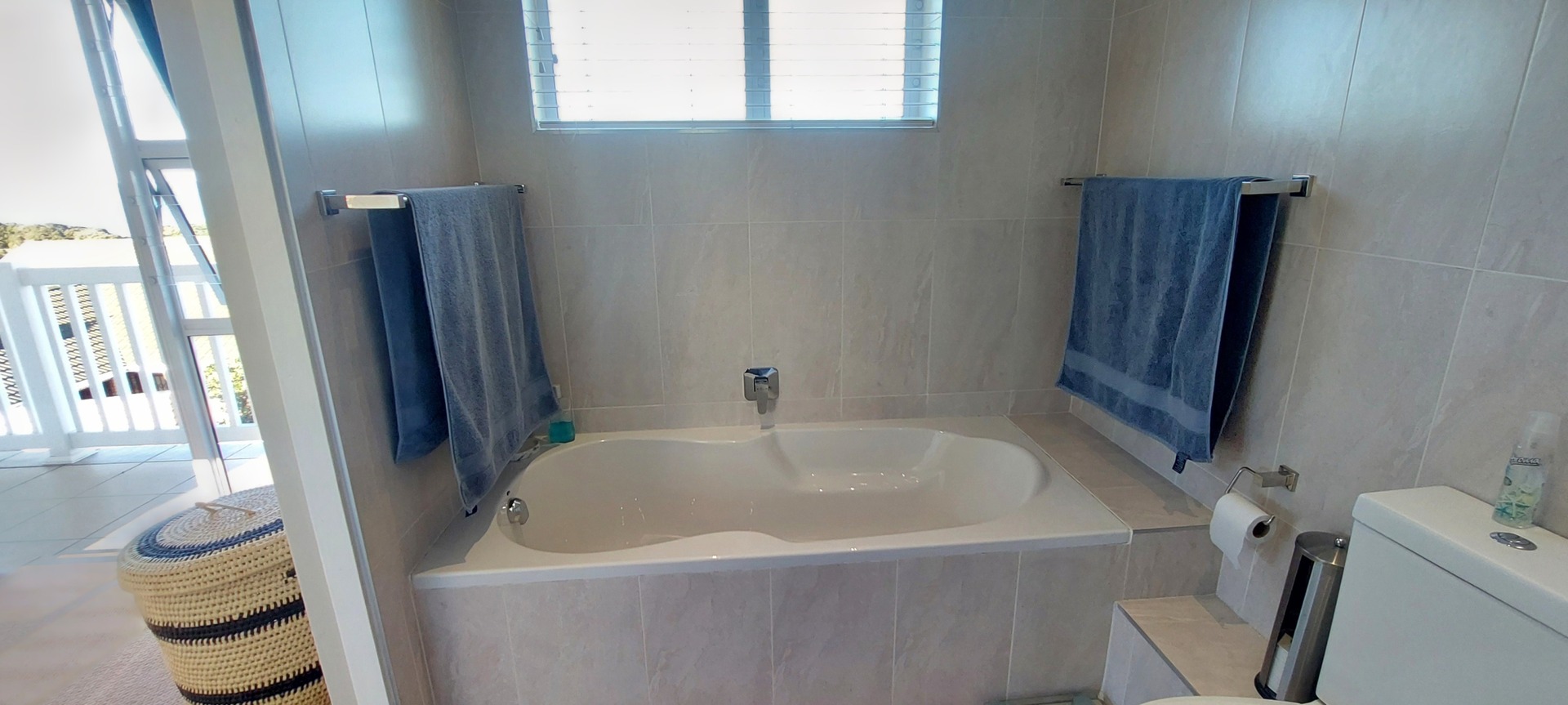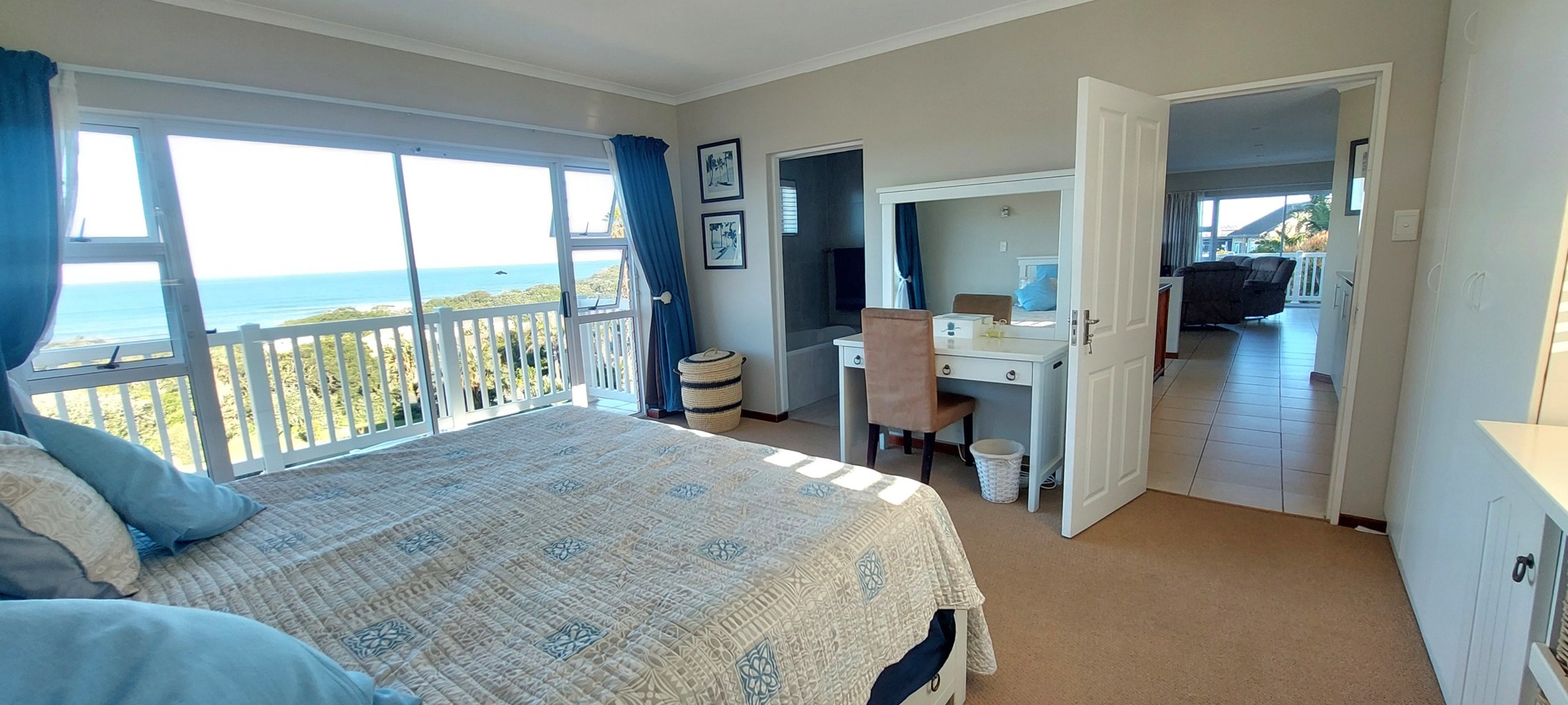 The spacious open-plan living area, with a separate scullery, has views in every direction, with the master suite and en-suite bathroom with its own balcony and again....views!