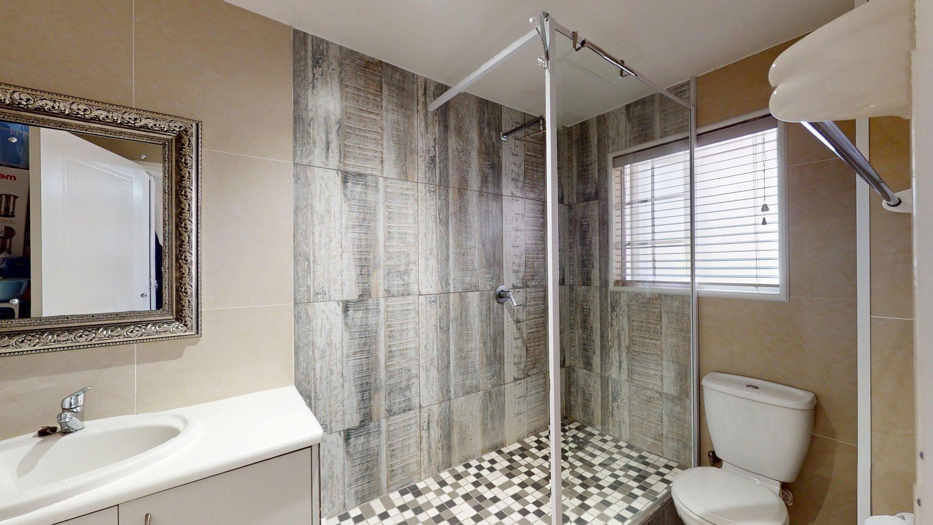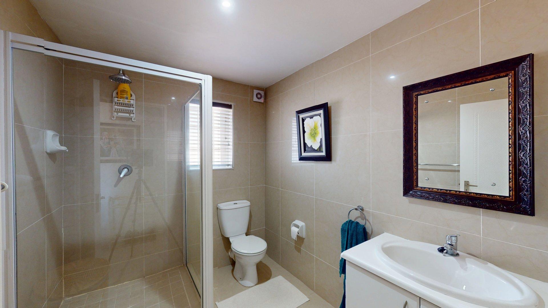Both bedrooms are generous in size, each with built-in cupboards and their own en-suite bathrooms, providing comfort and privacy. A guest toilet and fitted blinds throughout add to the home’s practical appeal.