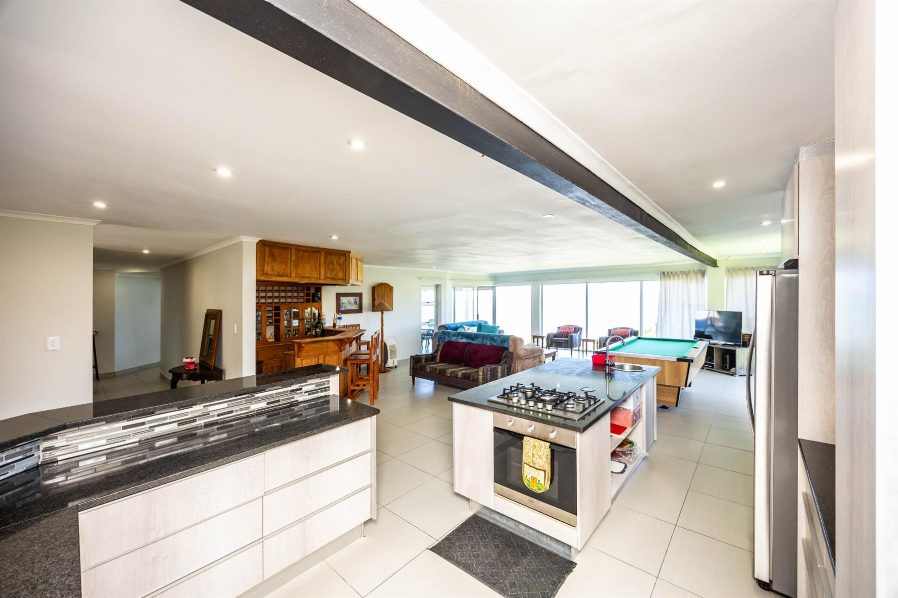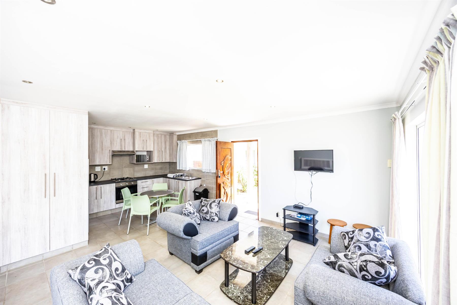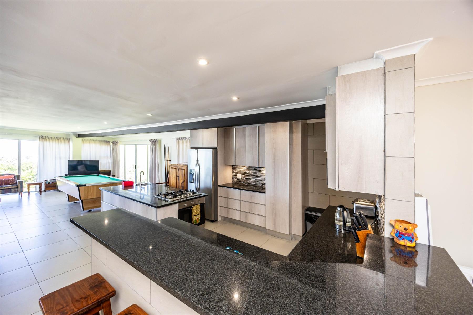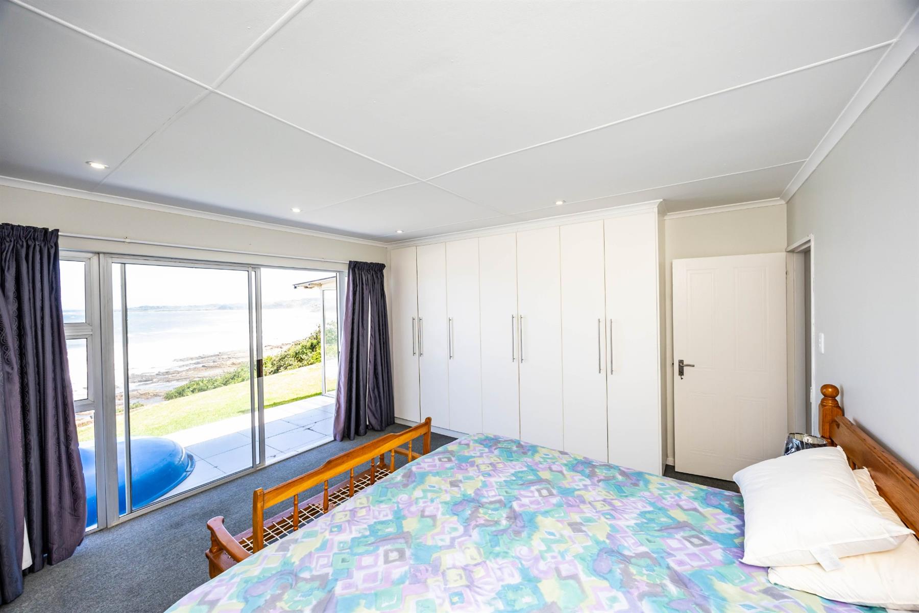 The main residence features three spacious bedrooms all with sliding doors leading to a verandah with exceptional sea views. Two bathrooms, complemented by expansive open-plan living areas designed to maximise light and showcase the tranquil water views. A stylish glass-enclosed braai room allows for year-round entertaining and breath taking views of the ocean, blending indoor comfort with the relaxed outdoor lifestyle South Africa is famous for.