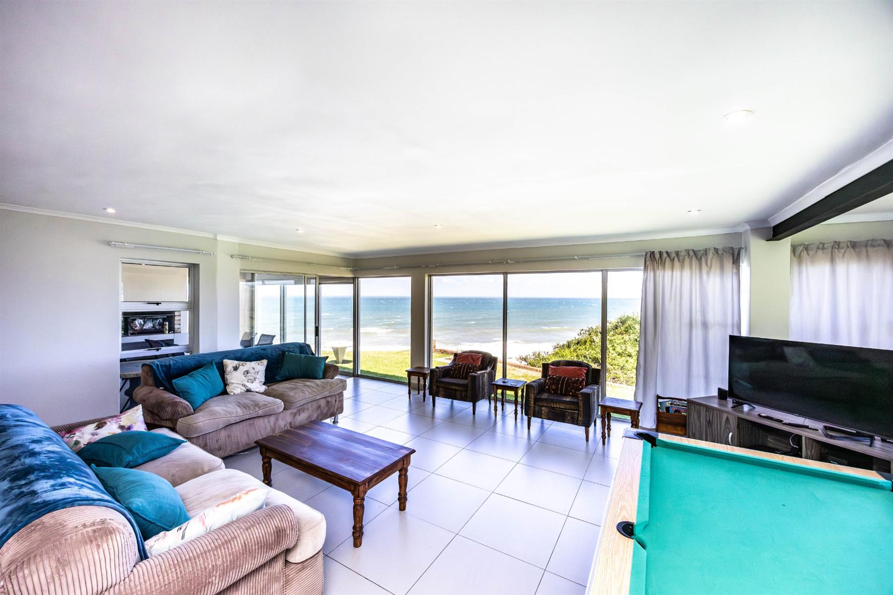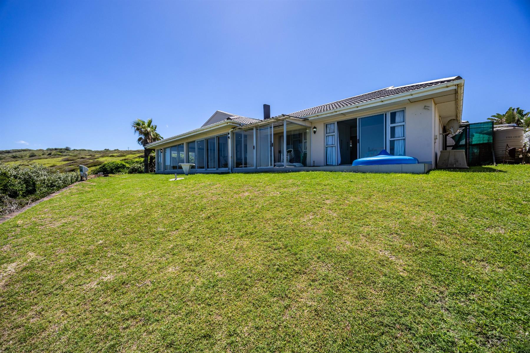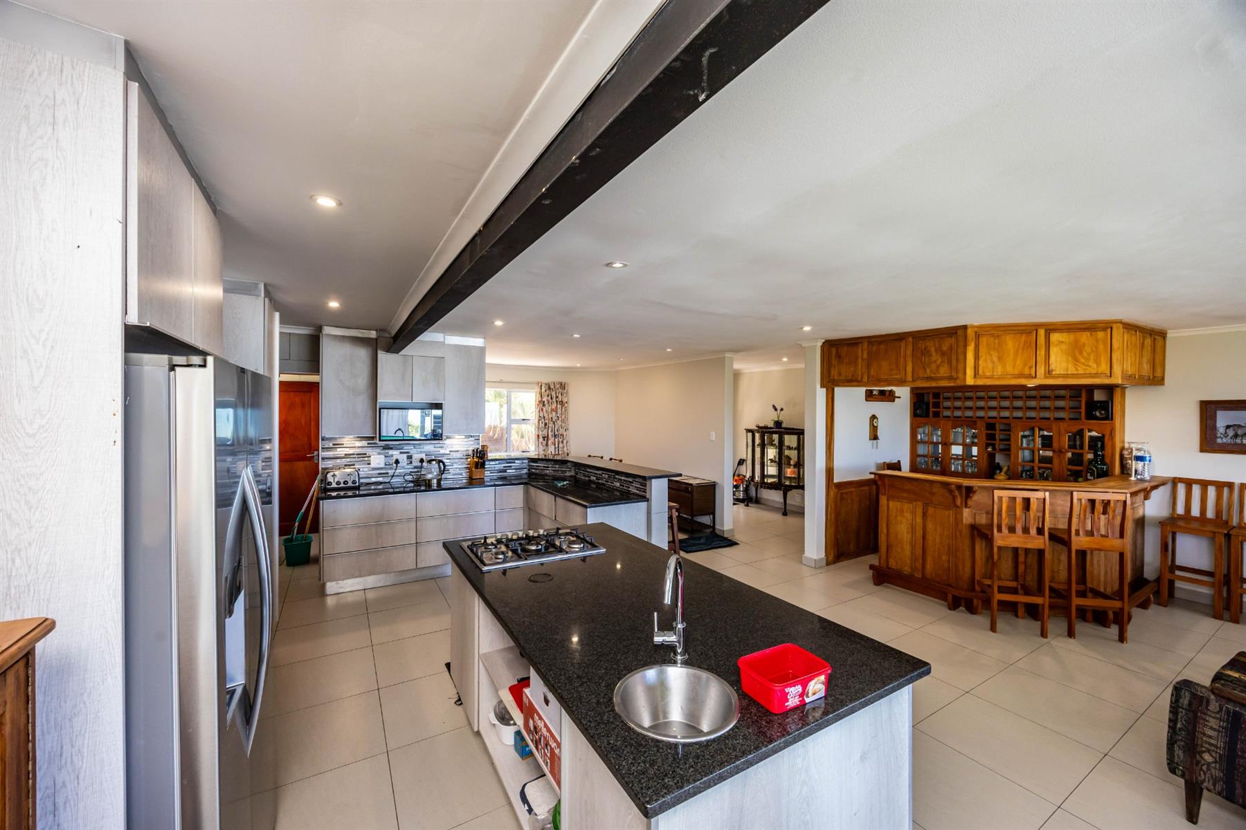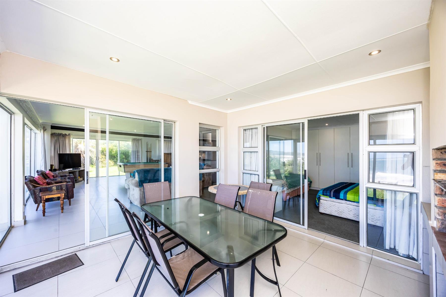 The main residence features three spacious bedrooms all with sliding doors leading to a verandah with exceptional sea views. Two bathrooms, complemented by expansive open-plan living areas designed to maximise light and showcase the tranquil water views. A stylish glass-enclosed braai room allows for year-round entertaining and breath taking views of the ocean, blending indoor comfort with the relaxed outdoor lifestyle South Africa is famous for.