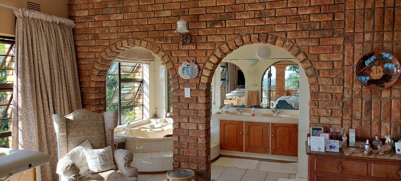 There are matching double garages, offices and storerooms covering another 150m2. On the South West portion of the hilltop is a newly renovated rondavel and garden cottage adjoining the swimming pool. The approximate area of this structure is1 00m2.