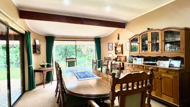 There are 2 spacious lounges with sliding doors that lead out onto a covered patio overlooking the well-manicured garden. The dining room also has sliding doors leading out onto the patio.