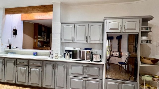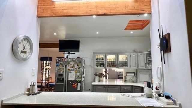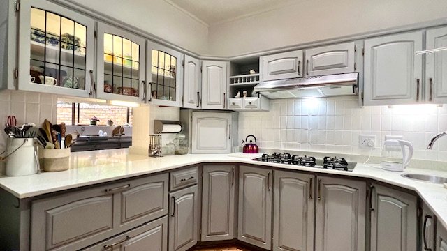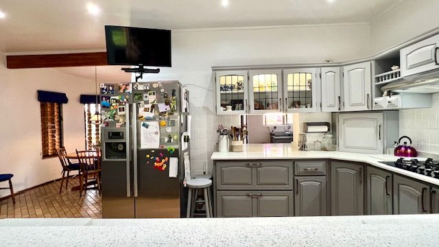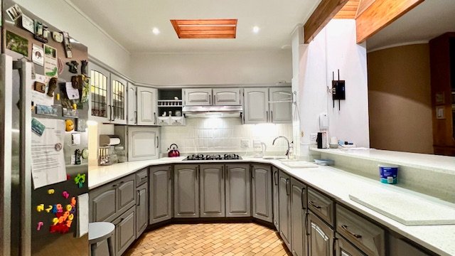 The newly renovated kitchen is any chef's dream with white Caesar Stone tops, gas hob and double door oven, there is a breakfast nook, separate scullery and laundry room.