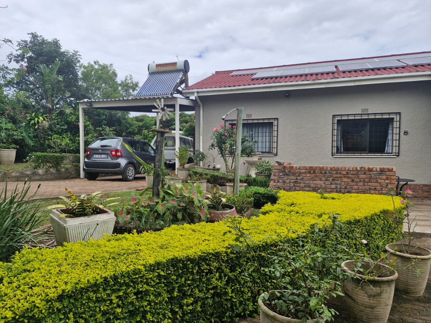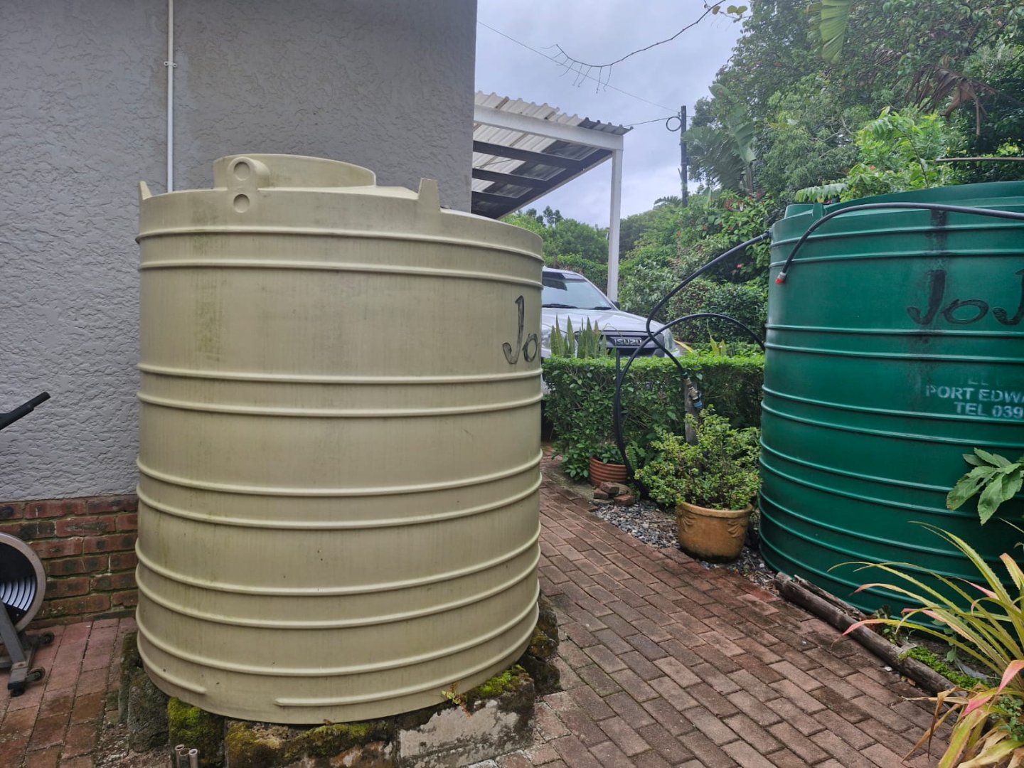 Property is 200 metres from the Glenmore beach and this makes it easy to do daily walks and and enjoy the swimming and the tranquility. This property is off thr grid and you can enjoy electricity as the solar power takes over, if you want to connect to Eskom you can. Enter the gate and walk to the patio which leads you to the lounge and open plan dining area which is spacious and comfortble for entertainment and family. The home offers 3 bedrooms which are spacious and has plenty cupboard space. It has 2 modern bathrooms which provides comfort for the whole famiy. Ceiing fans are fitted throughout the house and this helps for cooling in the hot weather in summer. The kitchen is fitted with smart built-in cupboards and granite countertops and this enhances the area. The kitchen is designed well for cooking and ample space. Outside there is a studio room which is ideal for an office or being creative. There is an additional cottage with its own shower and toilet and could be turned into a good rental income. It has 2 tanks with a pump motor and it is connected to the house for sustainable living. Storeroom for tools equipment and extra storage. The garden is well maintained and beautiful greenery. It has a sparkling splash pool which is perfect for warm days and afternoons. The property has two gates which are electronic and it is fenced all around. The property has lots of potential and can earn rental income.
