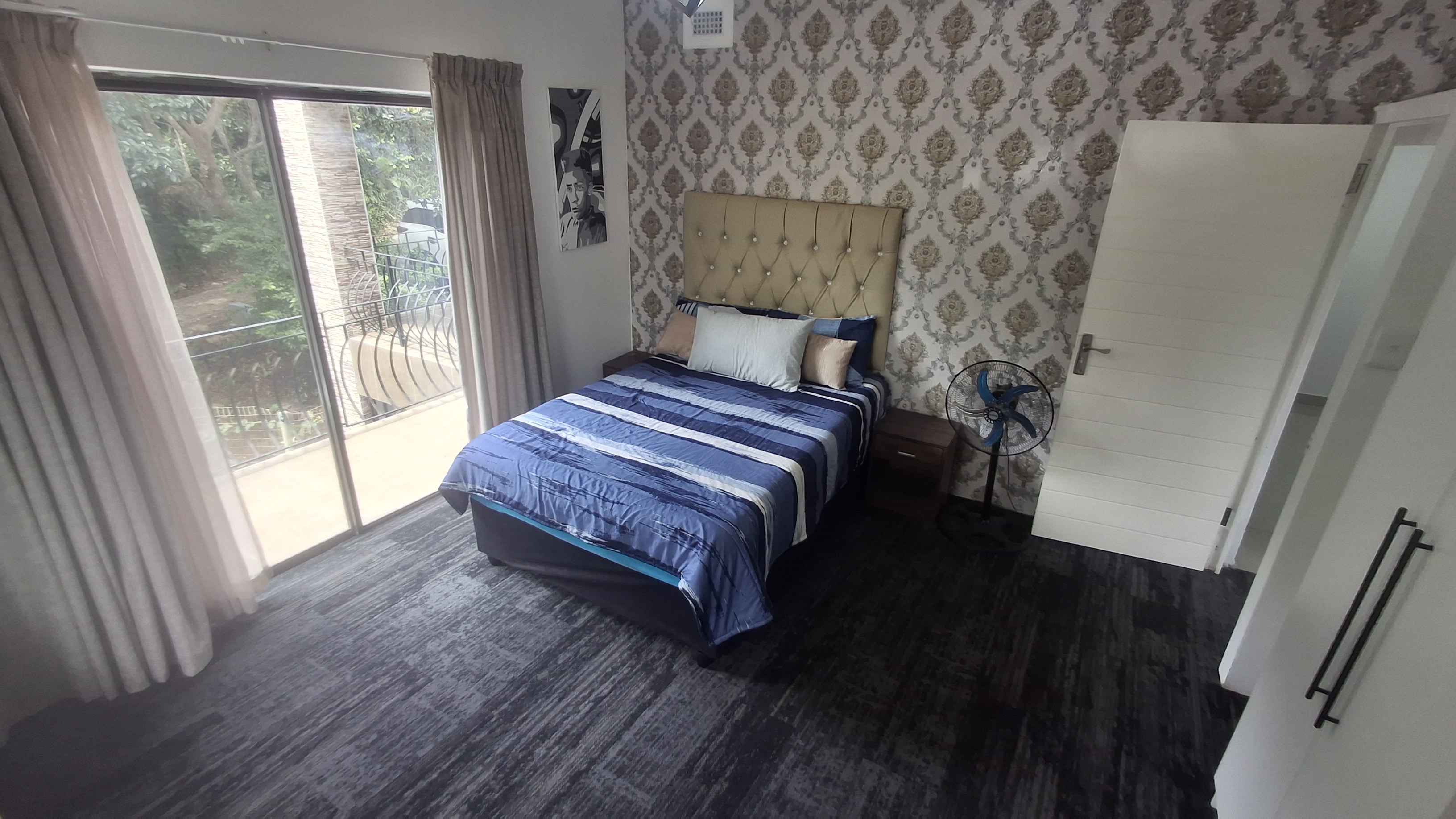 This beautiful double storey home offers four spacious bedrooms and two bathrooms with one located on the ground floor and the second on the upper level. Two of the bedrooms have glass sliding doors that open onto a shared balcony allowing natural light fresh air and a lovely elevated outlook. The lower level includes a small entertainment room that flows into the open plan living and dining area creating a comfortable space for family living. Safety is well covered with a full alarm system in place giving peace of mind.