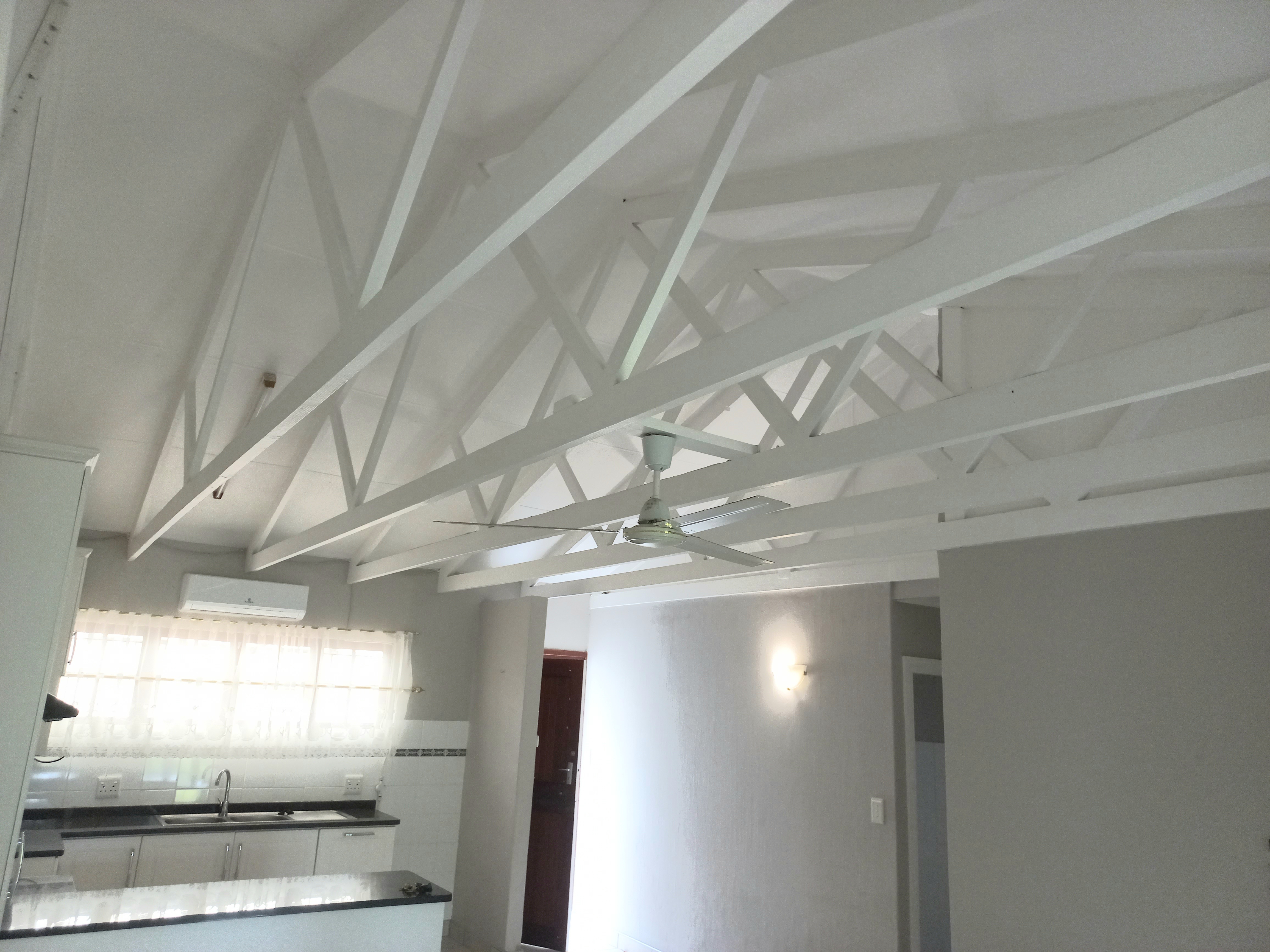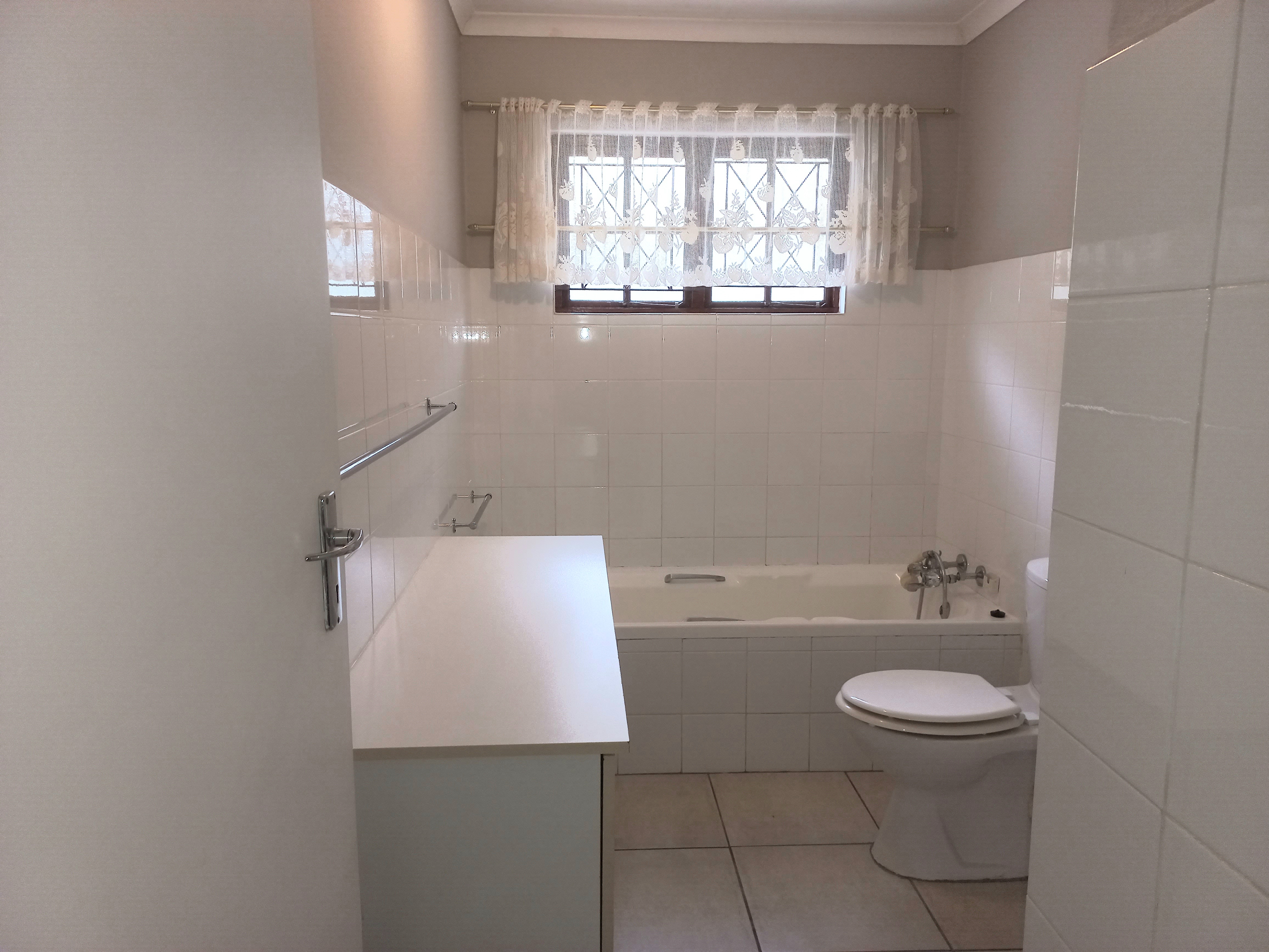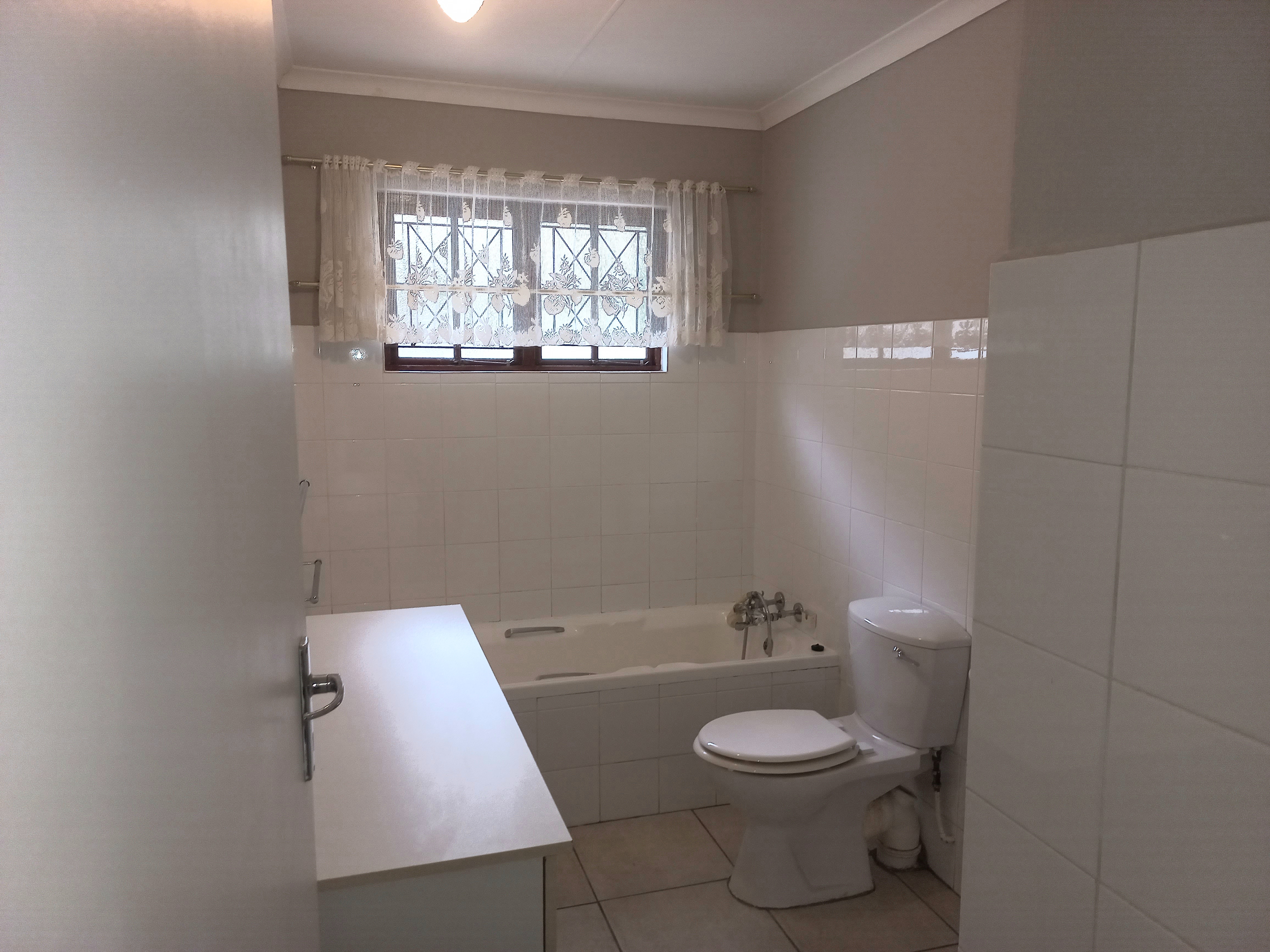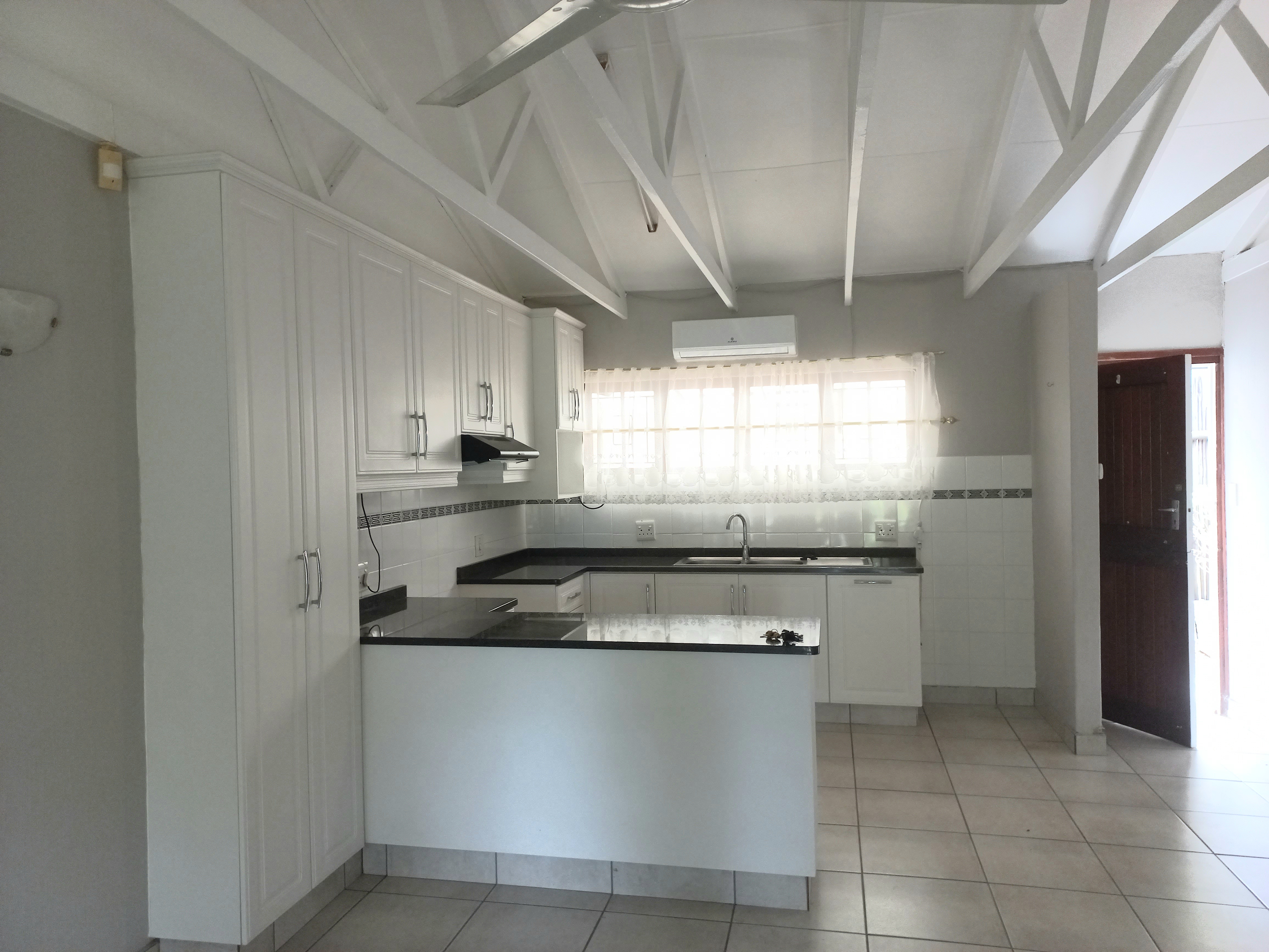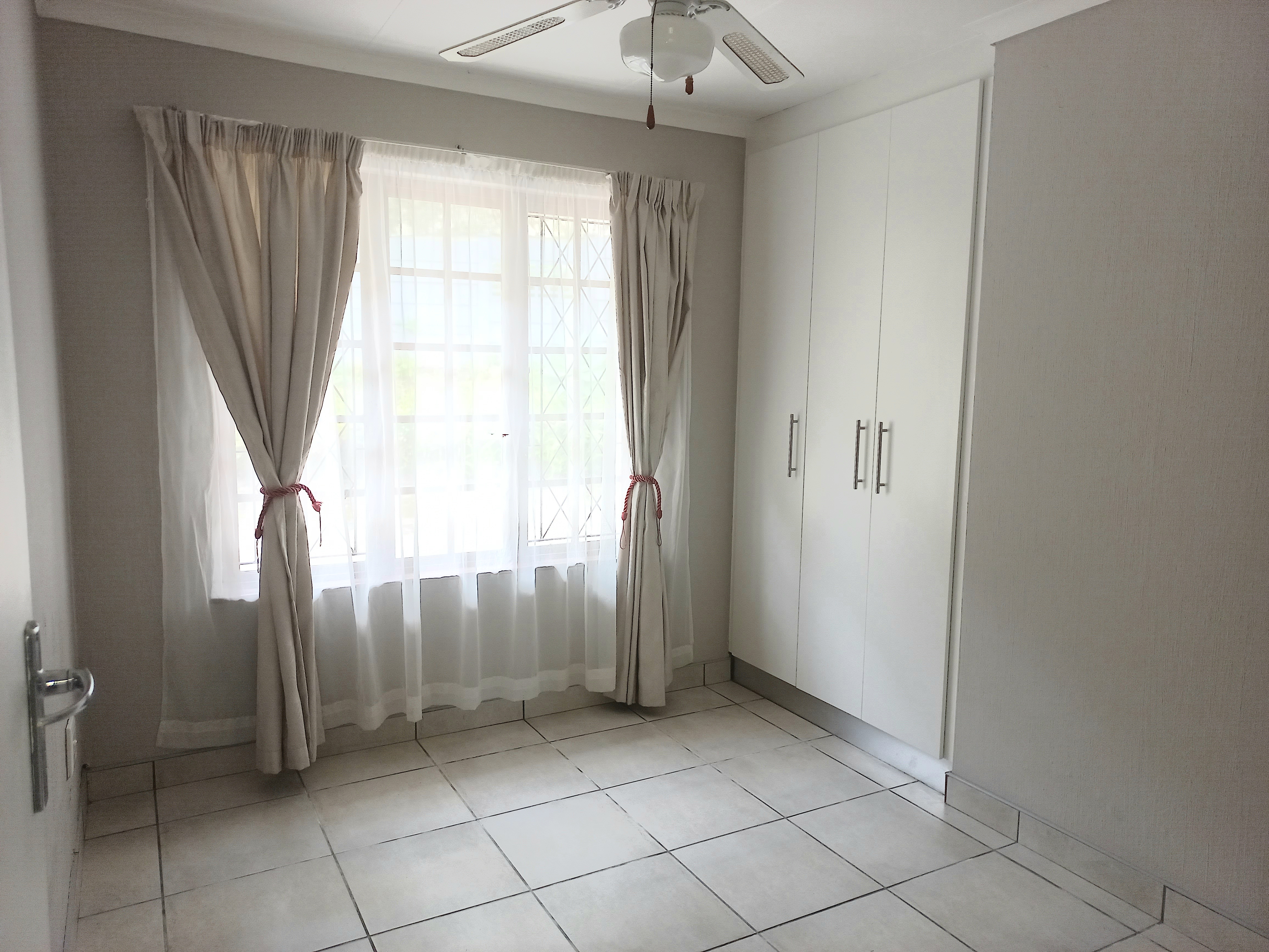 Set within a beautifully maintained and secure complex, this elegant 3 bedroom residence offers refined living with modern finishes throughout. The main suite features a stylish en-suite bathroom with a shower, basin, and toilet, while the second bathroom is thoughtfully designed with a bath, basin, and toilet. All bedrooms are fitted with generous build-in cupboards and ceiling fans, creating comfort and convenience. The home showcases a spacious open plan lounge and contemporary kitchen, complemented by striking high ceilings that enhance the sense of space and light. Air conditioning in the main bedroom and kitchen ensures year round comfort. The residence is fully tiled throughout and equipped with security features including burglar bars on all windows, security gates on all doors, and an alarm system for peace of mind. Double doors from the lounge open seamlessly onto a private patio with a built in braai - ideal for relaxed outdoor entertaining. Additional highlights include jojo water tanks with a pump connected to the unit, an external laundry room with easy access, and permission for small pets. Please note that a stove and oven are not included. A sophisticated home offering secure, stylish, and effortless living