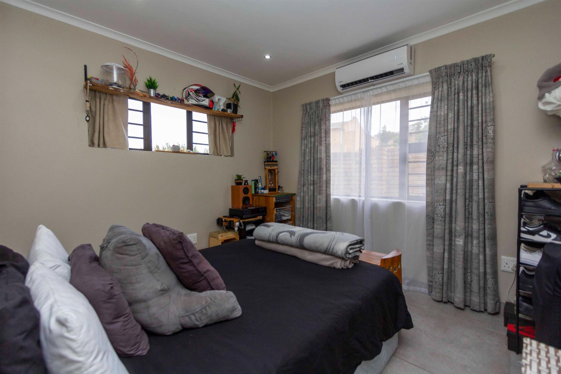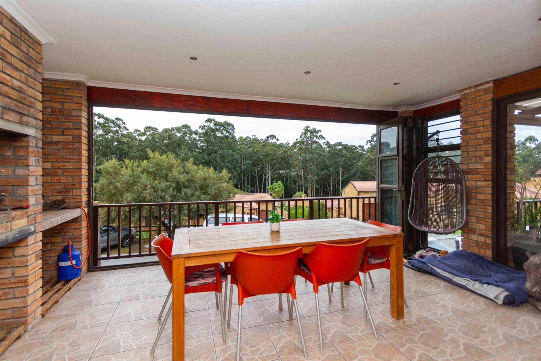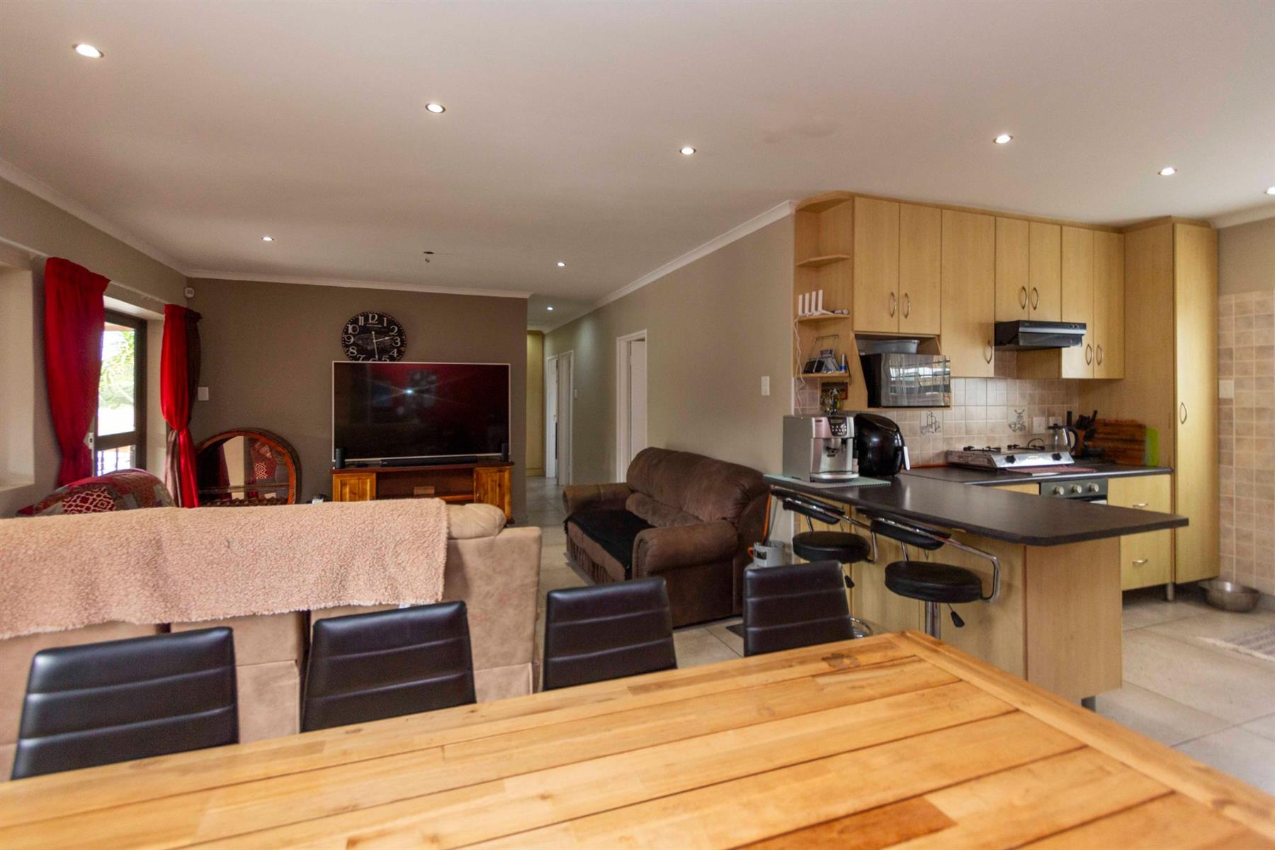 Inside, you’ll find 3 spacious bedrooms (2 en-suite) and 3 bathrooms, all neat and well-maintained with generous cupboard space. The open-plan kitchen flows seamlessly into the living and dining areas, leading to an enclosed braai room with stacker doors — ideal for entertaining while enjoying the lovely views. The double garage on remote inter-leads directly into the home for added convenience.