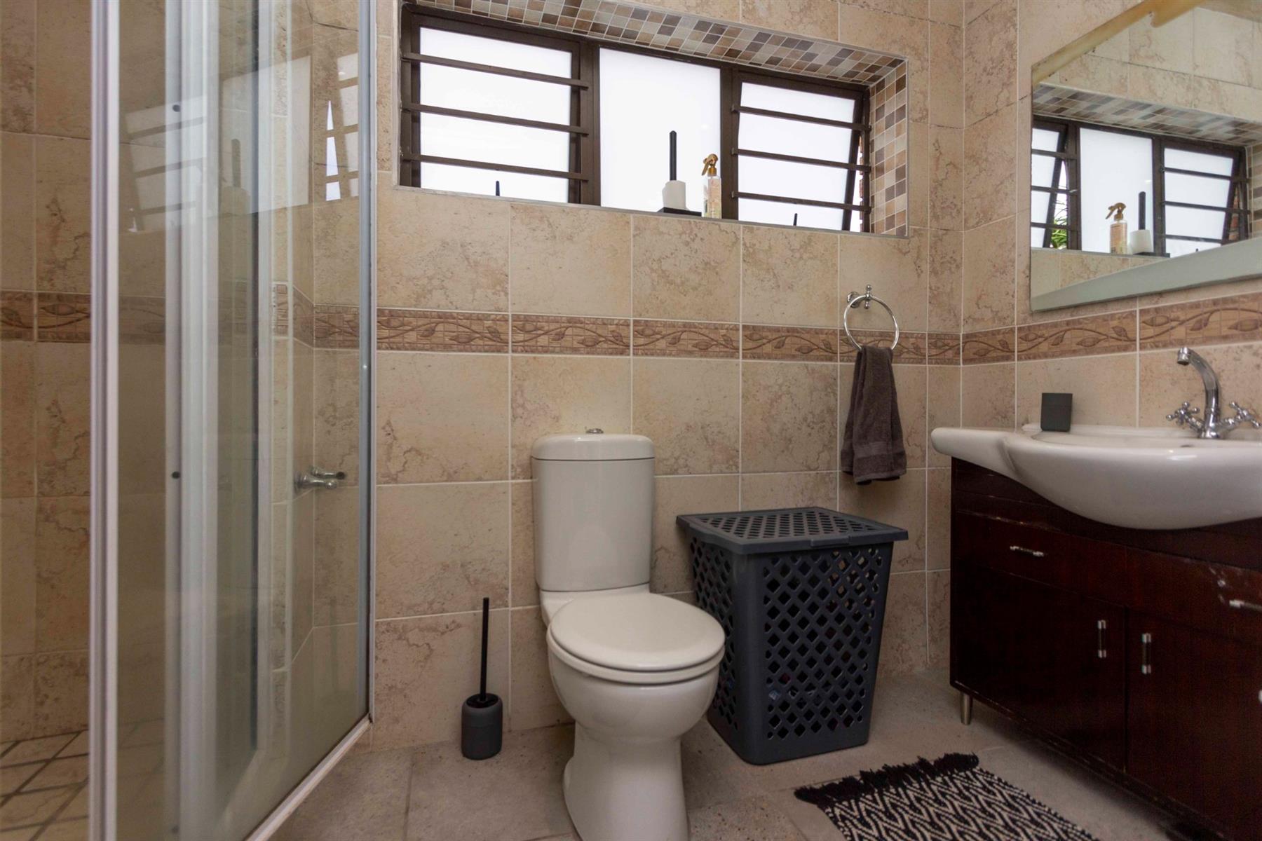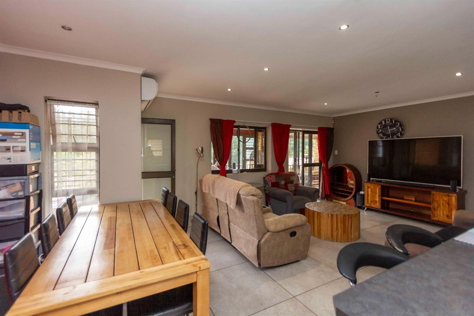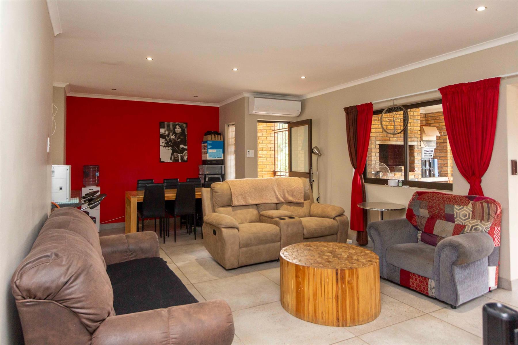 Inside, you’ll find 3 spacious bedrooms (2 en-suite) and 3 bathrooms, all neat and well-maintained with generous cupboard space. The open-plan kitchen flows seamlessly into the living and dining areas, leading to an enclosed braai room with stacker doors — ideal for entertaining while enjoying the lovely views. The double garage on remote inter-leads directly into the home for added convenience.