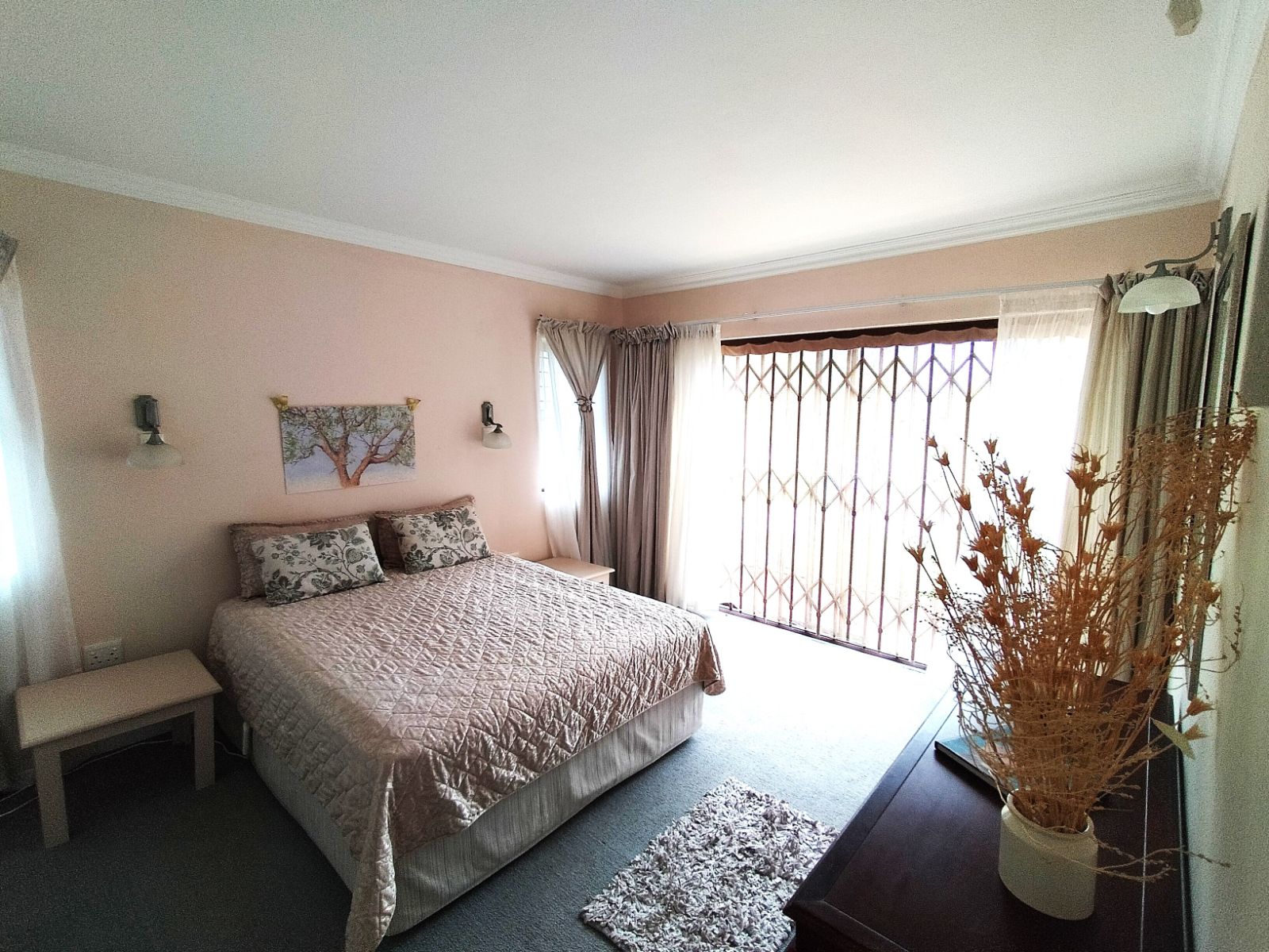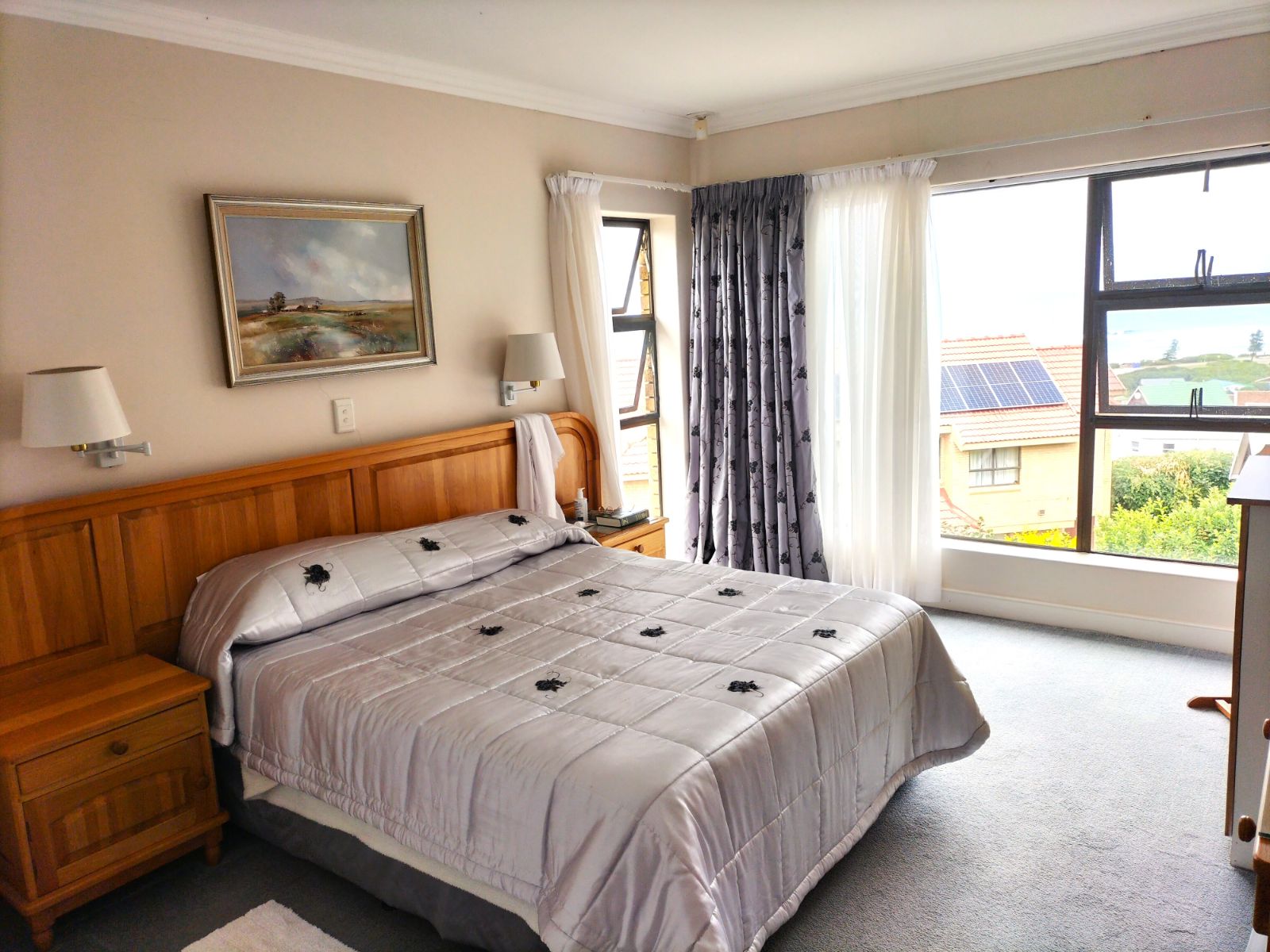 A large bedroom with built-in cupboards and en suite full bathroom.From this bedroom you can enjoy the sea views offered.