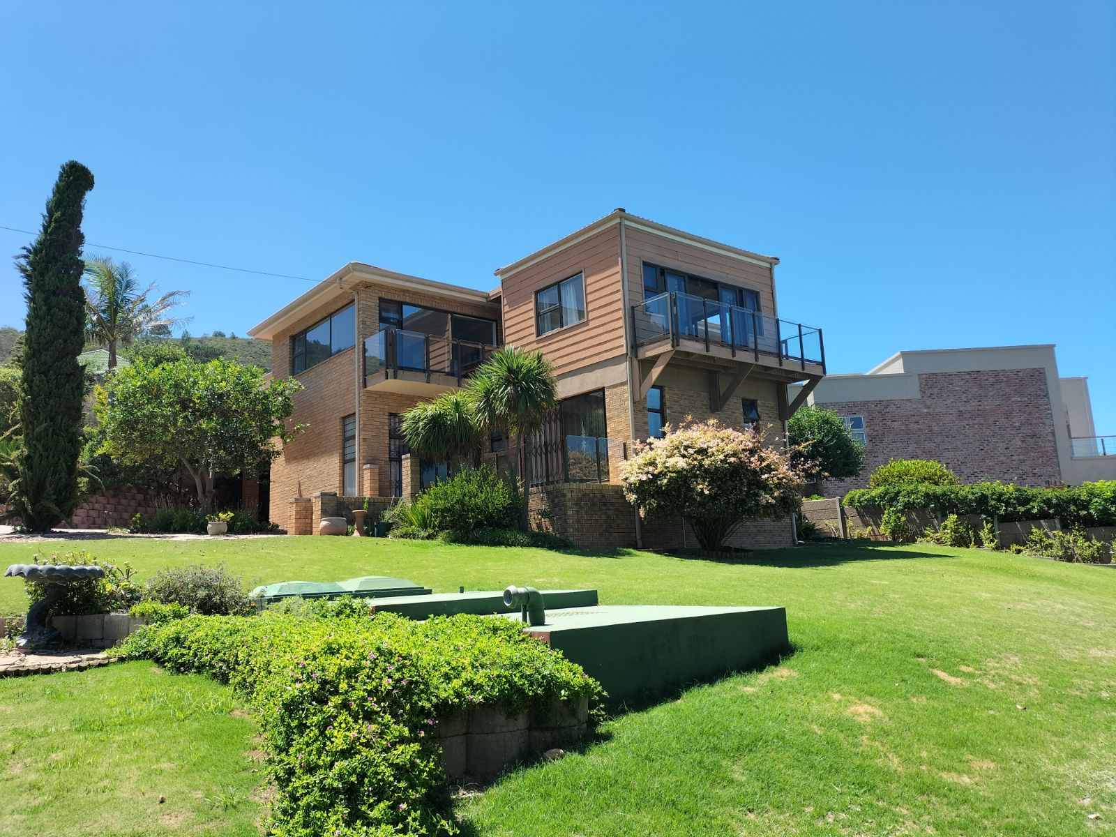 Discover your dream home with this wonderful 4 bedroom, 3 bathroom property offering breathtaking sea views of the blue flag beach of Glentana, views as far as Mosselbay. Nestled in a peaceful cul-de-sac, this charming residence is just a short walk from the shore, making it ideal for beach lovers.