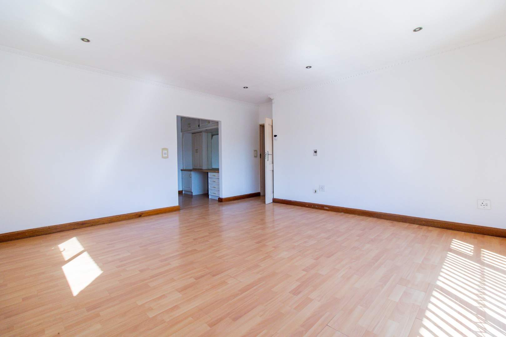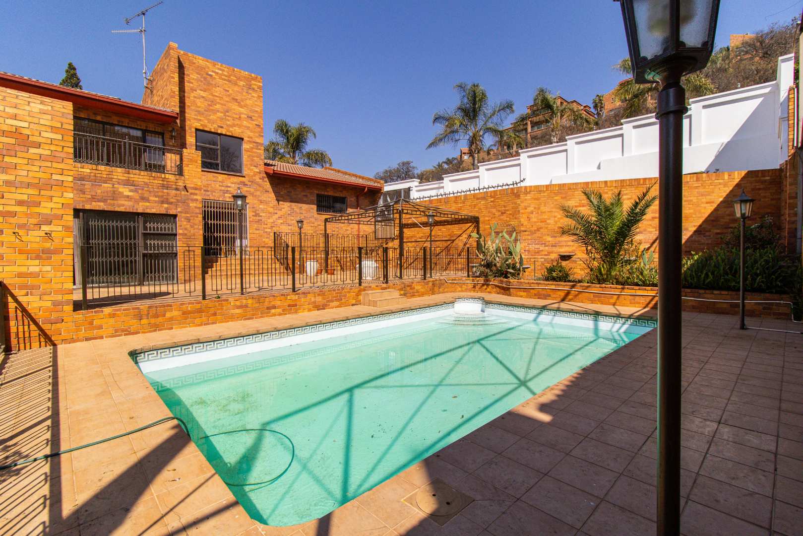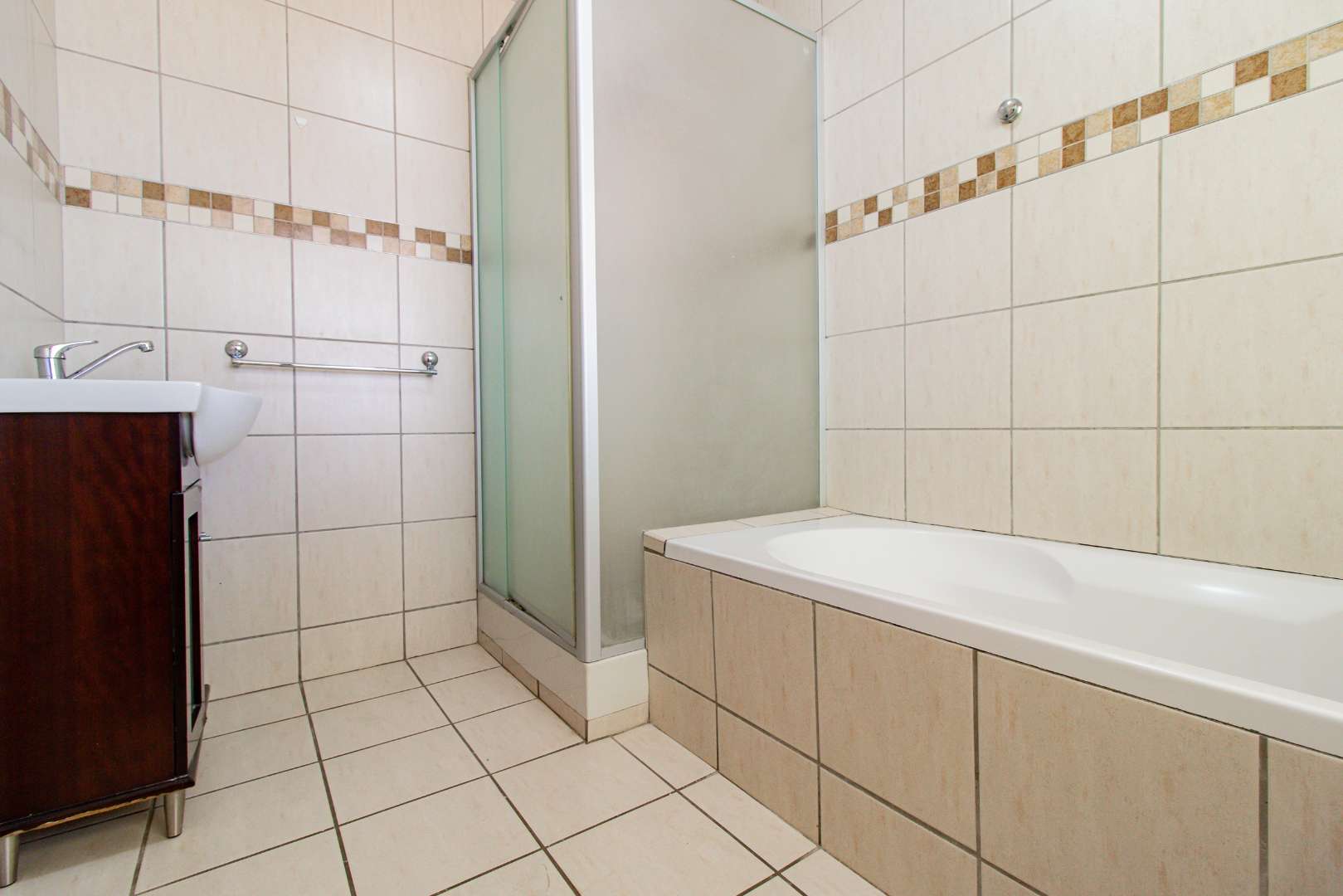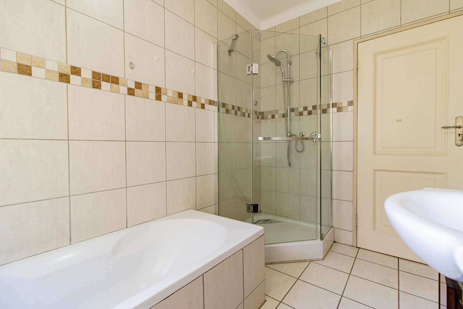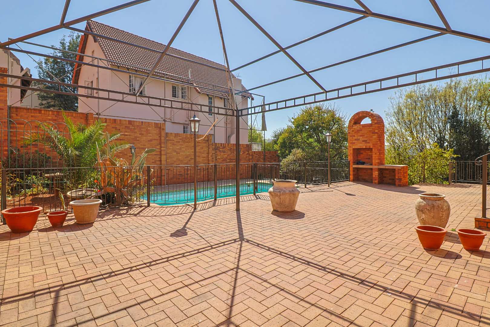 Step outside to discover a solar-heated pool paired with a built-in braai, perfect for outdoor entertaining. The garden is equipped with a sprinkler system to maintain its lush greenery effortlessly.