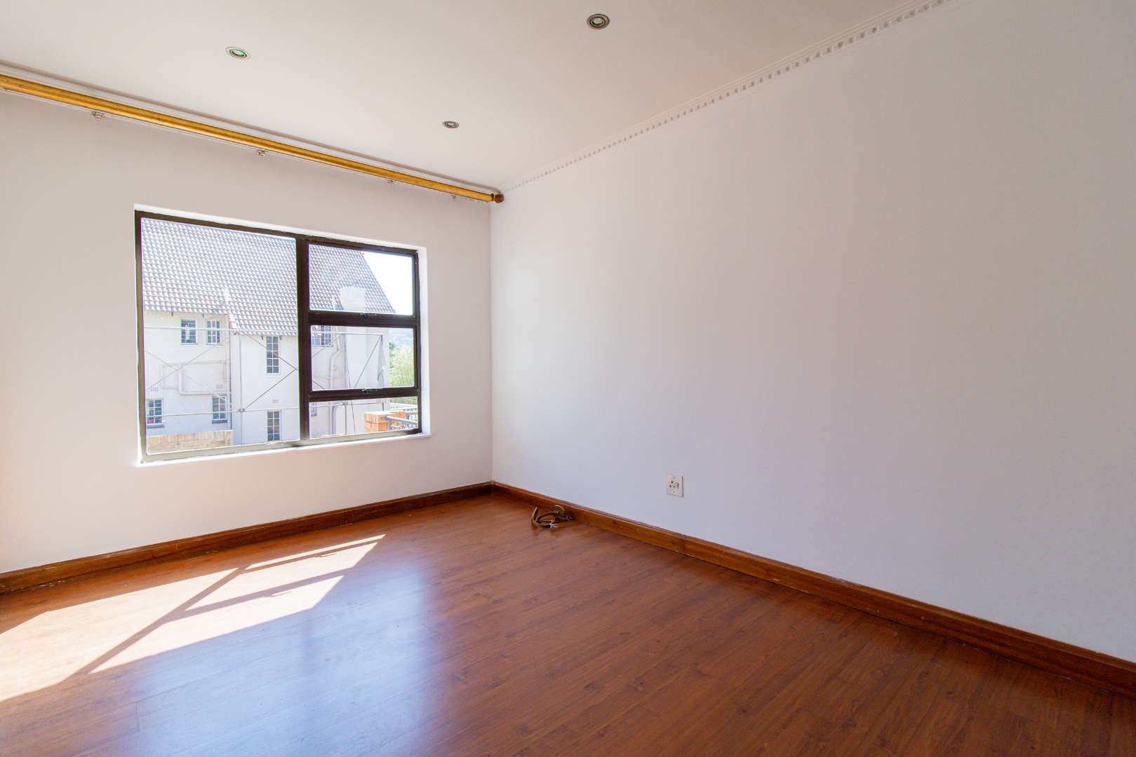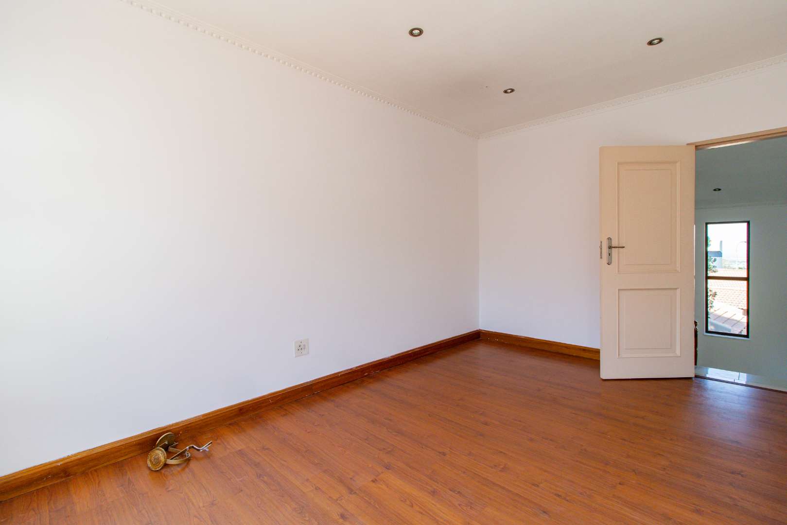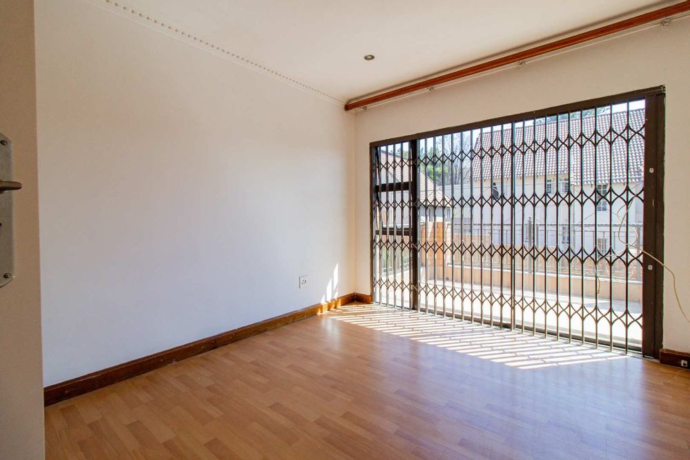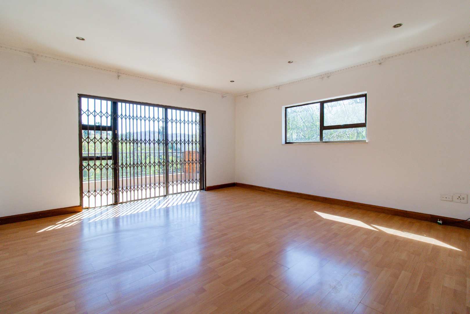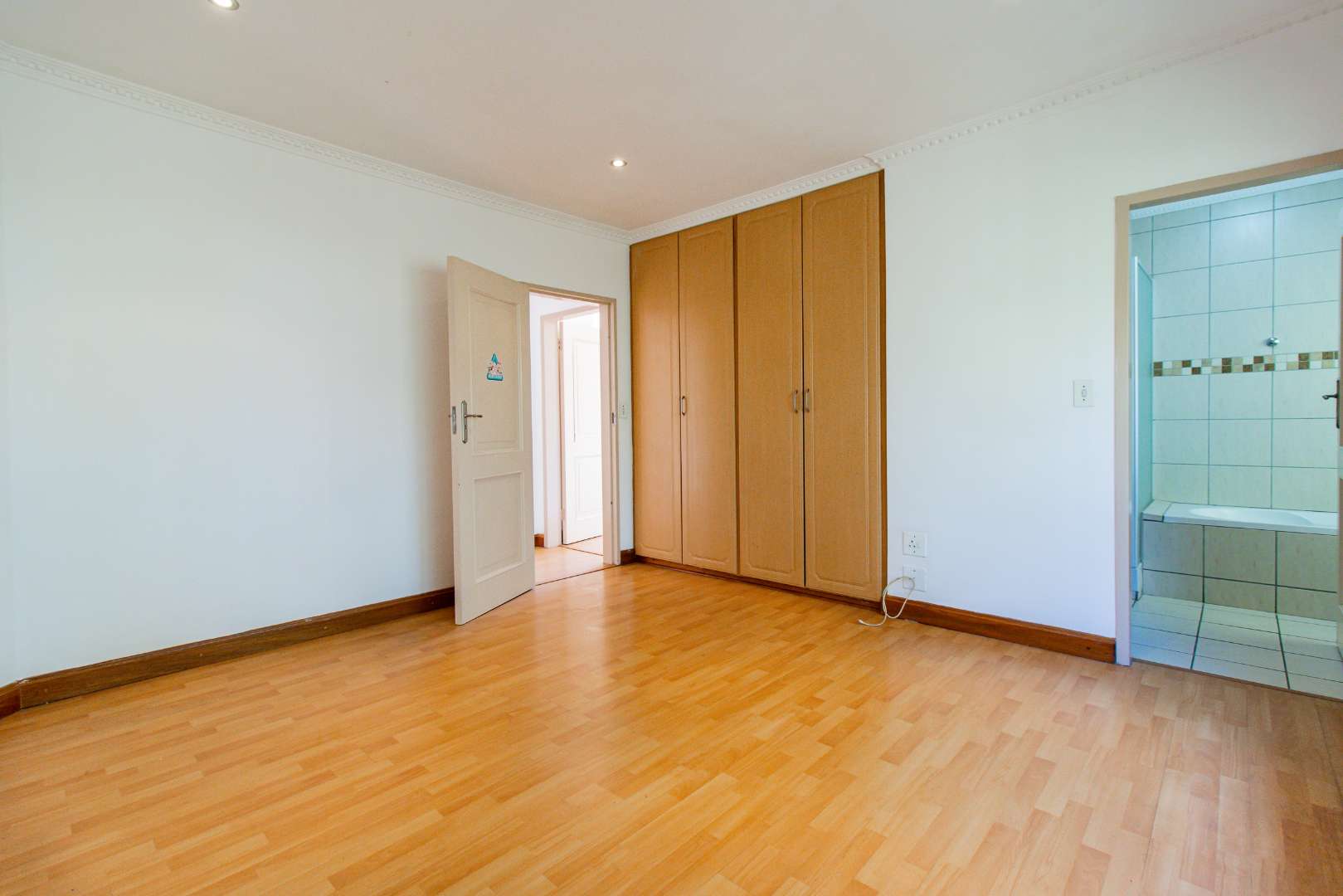 Step outside to discover a solar-heated pool paired with a built-in braai, perfect for outdoor entertaining. The garden is equipped with a sprinkler system to maintain its lush greenery effortlessly.