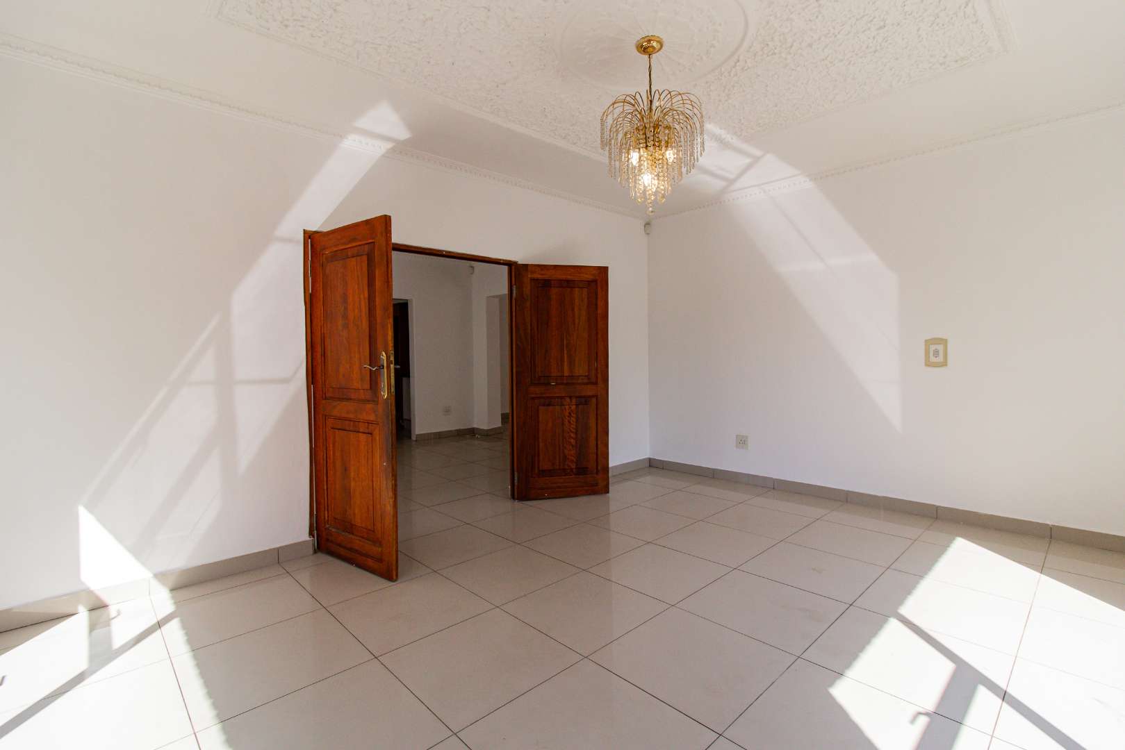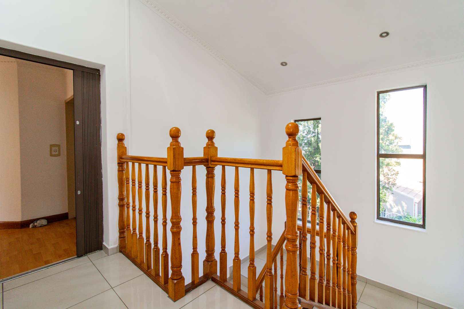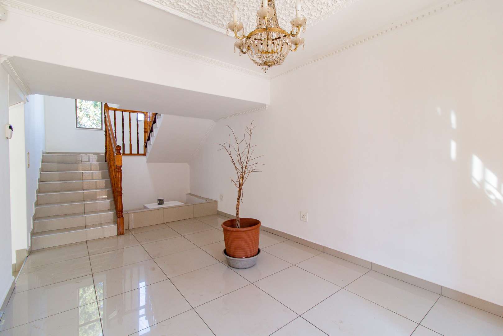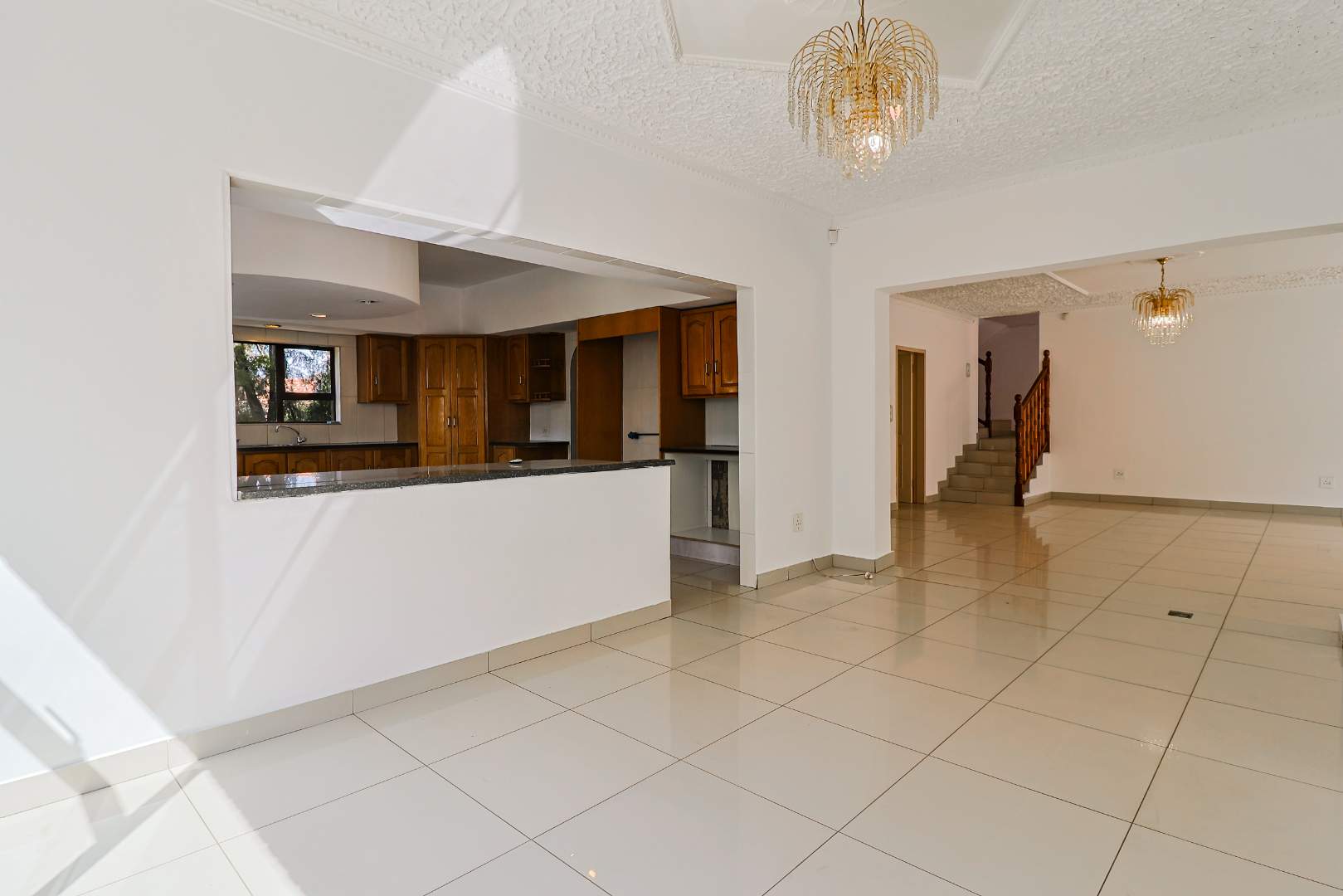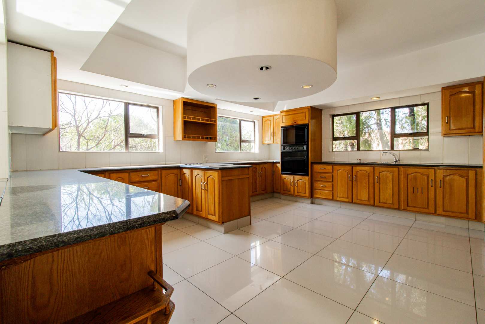 Additional features include three garages for ample parking, Trelli door security bars for peace of mind, and staff accommodation. The home is adorned with elegant porcelain tiles and solid wood balustrading, adding a touch of sophistication throughout.